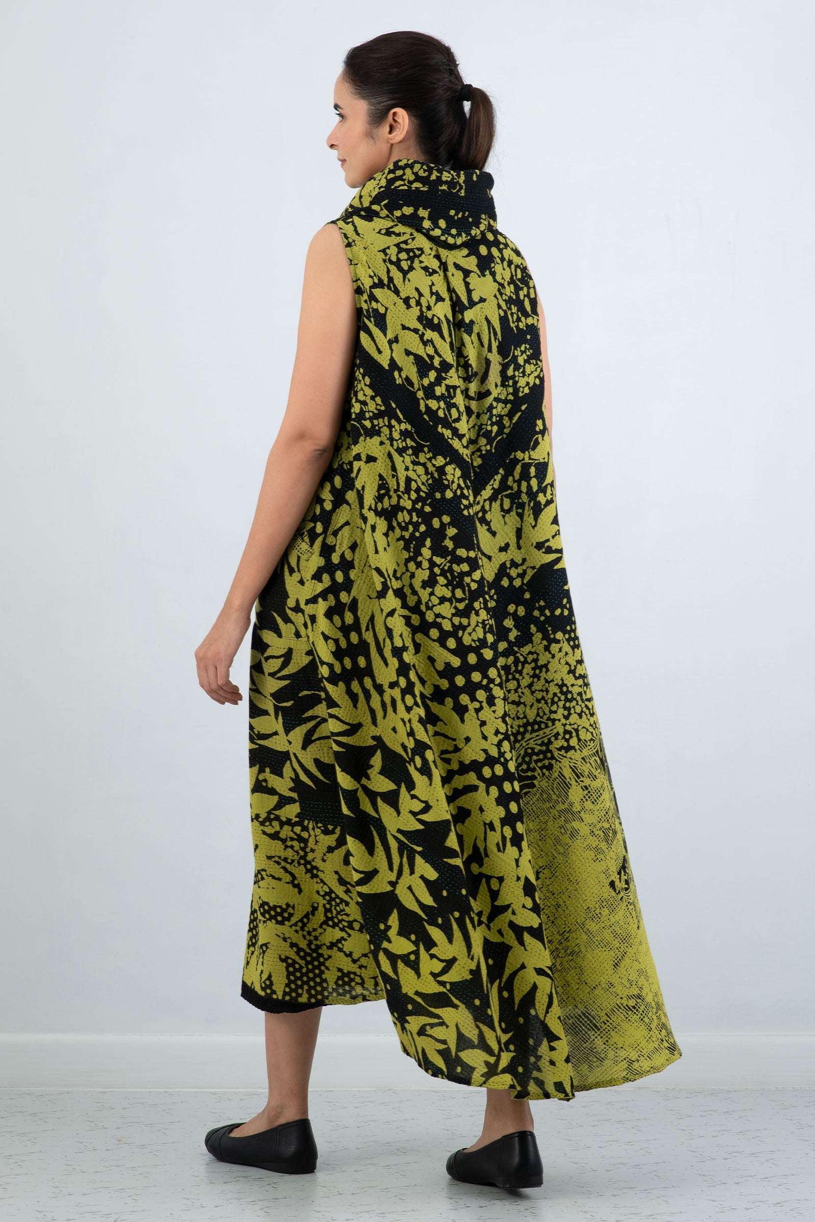 MONOTONE TWILIGHT PRINT KANTHA COWL NECK MAXI DRESS - tp2438-cha -