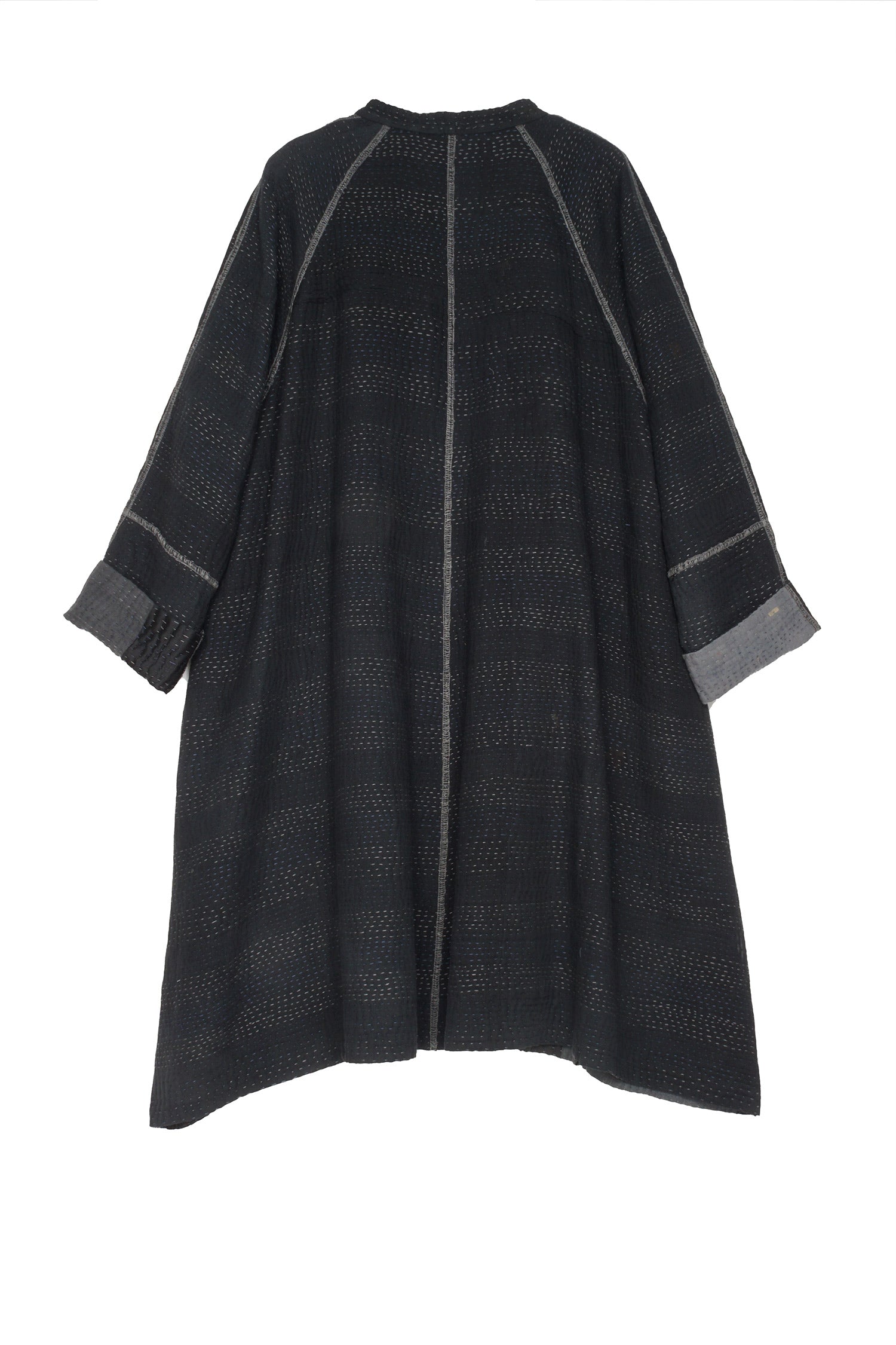 TWO TONE PATCH KANTHA BAND COLLAR DUSTER - tn4327-blk -