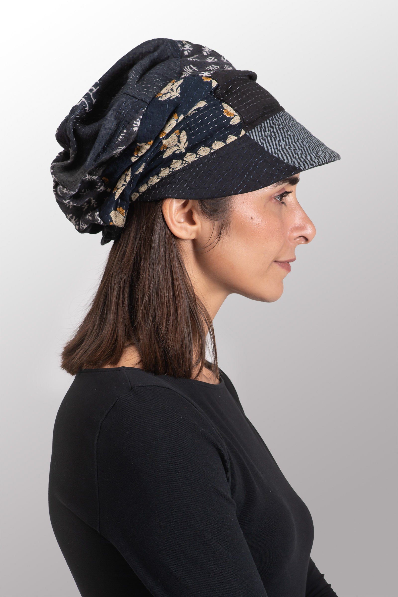 VINTAGE BOTTOM PRINT KANTHA HALF BRIM HAT - vb2881-blk -