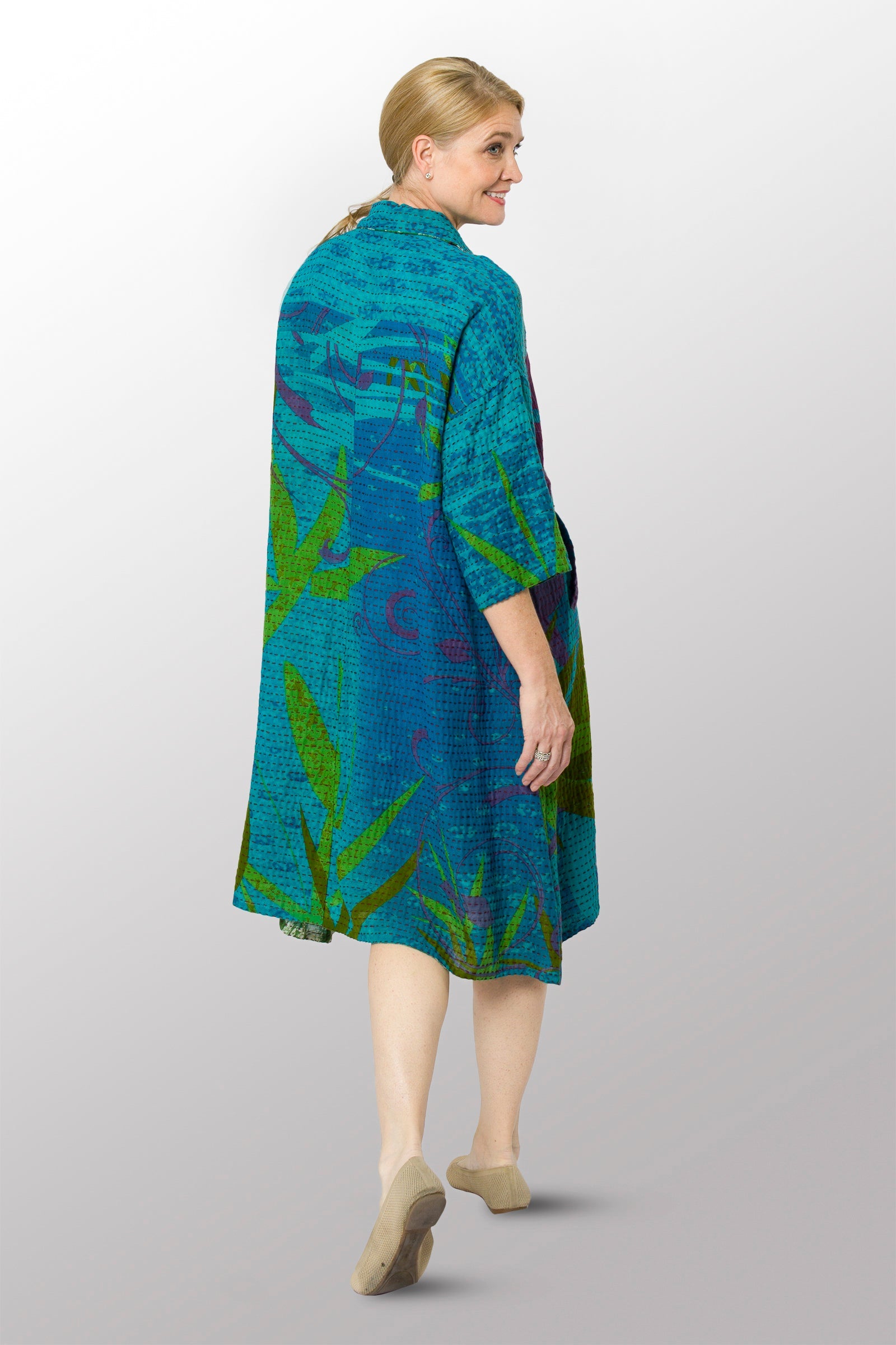 2 Layer Vintage Saris with Hand Stitches on Entire Garment - Reversible