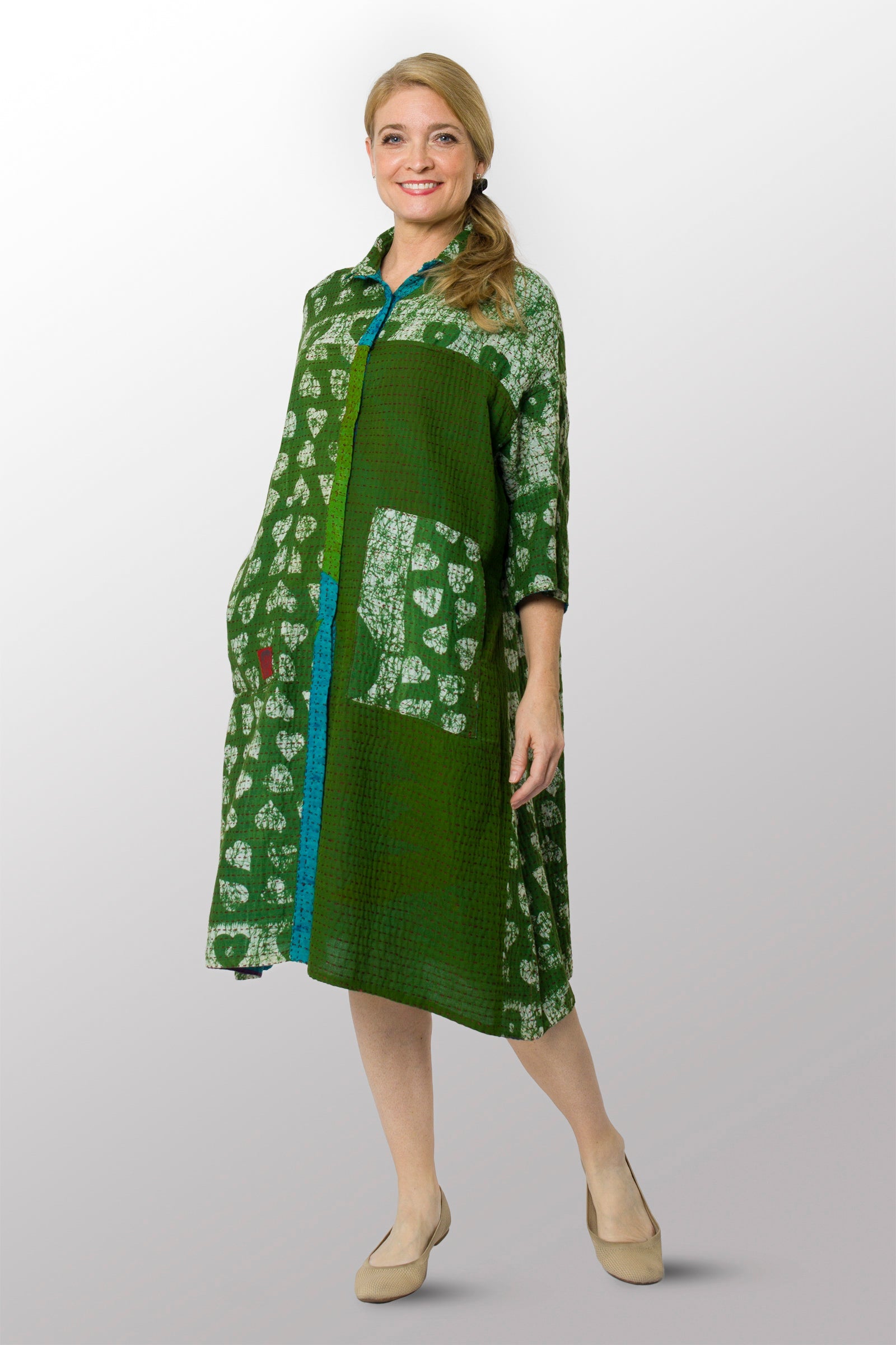 VINTAGE COTTON BBK KANTHA 3/4 SLV. SHIRT DRESS - bb2459-0001s -