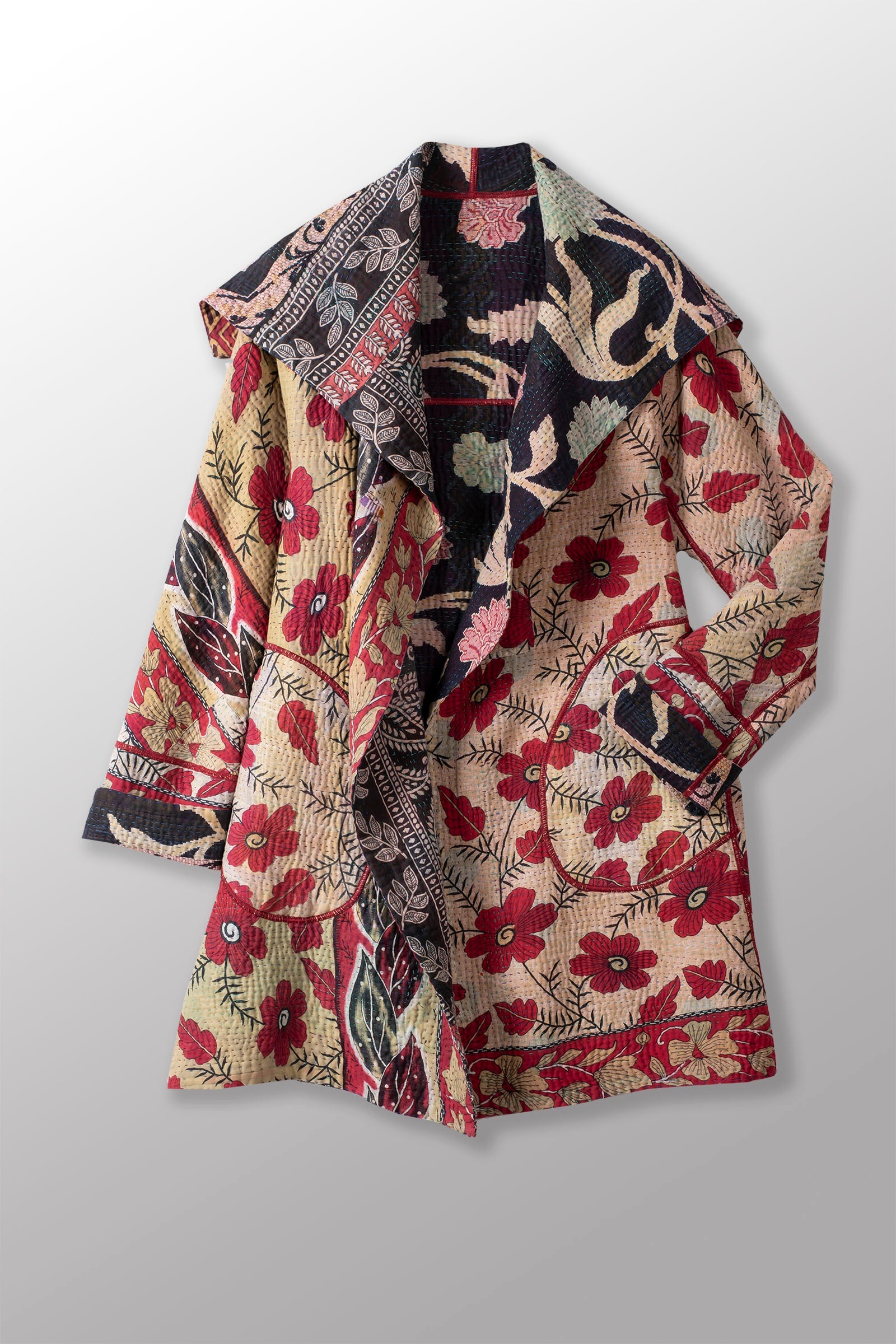 VINTAGE COTTON KANTHA A-LINE COAT P - cv4336-0060a -