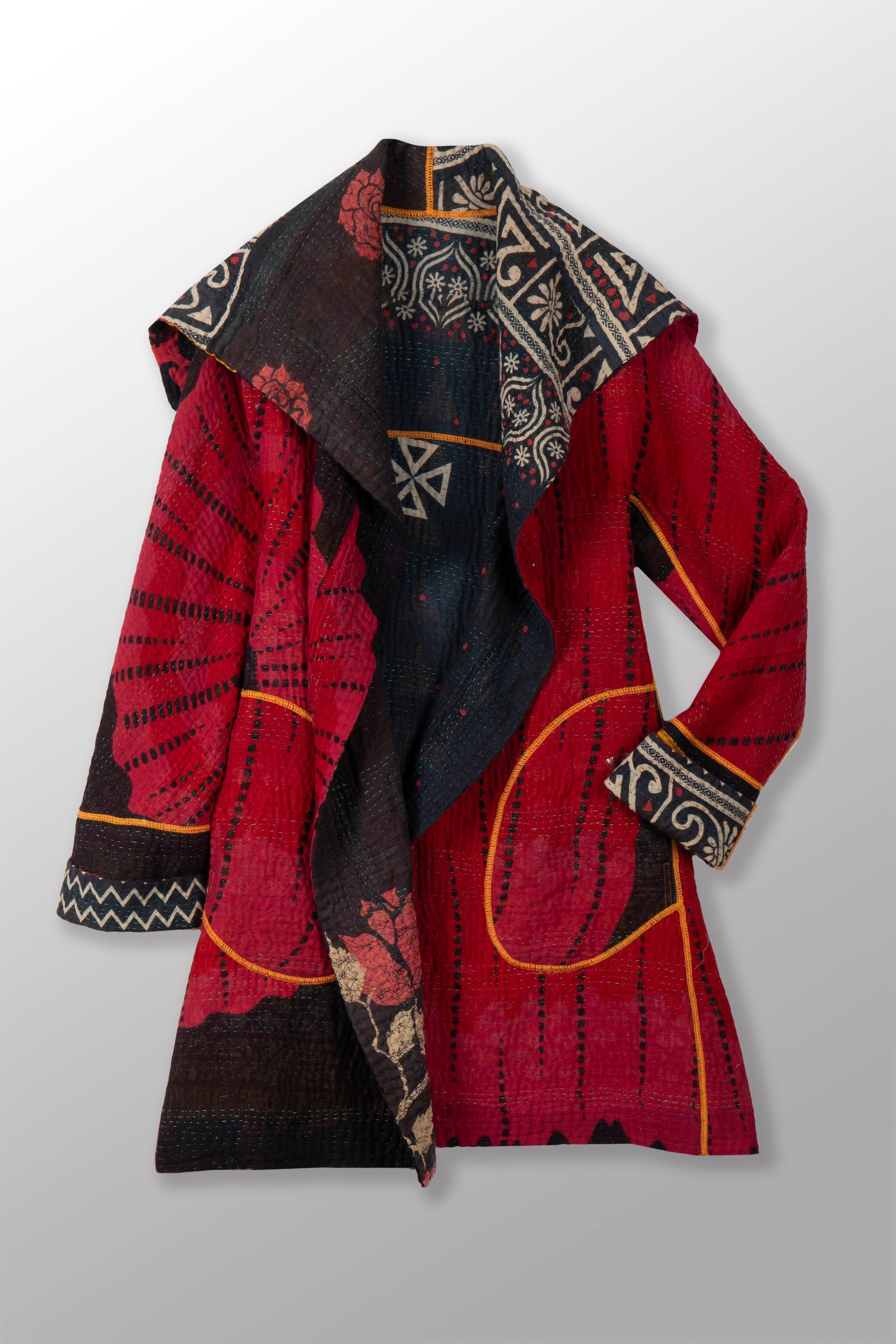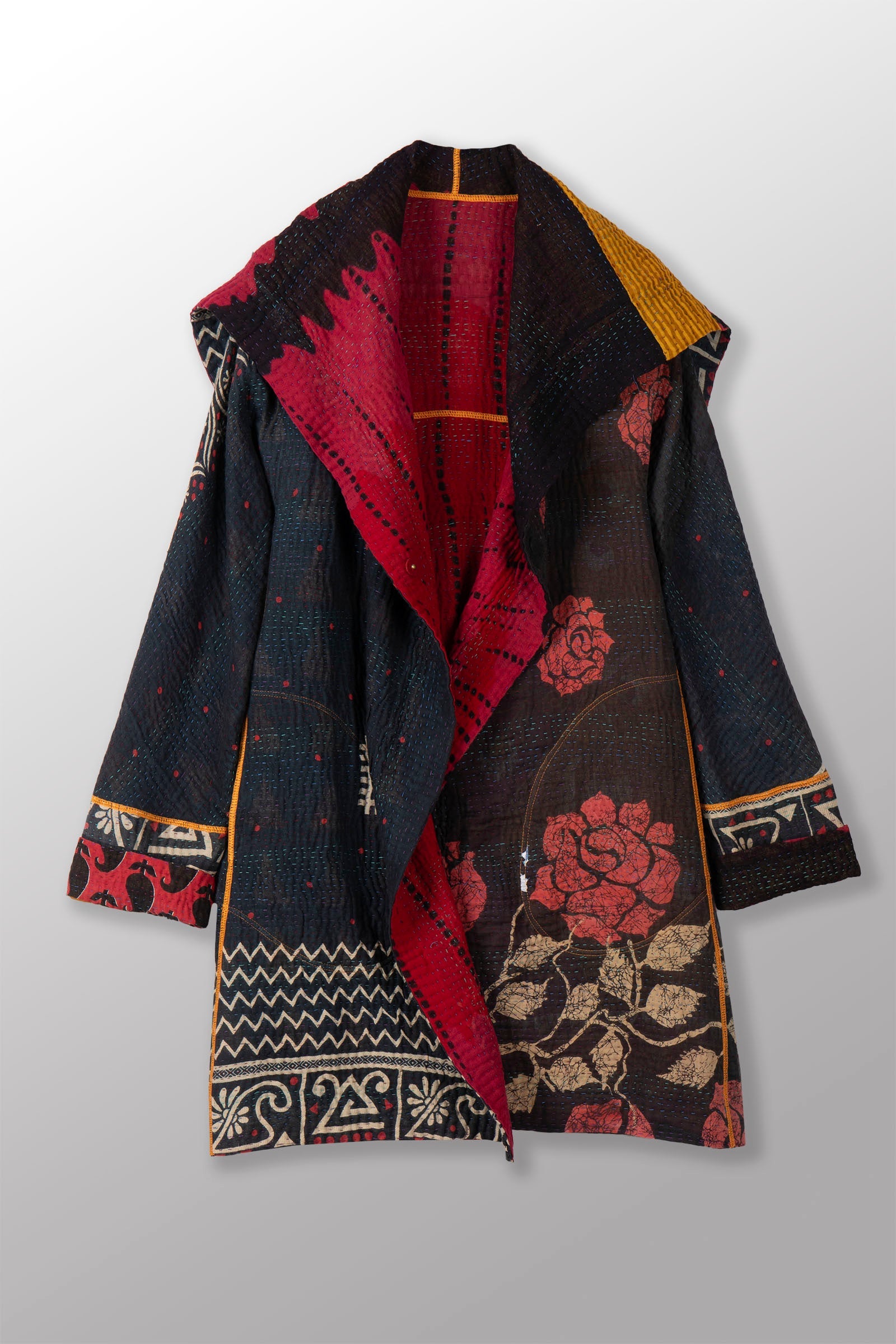 VINTAGE COTTON KANTHA A-LINE COAT P - cv4336-0061a -