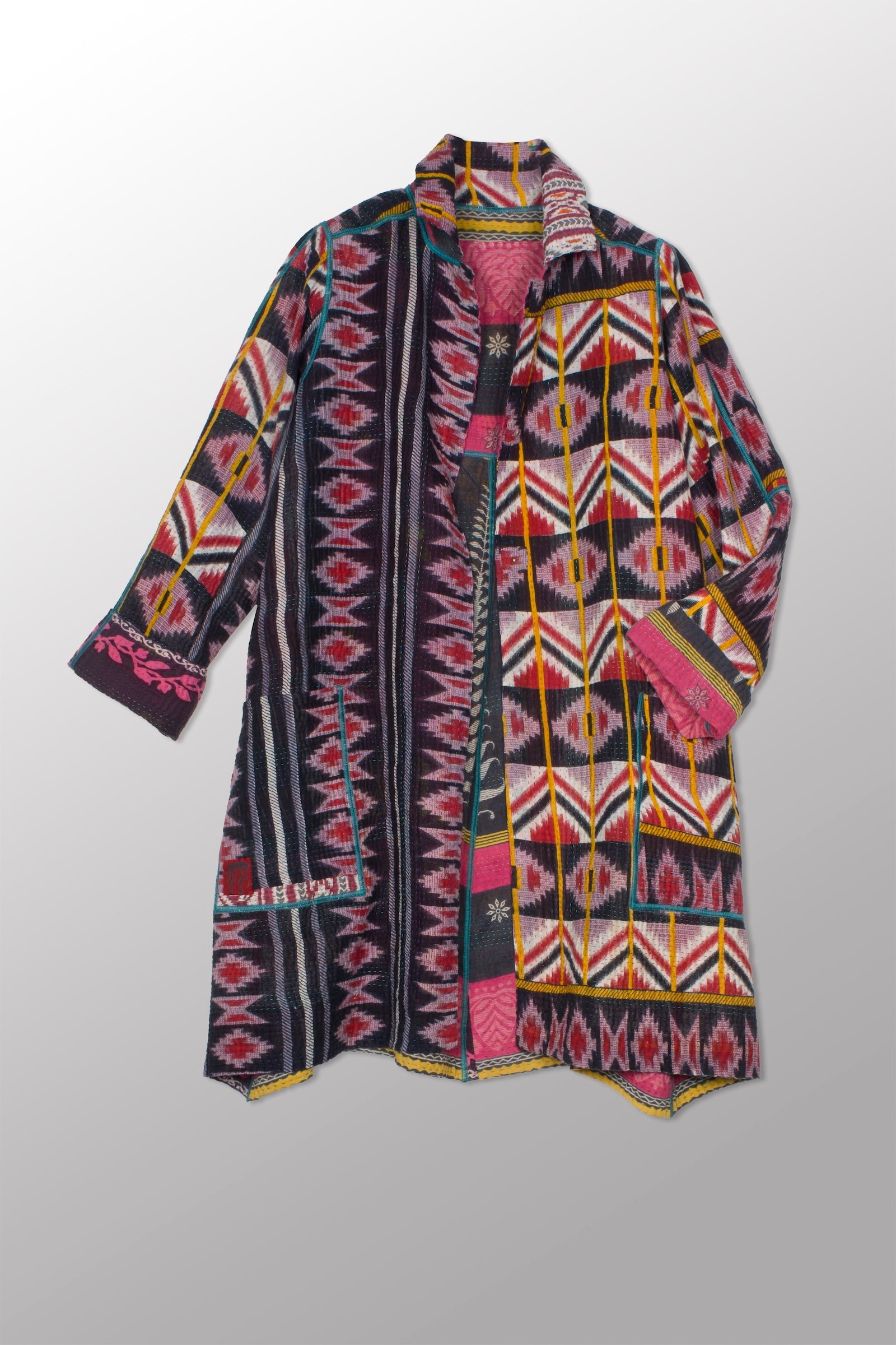 VINTAGE COTTON KANTHA A-LINE DUSTER - cv4311-0103a -