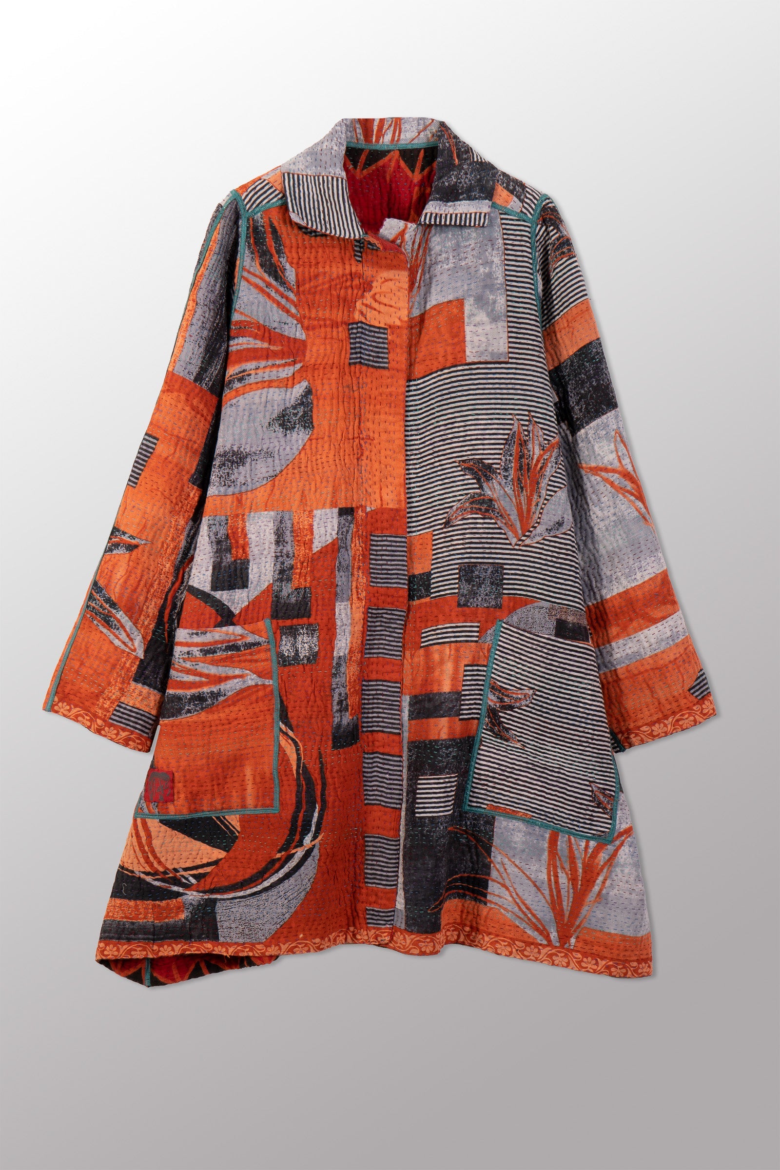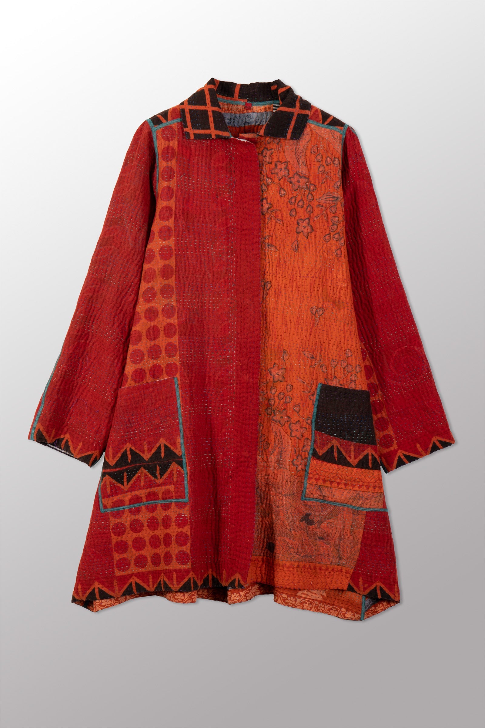 VINTAGE COTTON KANTHA A-LINE DUSTER - cv4311-0107a -