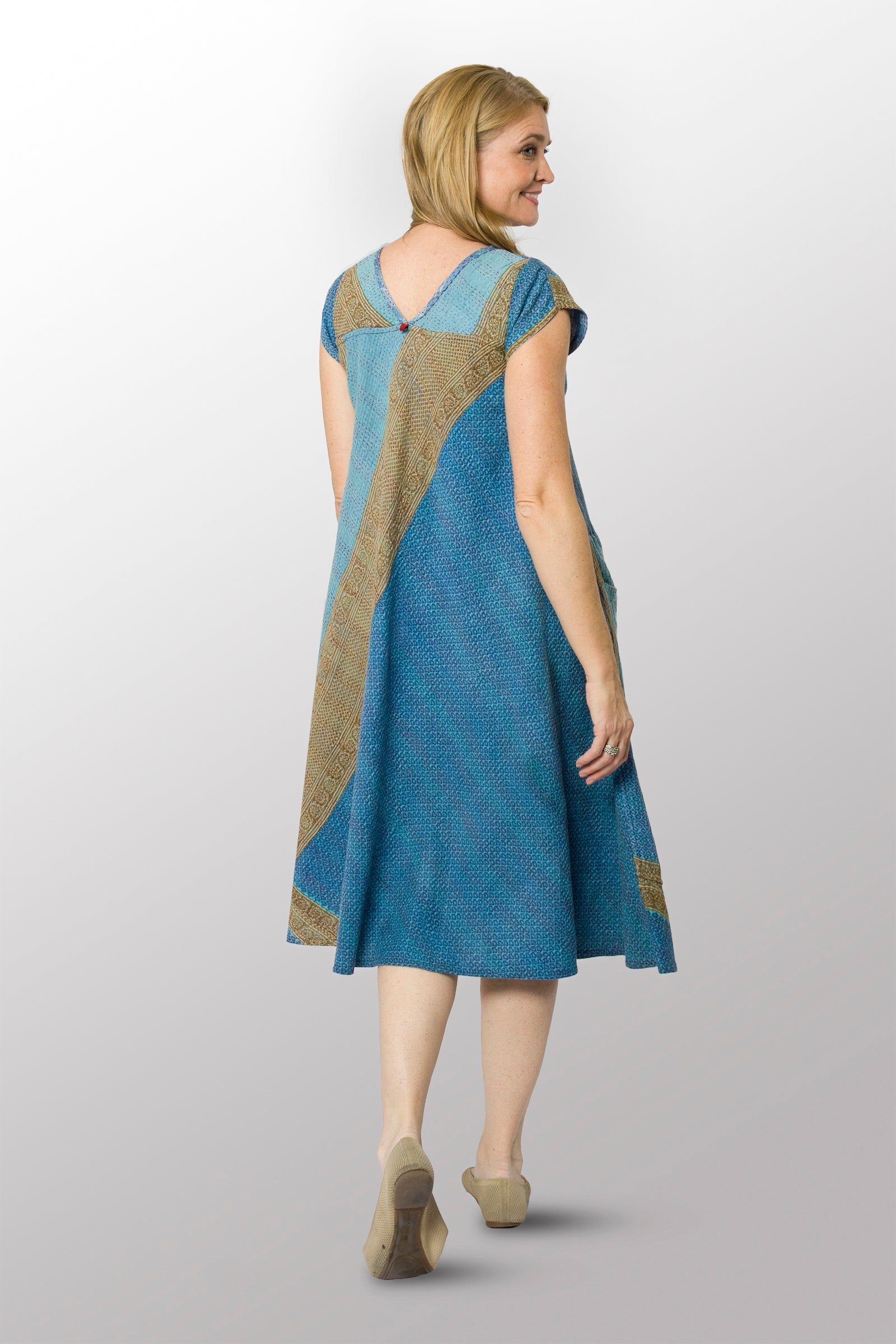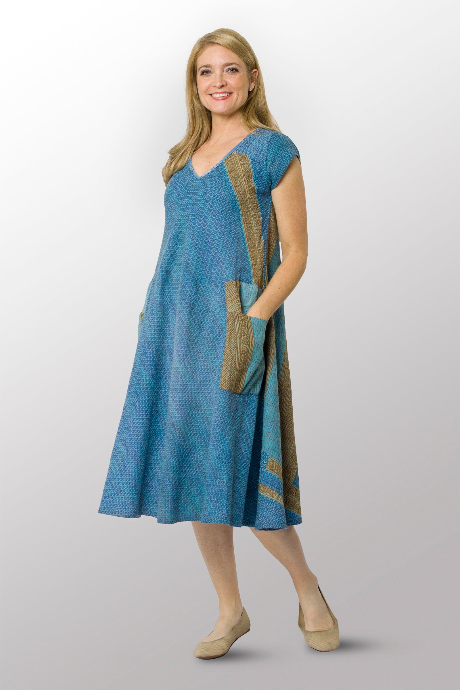 VINTAGE COTTON KANTHA CAP SLV. FLARE DRESS - cv2425-0011s -