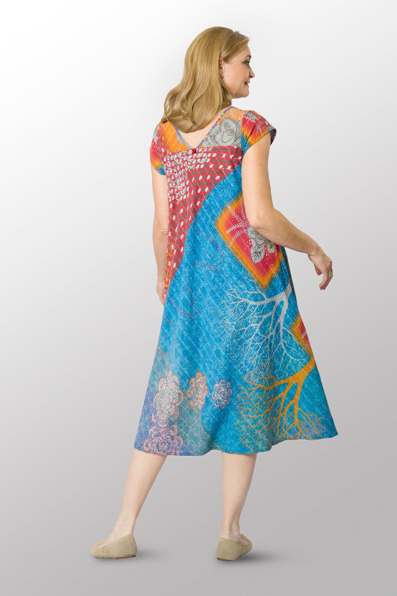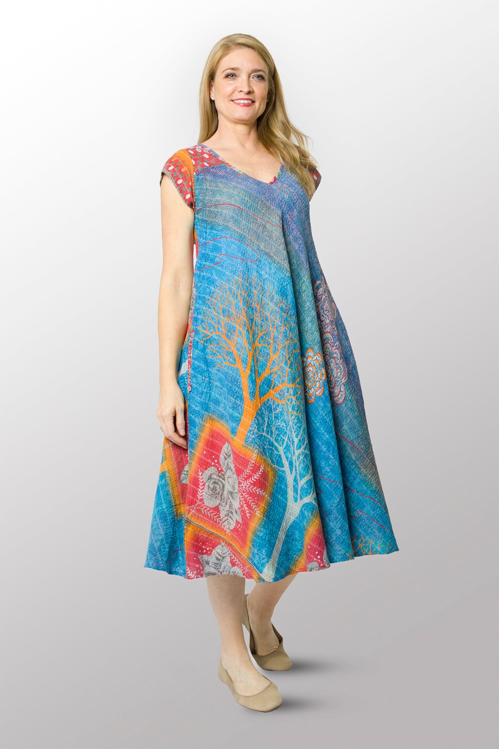 VINTAGE COTTON KANTHA CAP SLV. FLARE DRESS - cv2425-0017m -