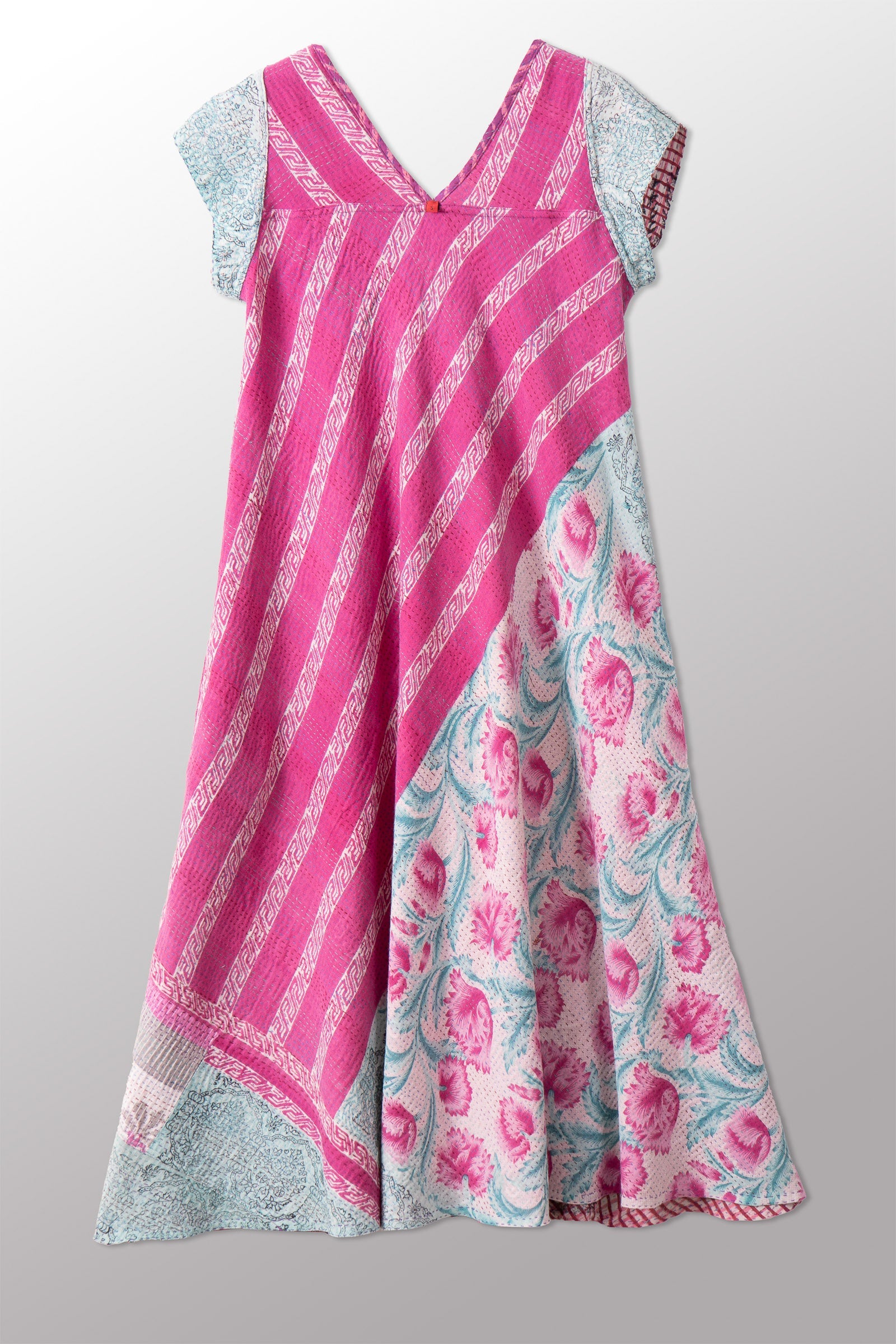 VINTAGE COTTON KANTHA CAP SLV. FLARE DRESS - cv2425-0018s -