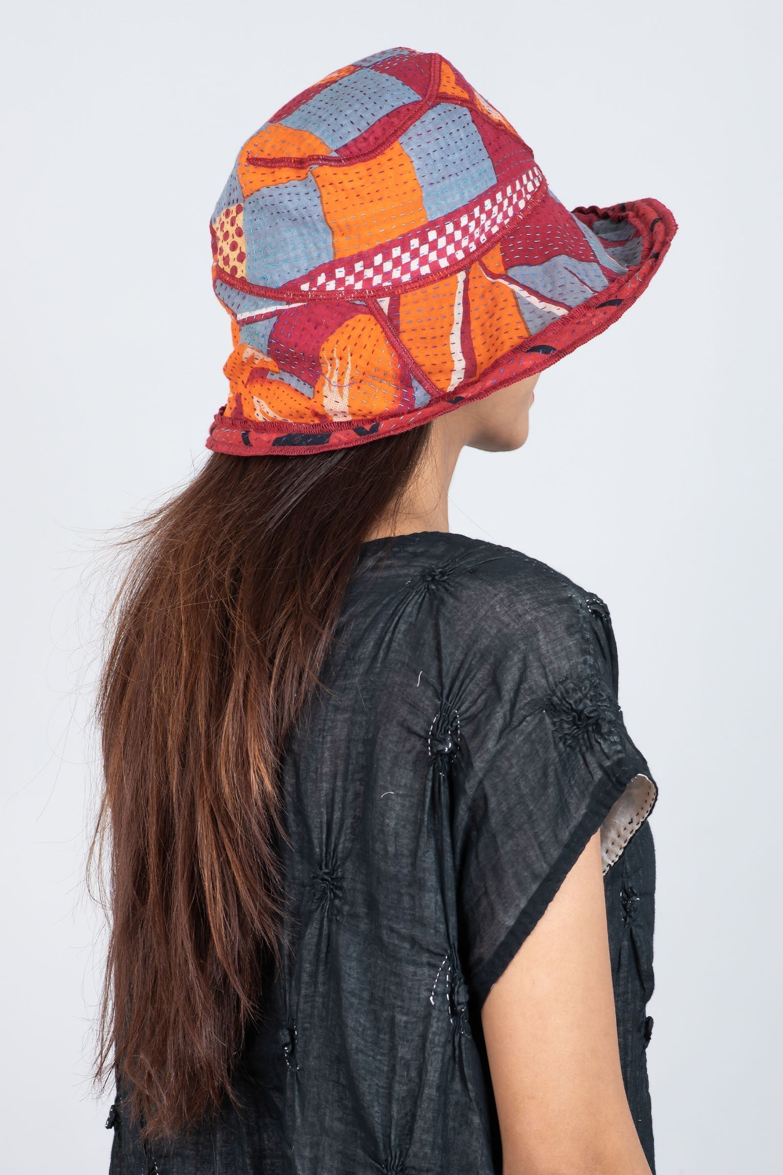 VINTAGE COTTON KANTHA CIRCULAR CUT BRIM HAT - cv2882-red -