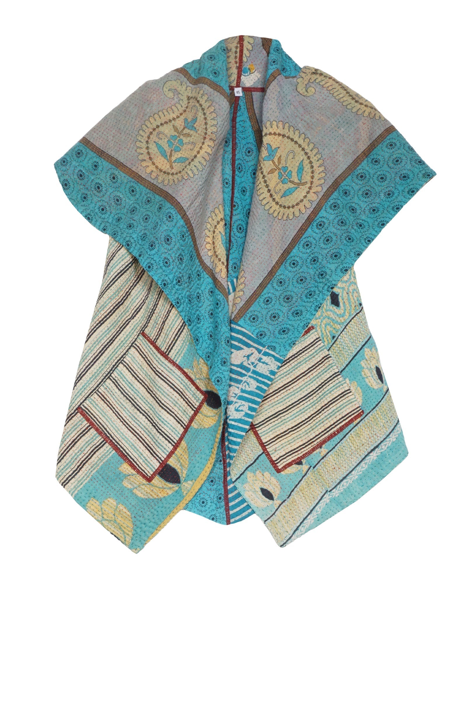 VINTAGE COTTON KANTHA CIRCULAR SHORT VEST - cv4202-0004a -