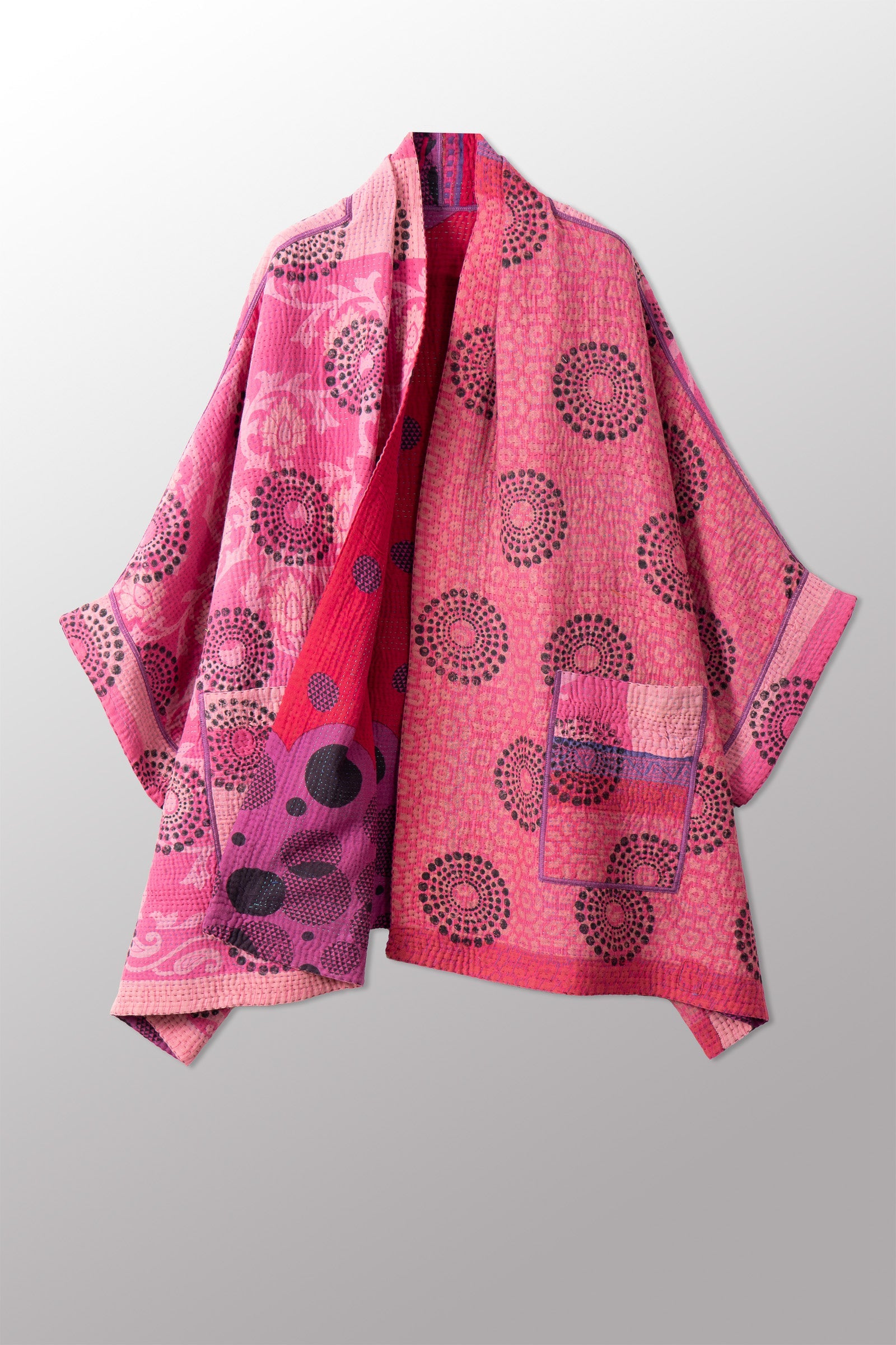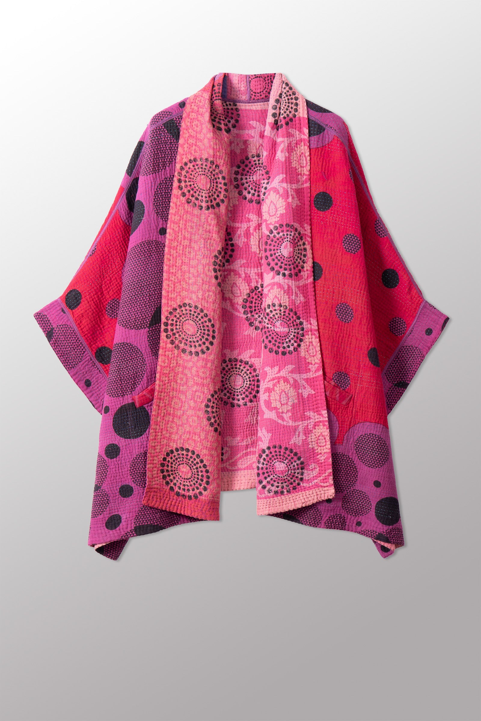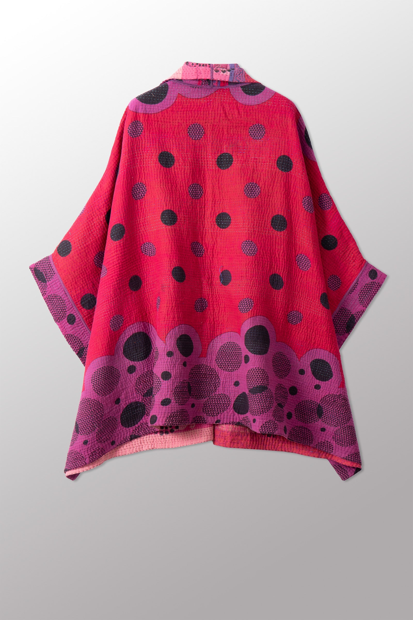 VINTAGE COTTON KANTHA DOUBLE COLLAR PONCHO - cv4323-0049a -