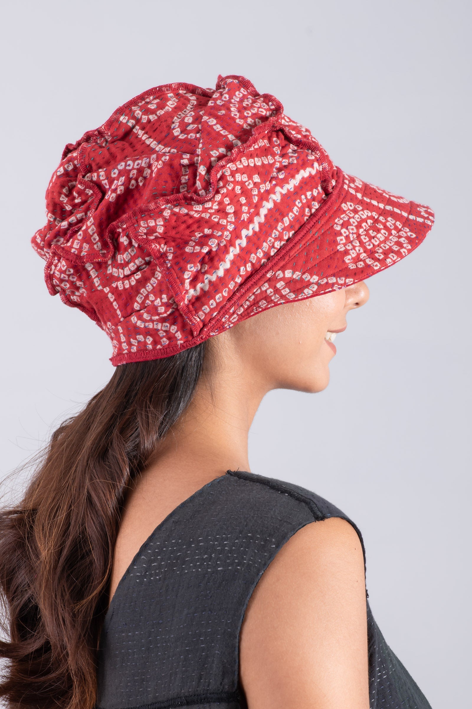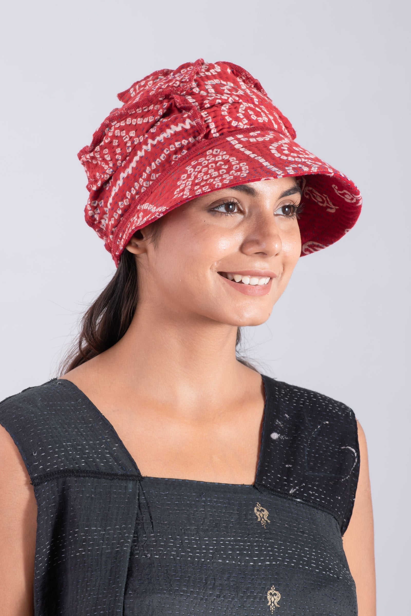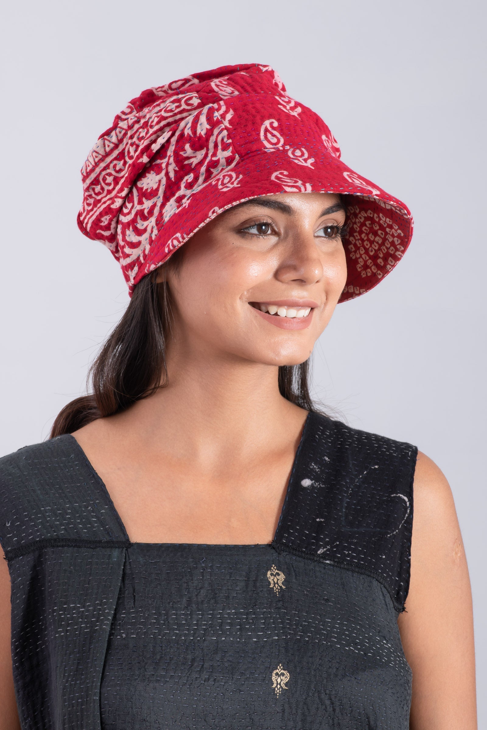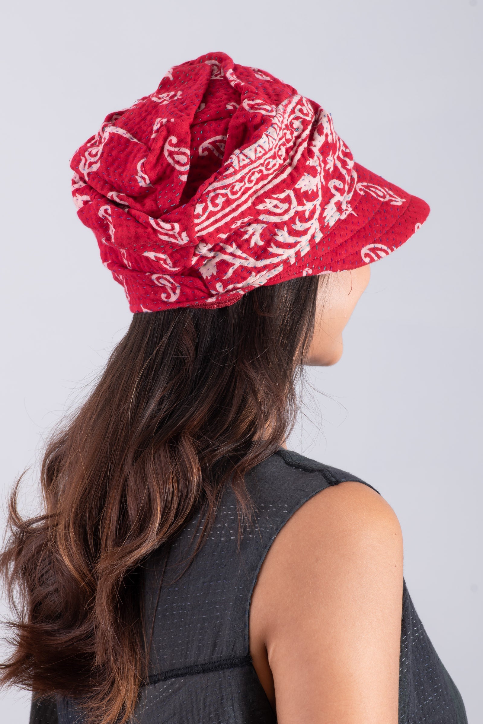 VINTAGE COTTON KANTHA HALF BRIM HAT - cv4881-red -