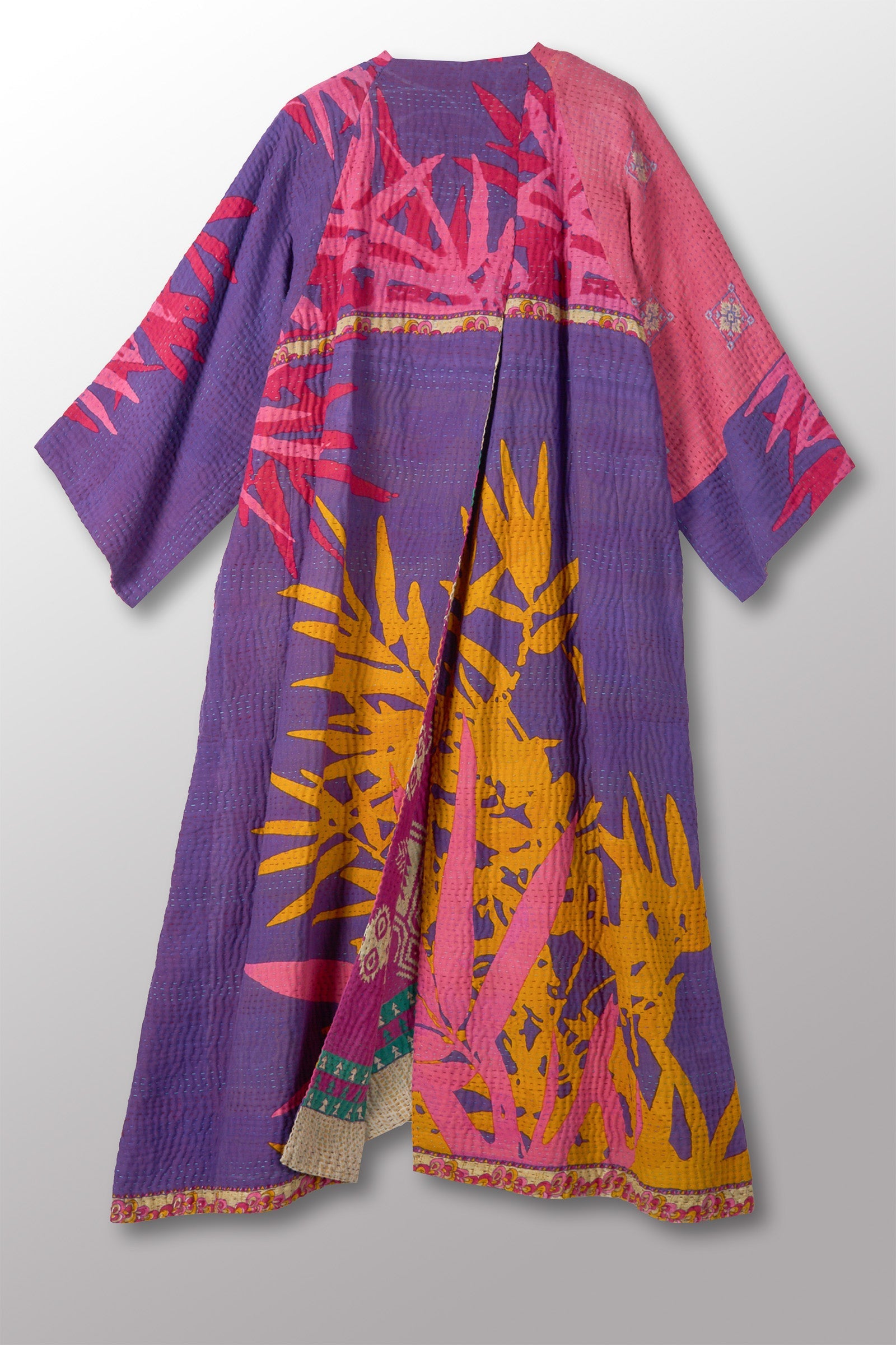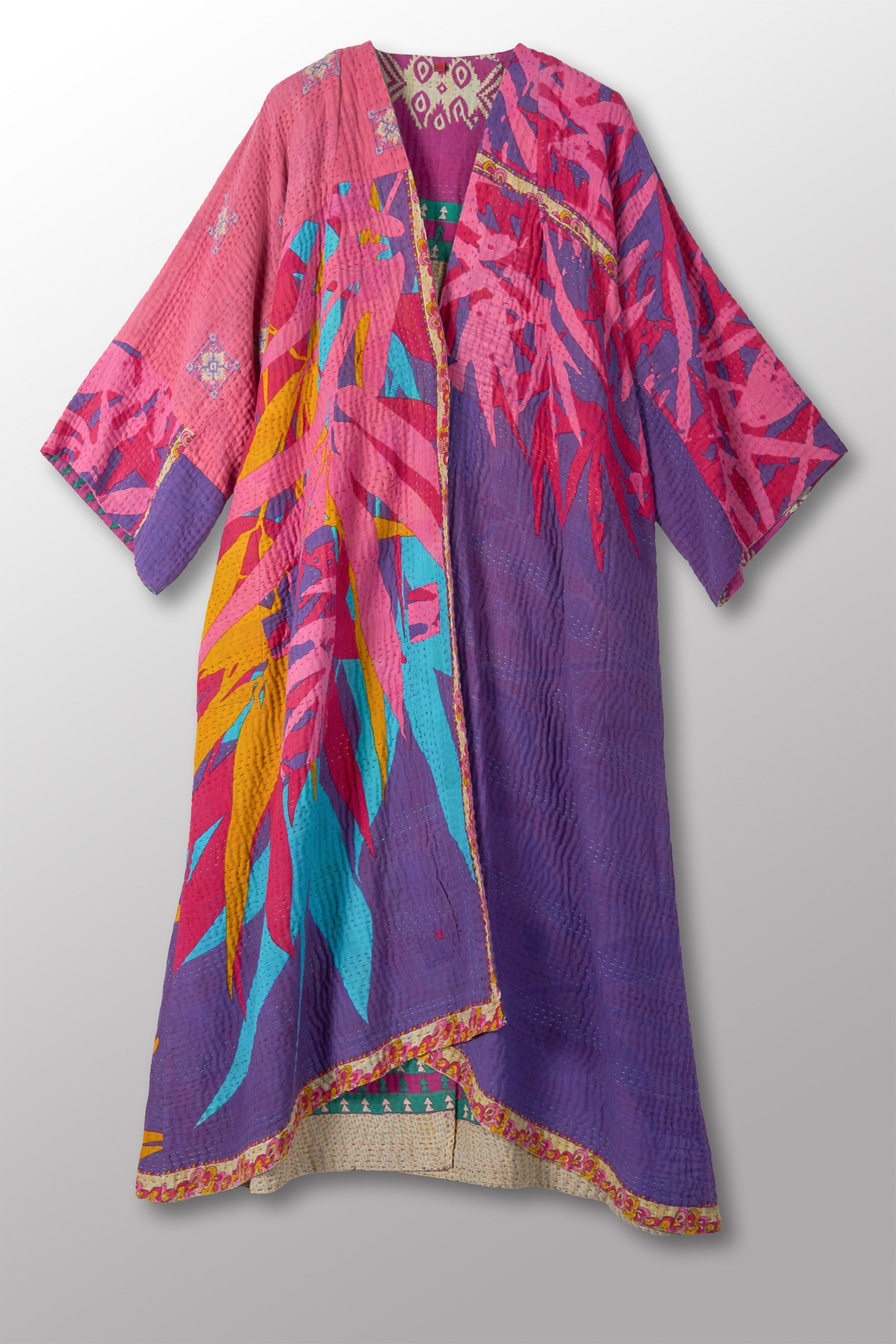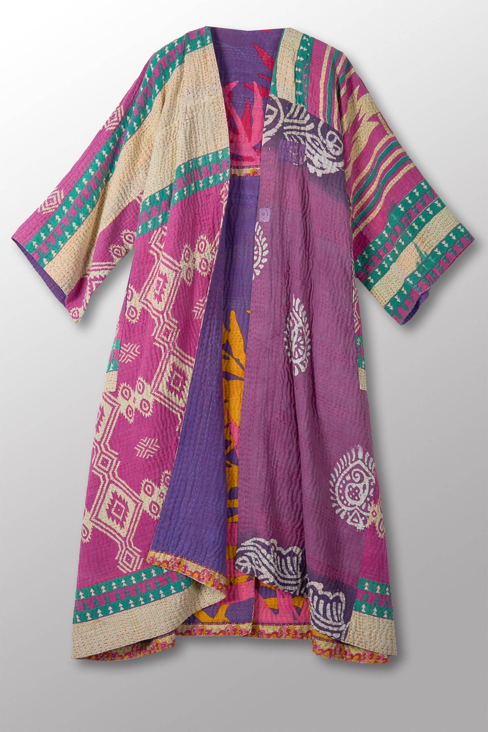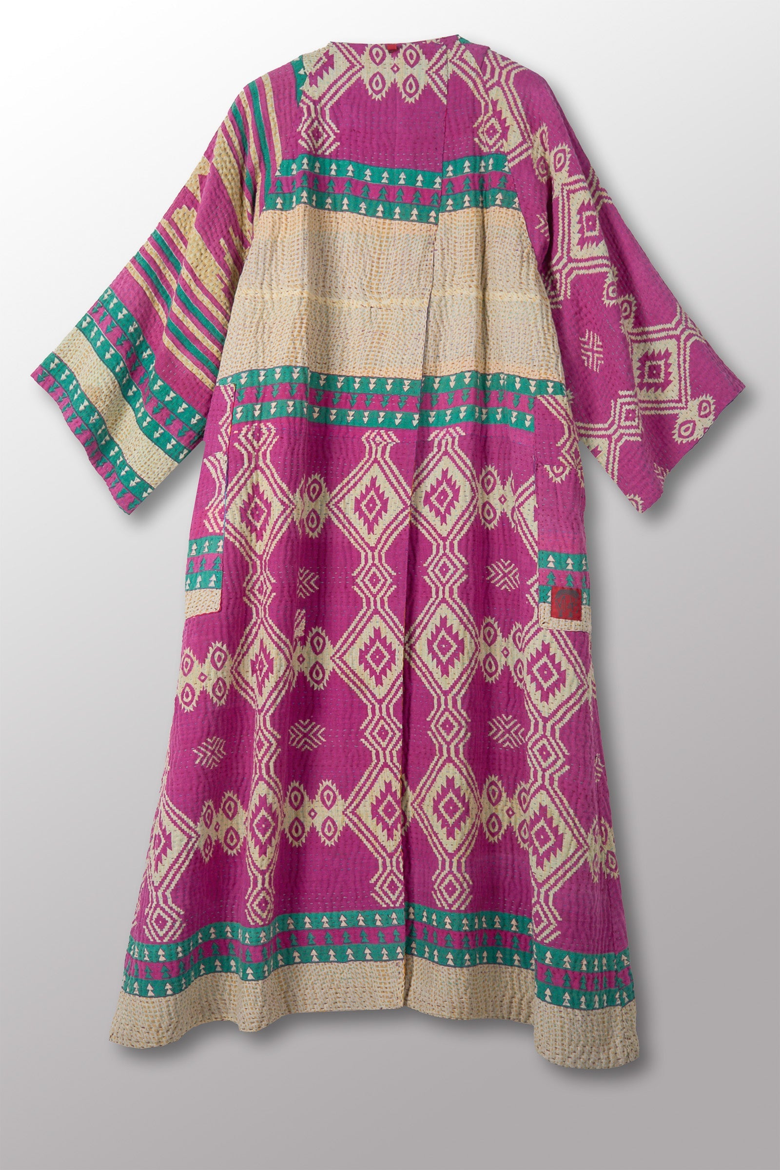 VINTAGE COTTON KANTHA KIMONO MAXI - cv4318-0018a -
