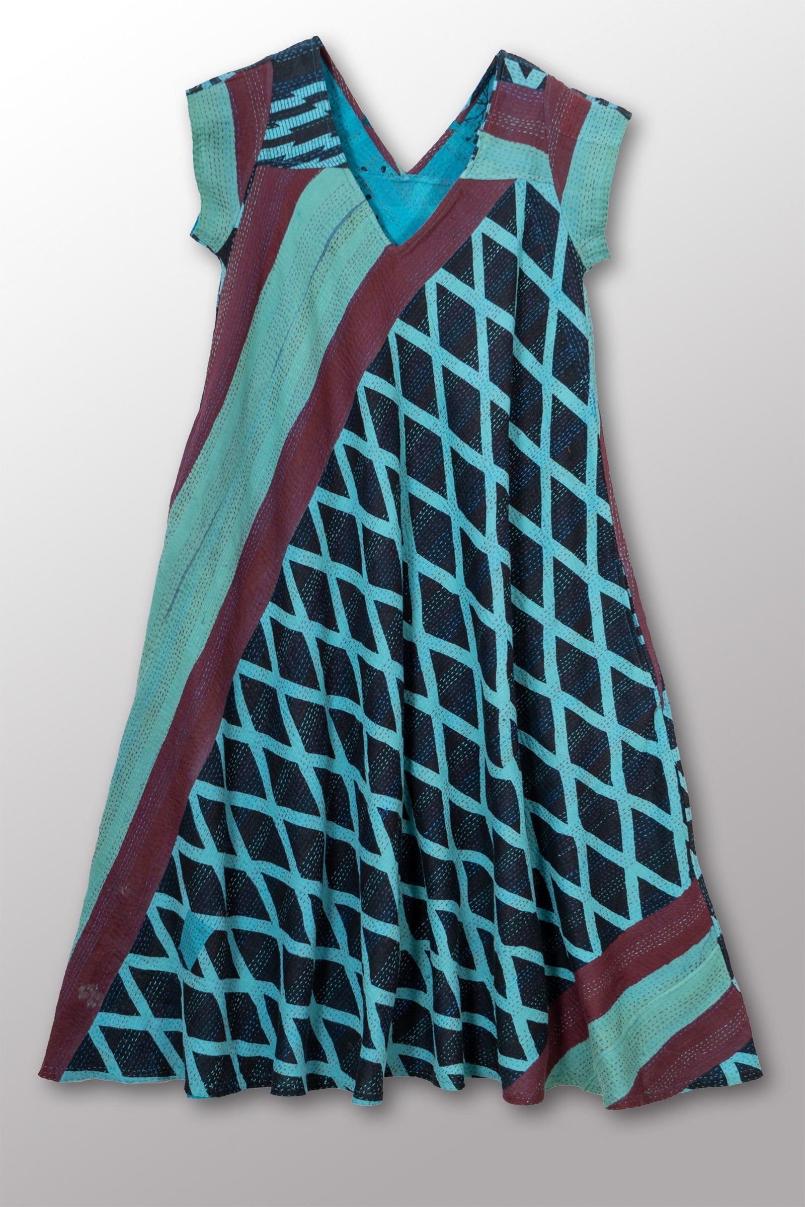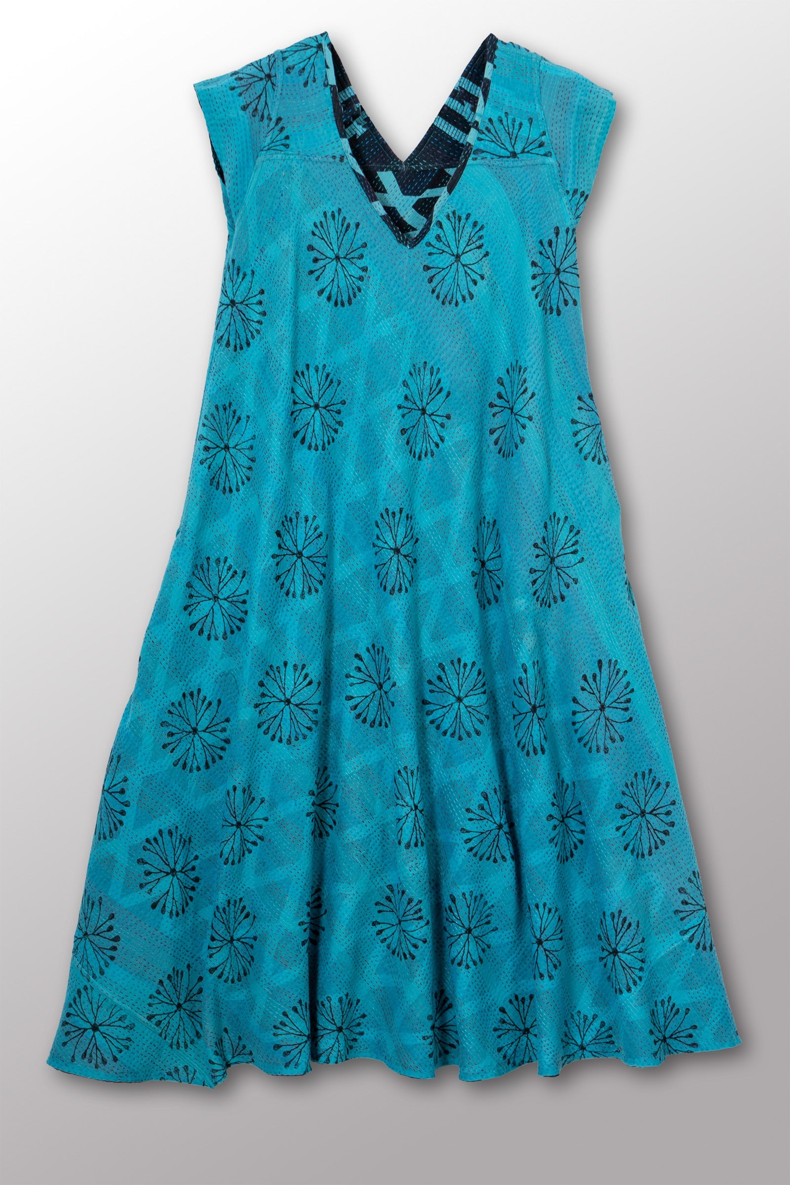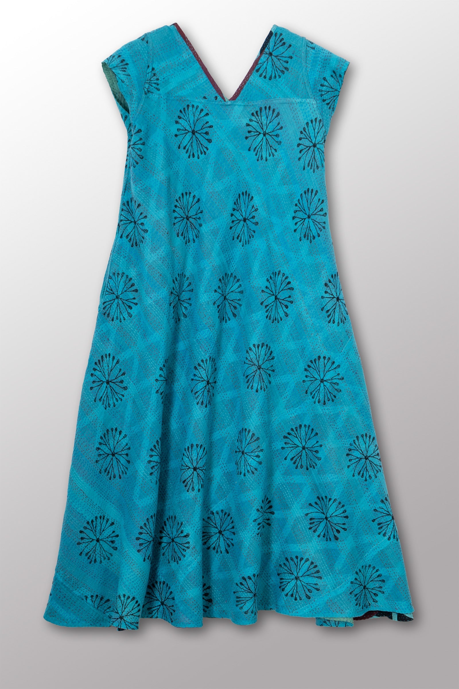 VINTAGE COTTON & NEW VOILE KANTHA CAP SLV. FLARE DRESS - cn2425-0008s -