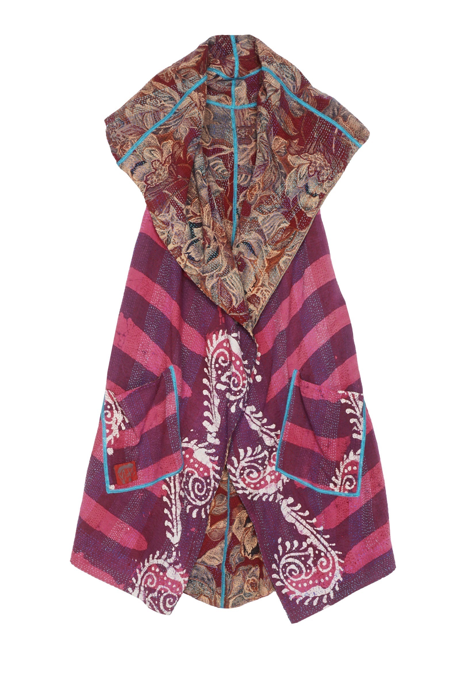 2 Layer Vintage Saris with Hand Stitches on Entire Garment - Reversible
