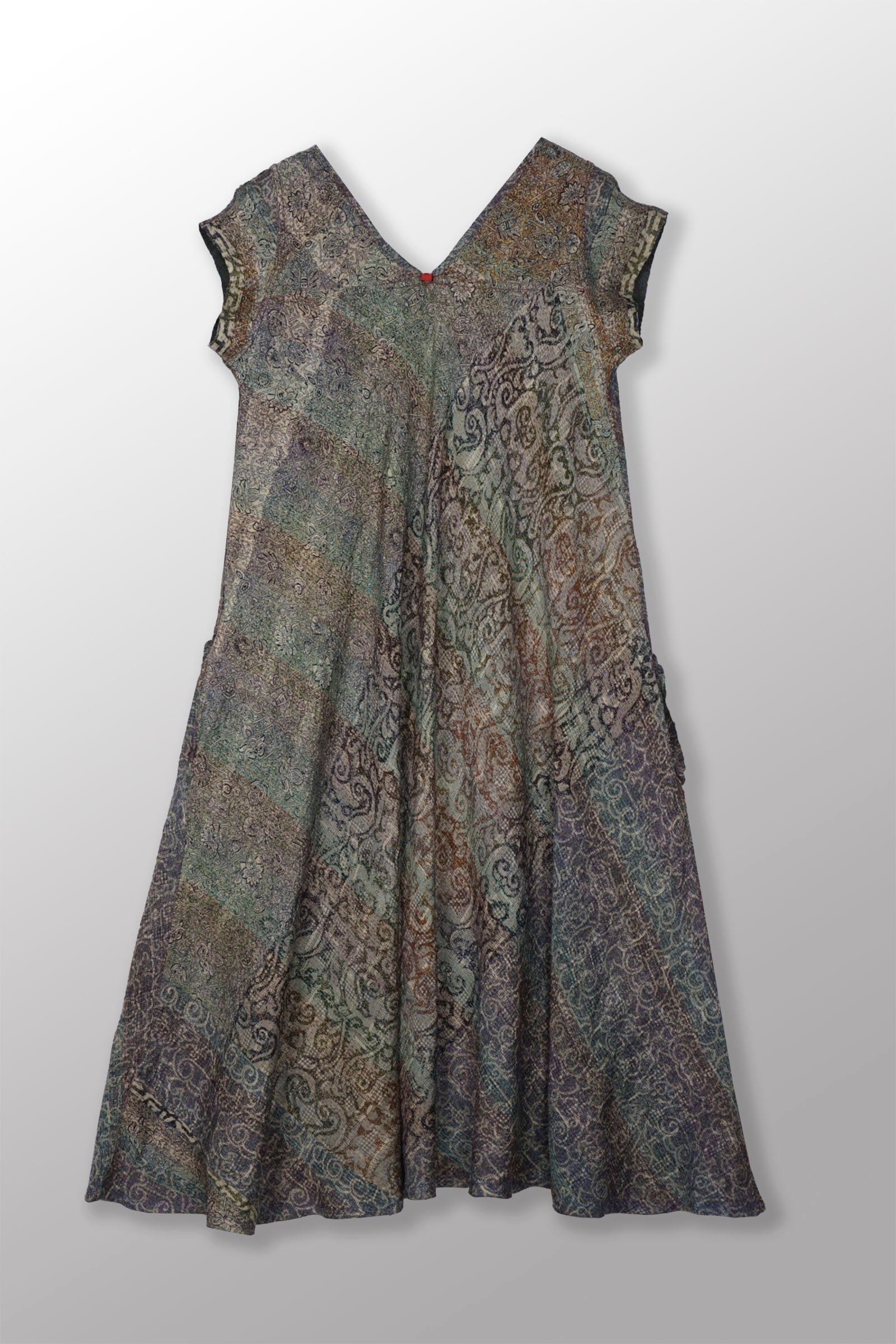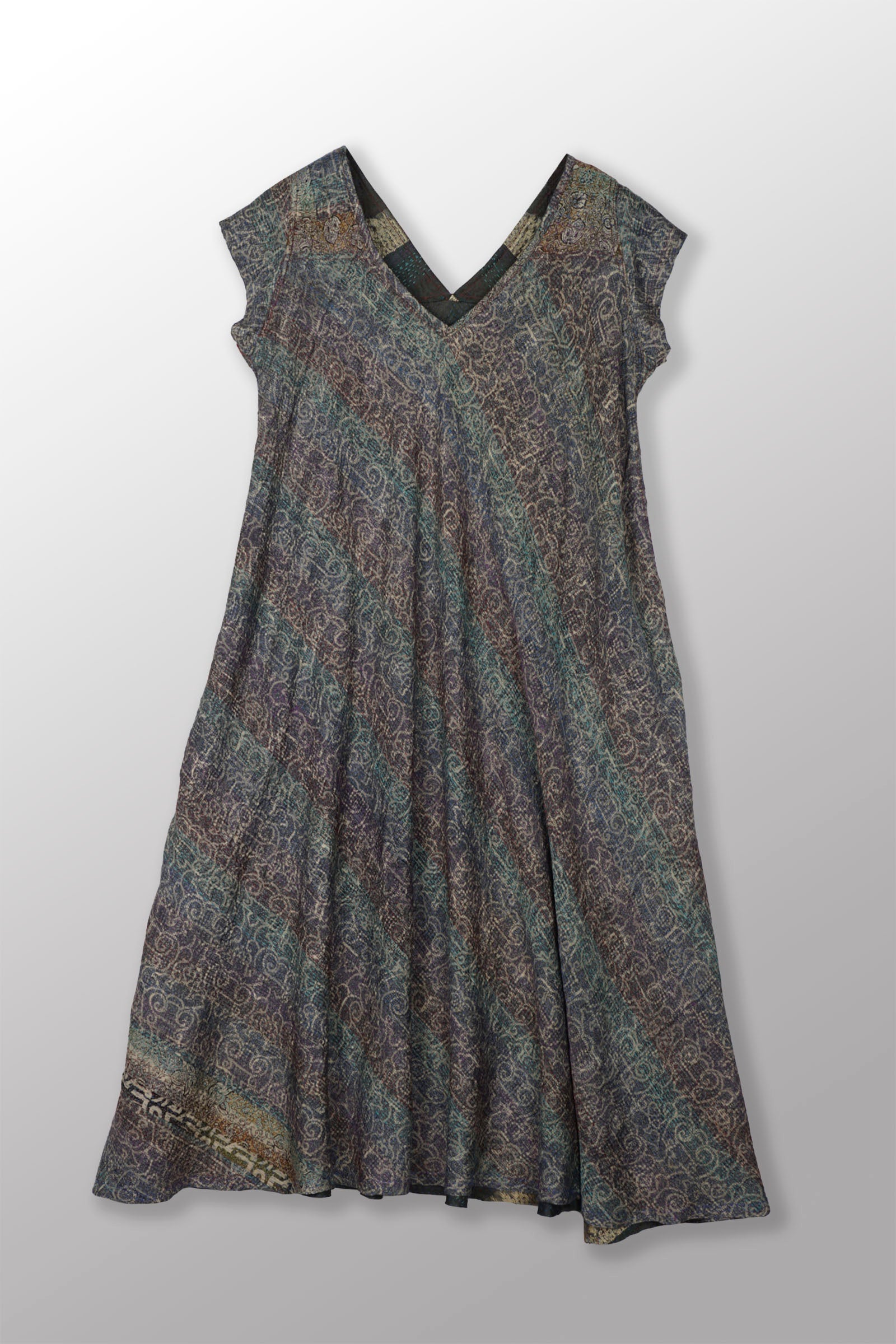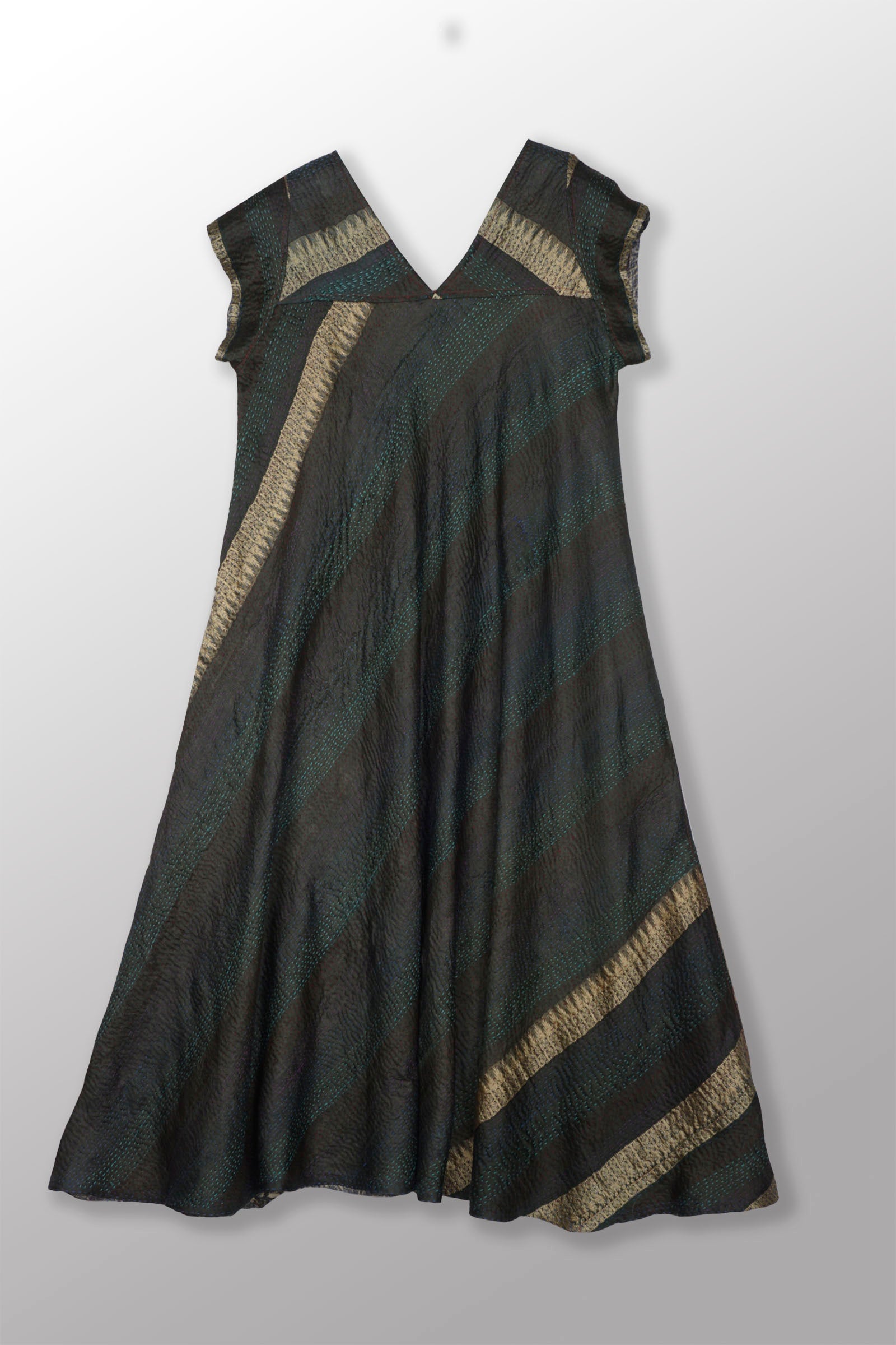VINTAGE SILK GEORGETTE KANTHA CAP SLV. FLARE DRESS - sg2425-0006m -