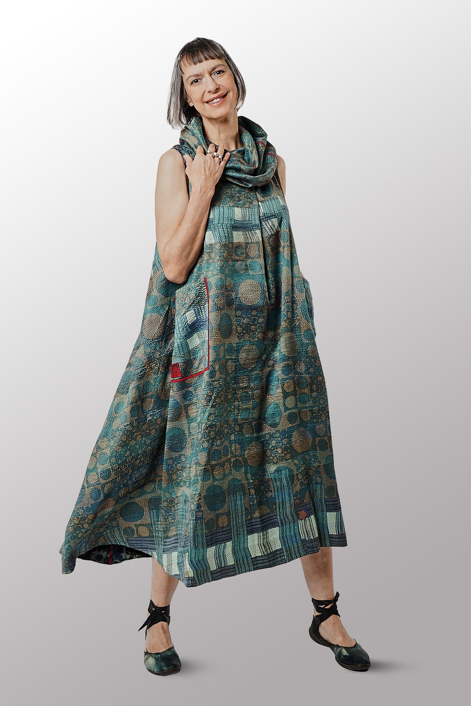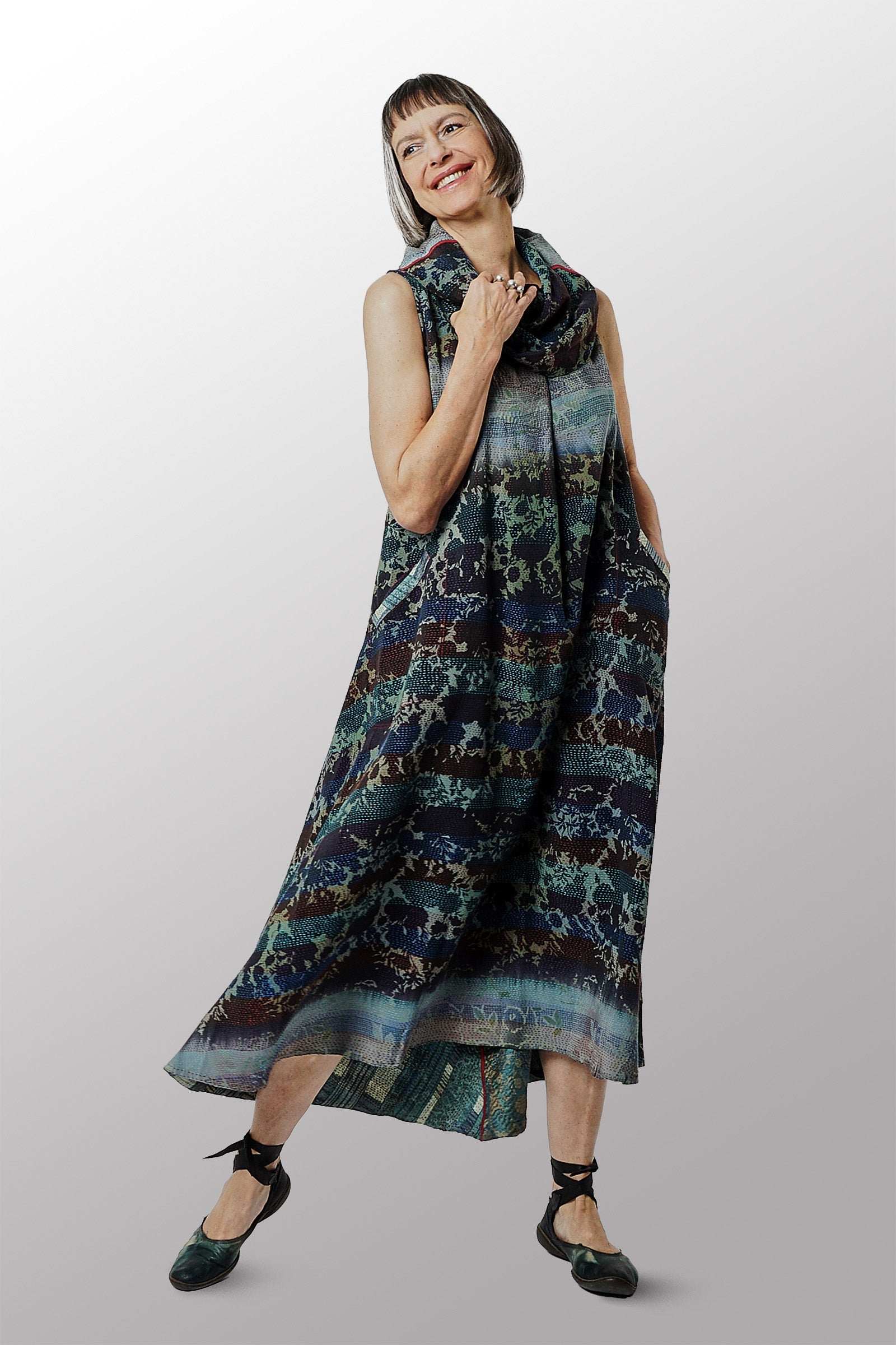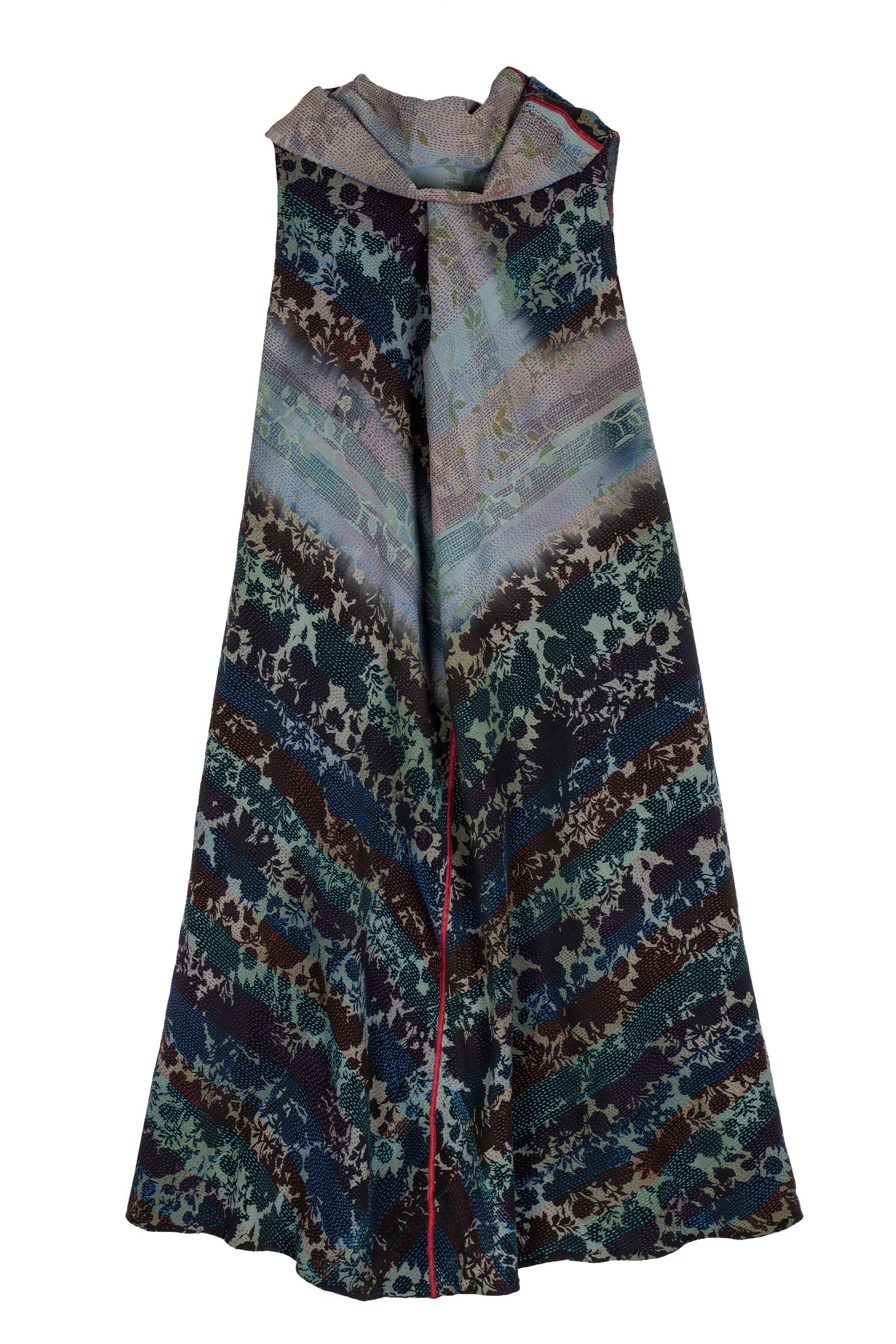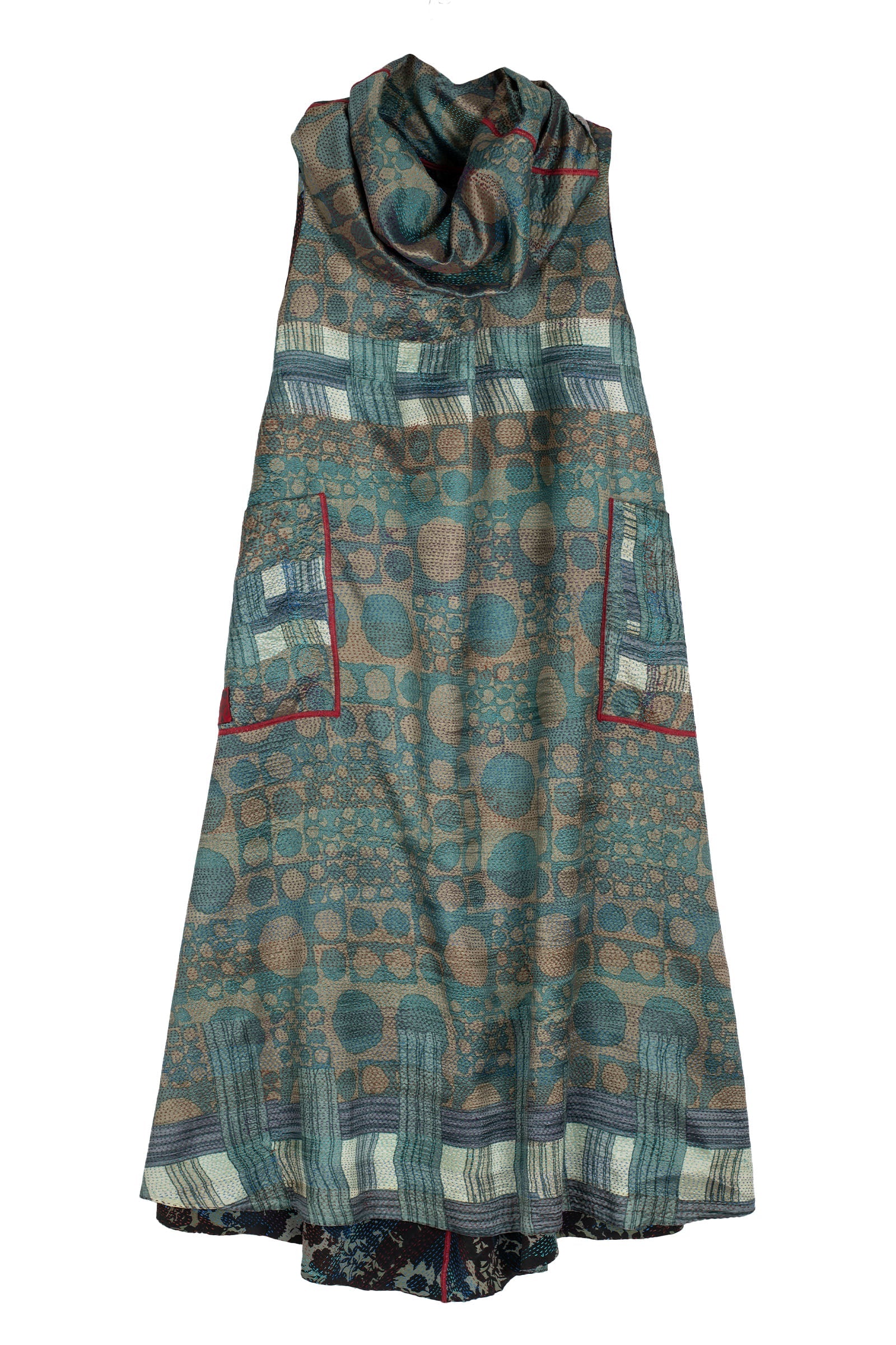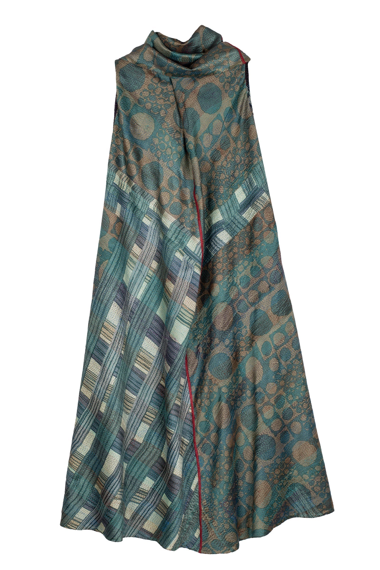 VINTAGE SILK GEORGETTE KANTHA COWL NECK MAXI DRESS - sg2438-0004m -