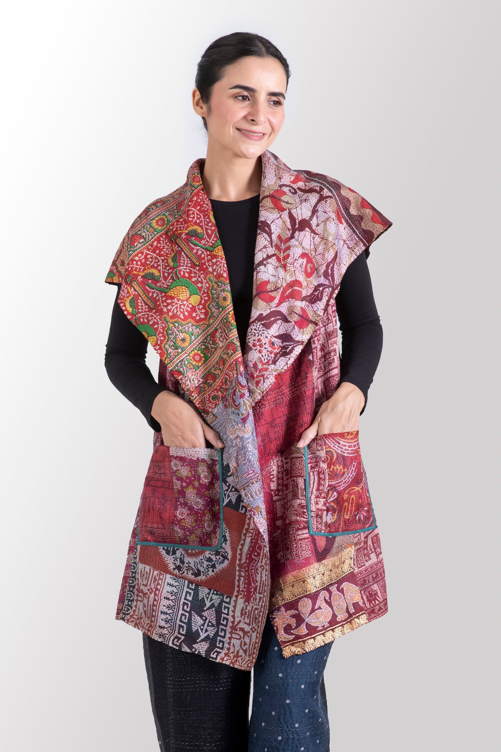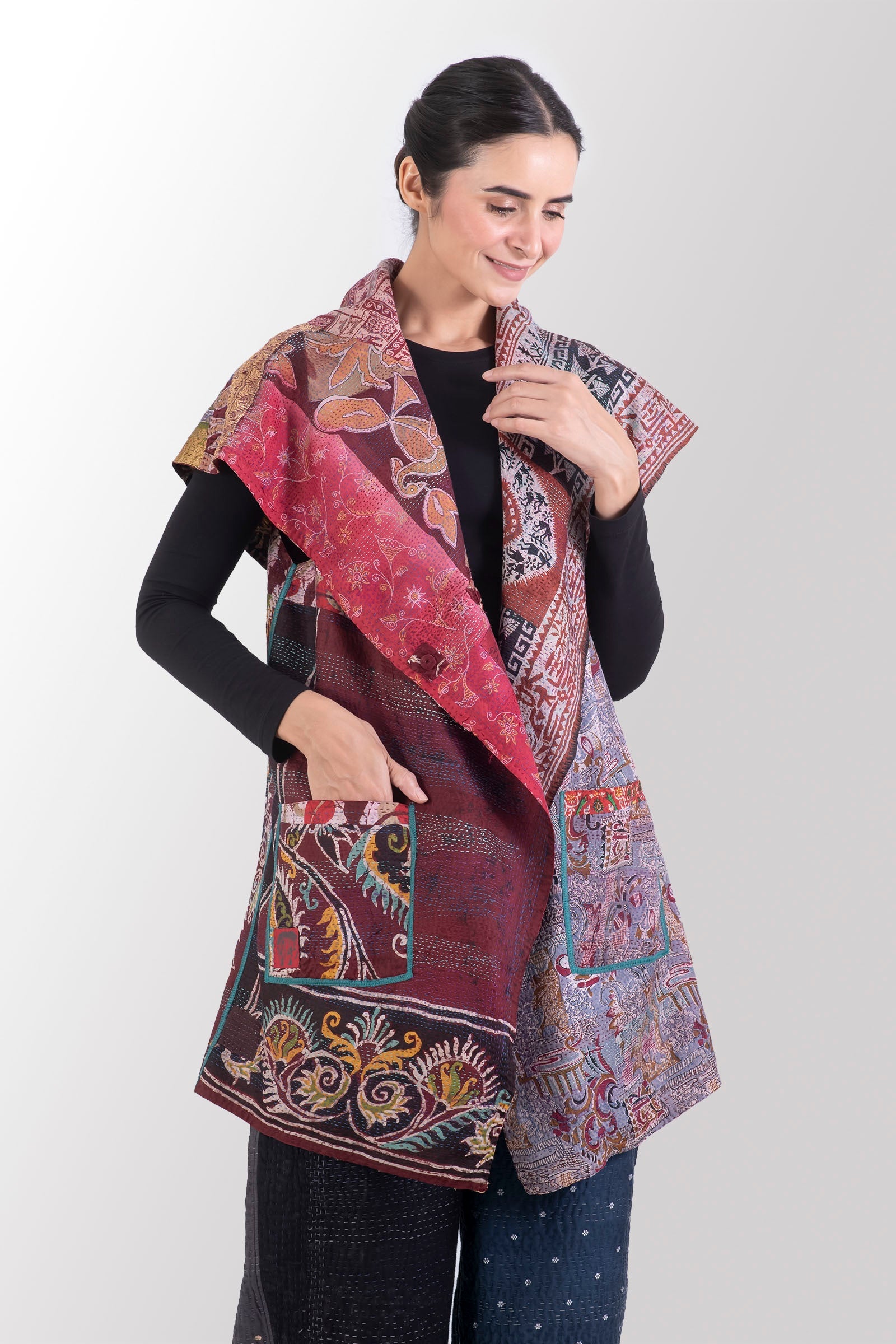 VINTAGE SILK KANTHA CIRCULAR VEST - sv2201-0093a -