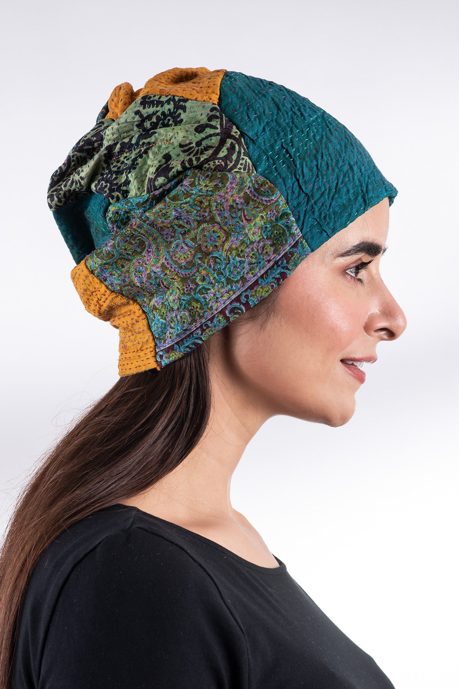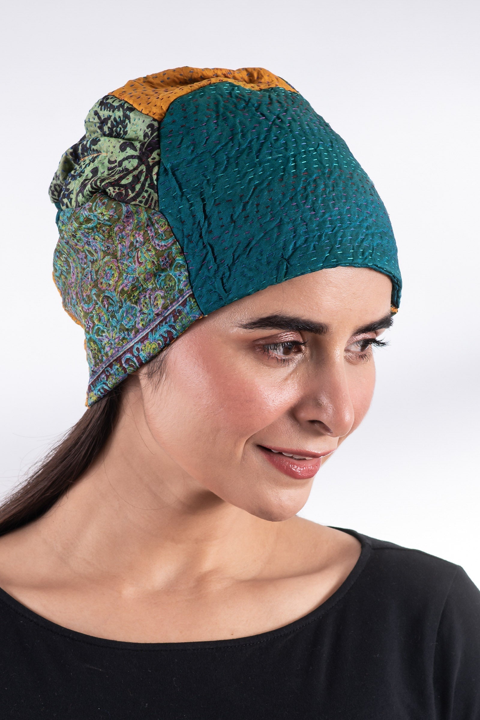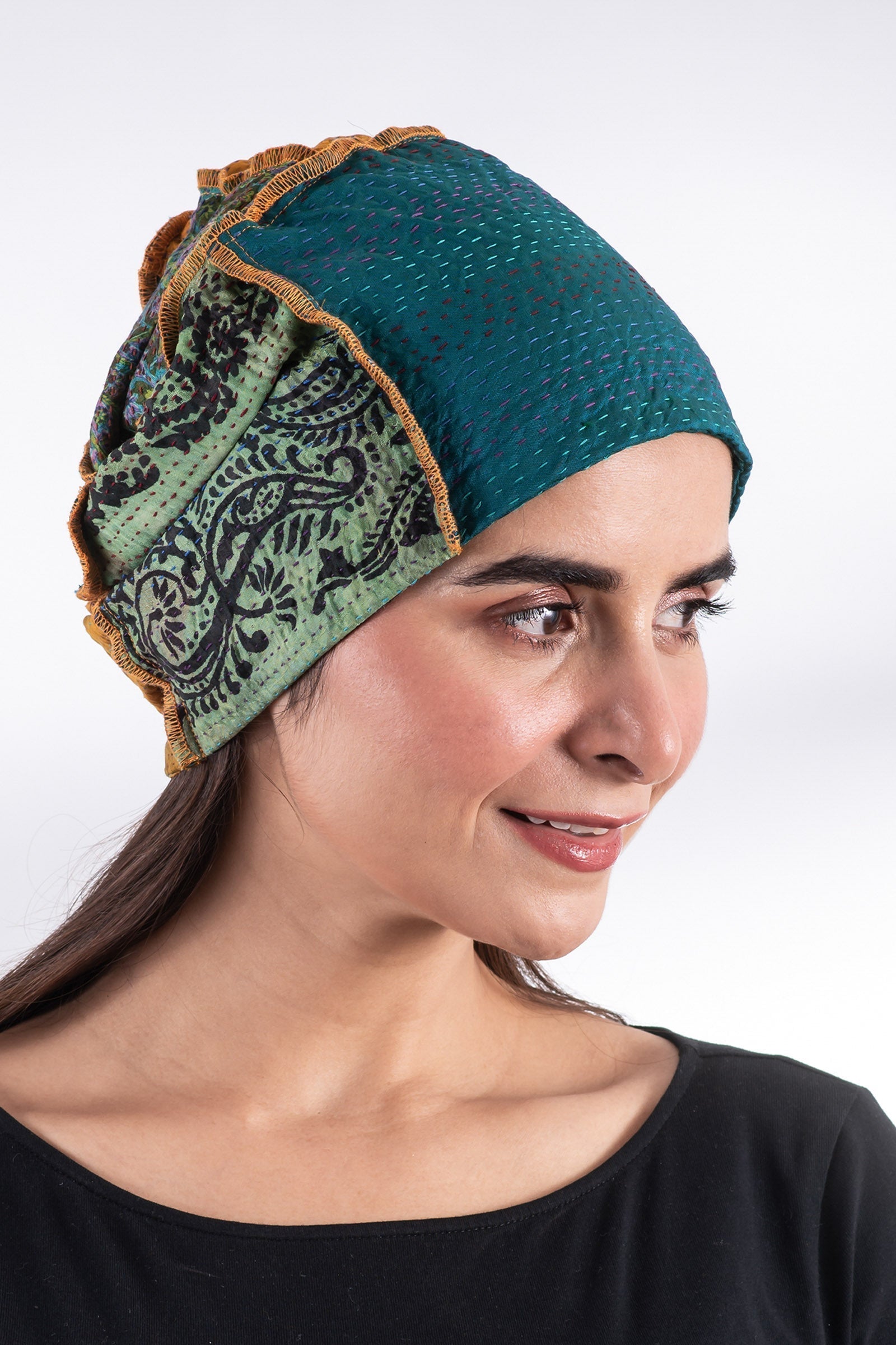 VINTAGE SILK KANTHA PATCHWORK HAT - sv2880-grn -