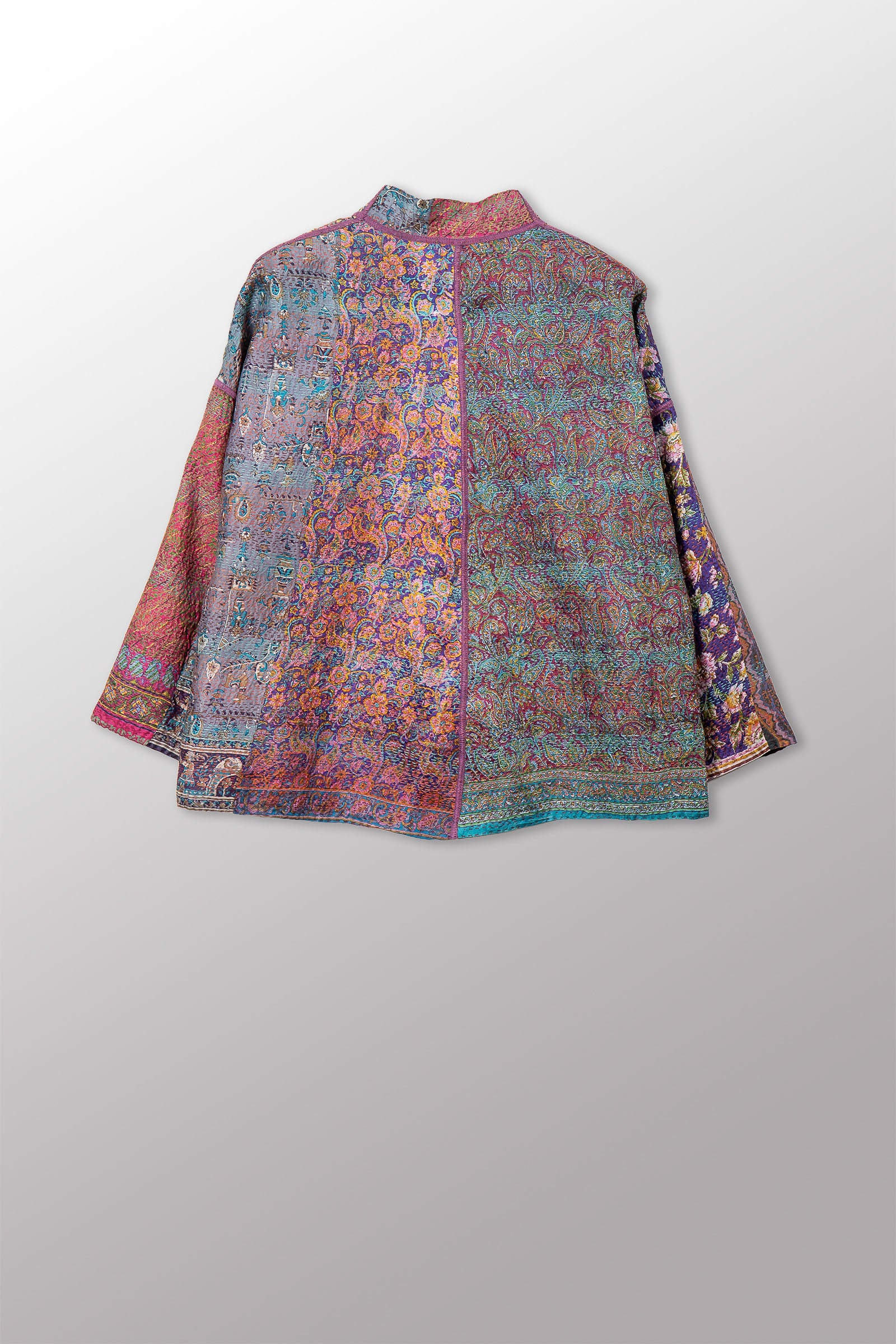 VINTAGE SILK KANTHA STAND COLLAR CROPPED JKT - sv2034-0017a -