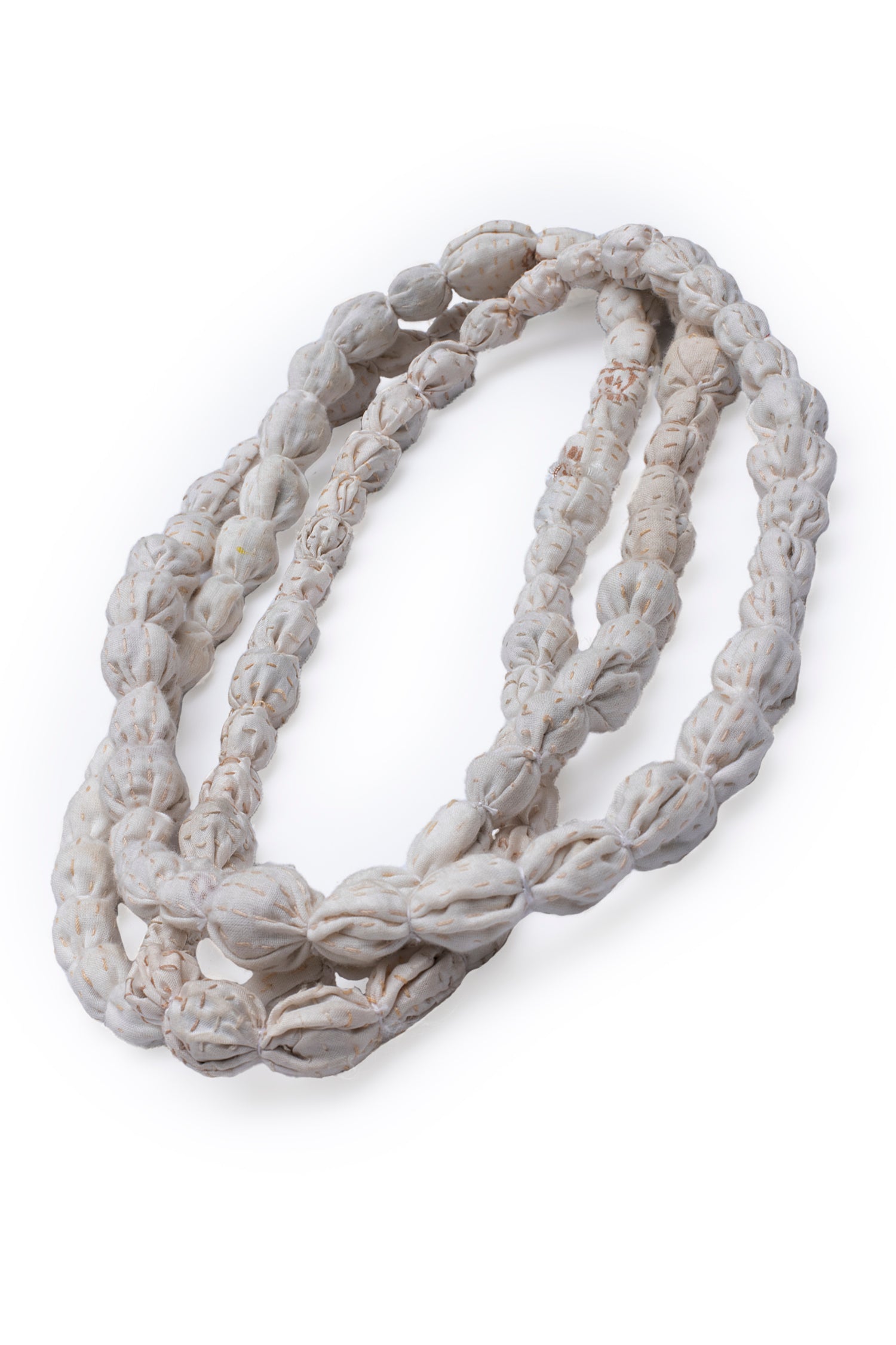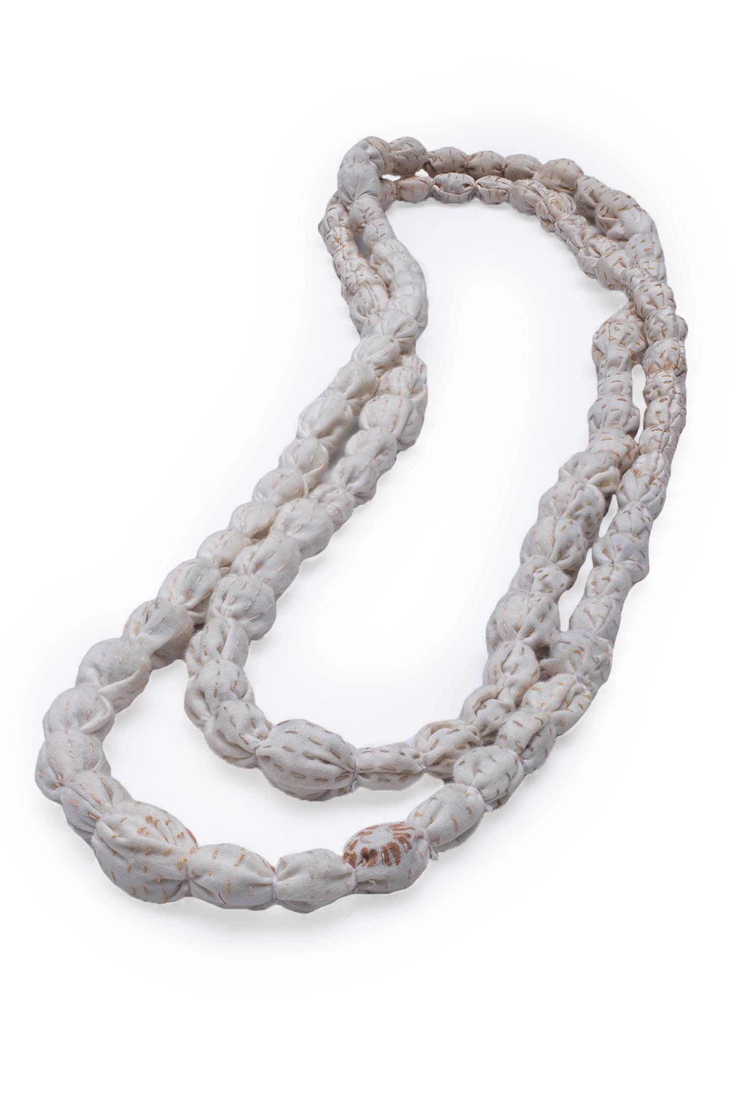 VINTAGE SILK KANTHA TIE-BEADS LONG NECKLACE - sv2707-ivy -