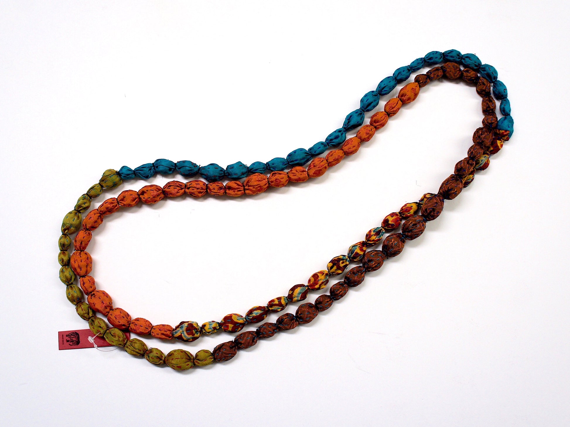 VINTAGE SILK KANTHA TIE-BEADS LONG NECKLACE - sv2707-mor -