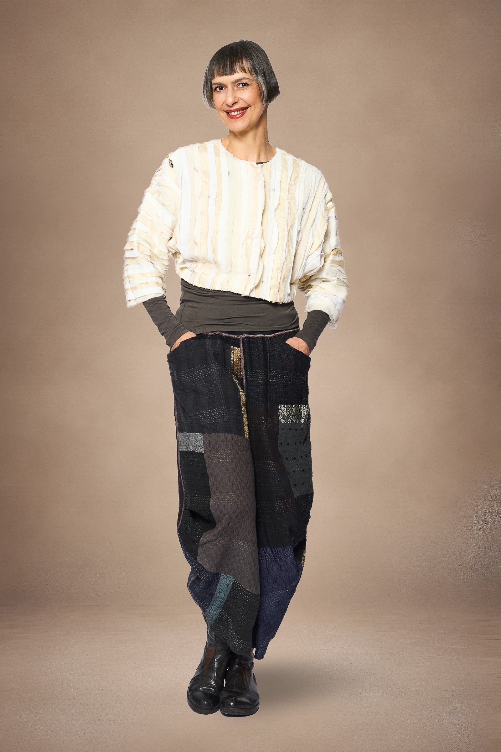 WAVY STRIPE KANTHA DOLMAN SLV. JACKET - wv2j110-ivy -