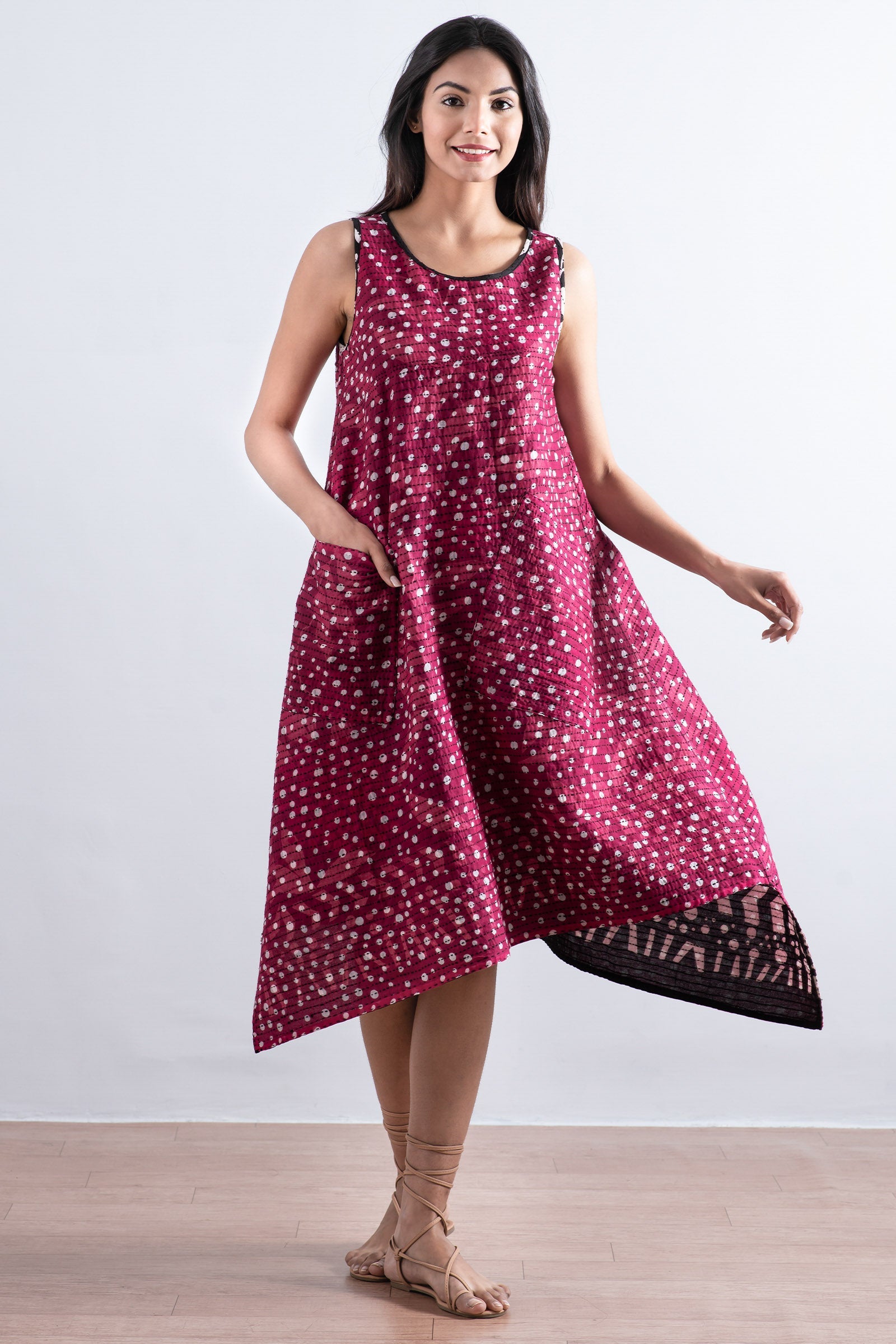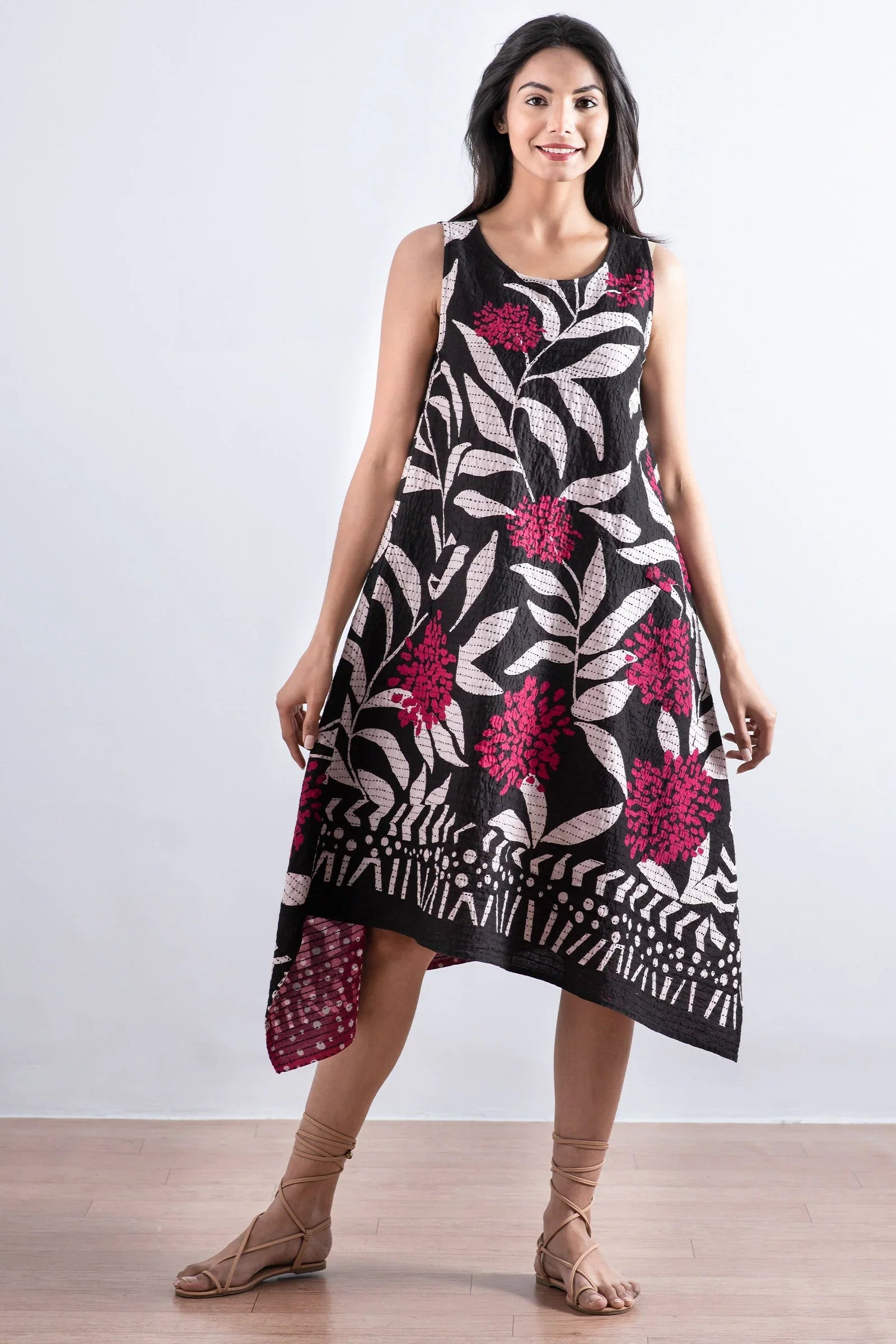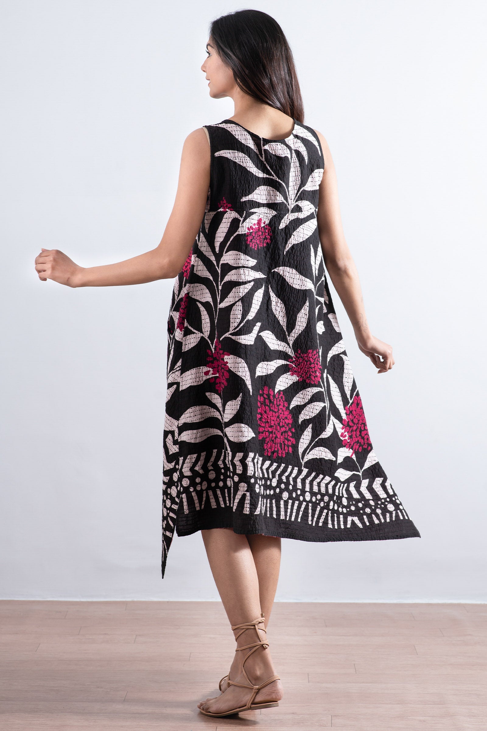 WHITE LEAF BBK KANTHA POINTY HEM DRESS - mb2415-blk -