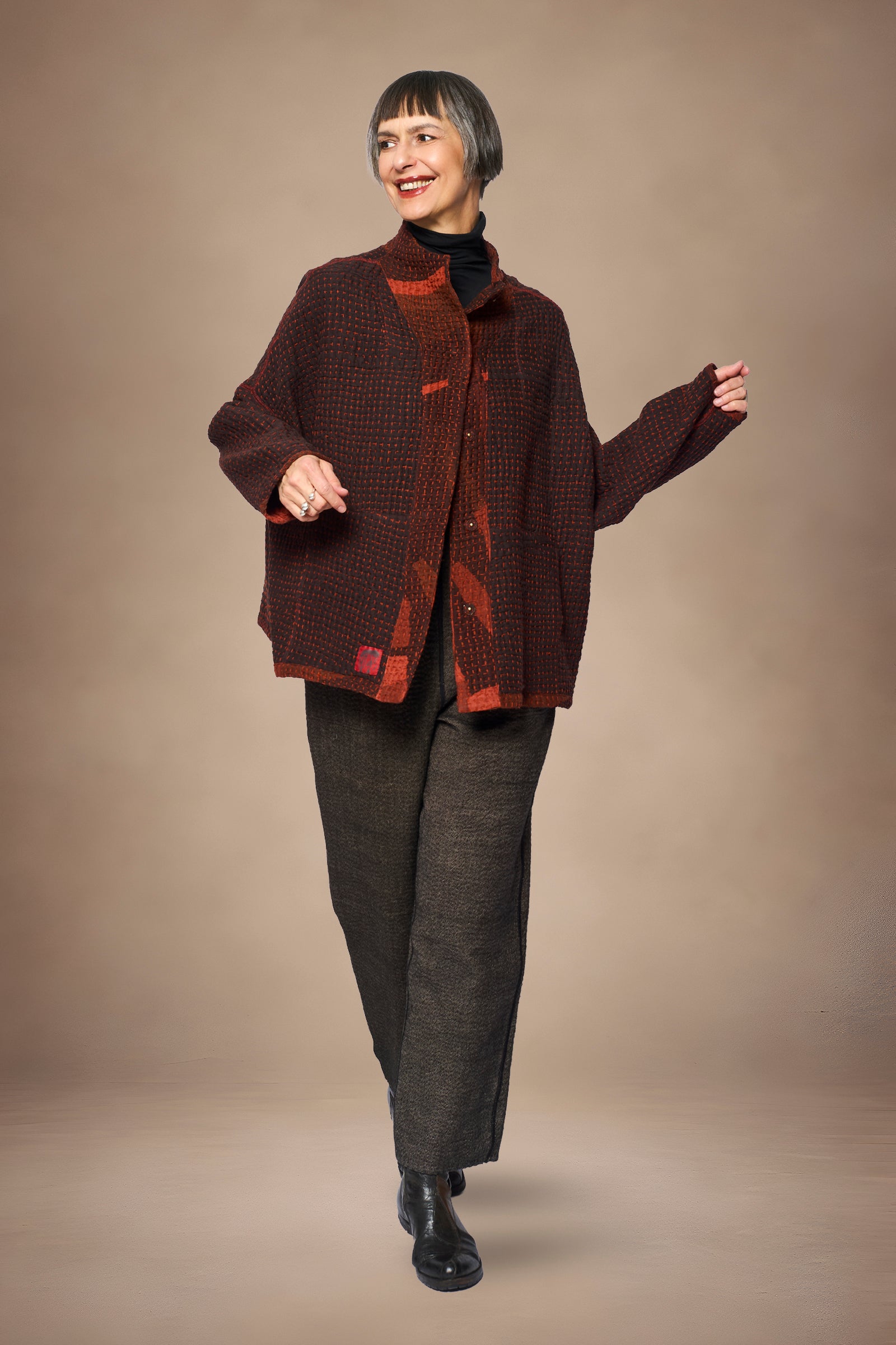 ABSTRACT WAFFLE KANTHA FUNNEL NECK JACKET - bw3j102-org -