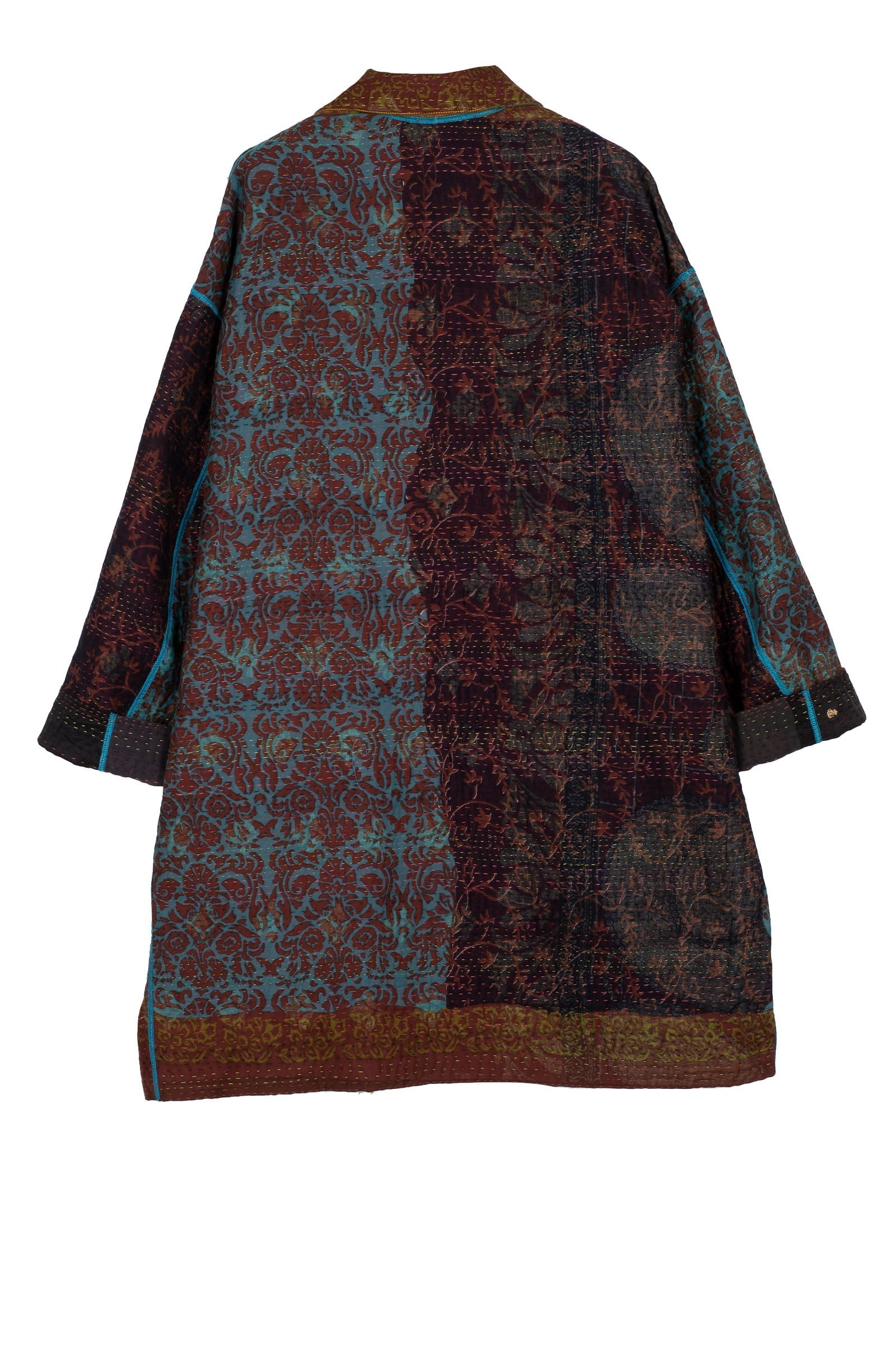 BAGH PRINT KANTHA LONG LINE JKT - bg4059-brn -