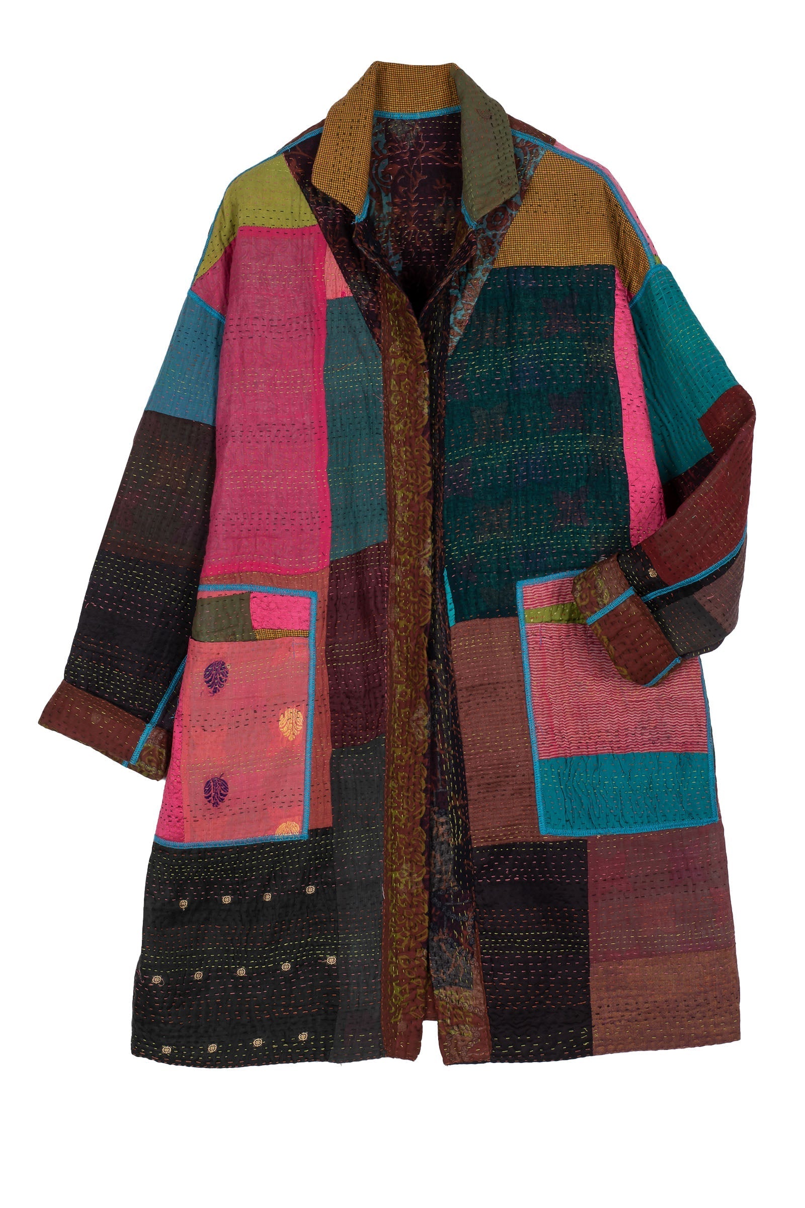 4 Layer Vintage Saris with Hand Stitches on Entire Garment - Reversible