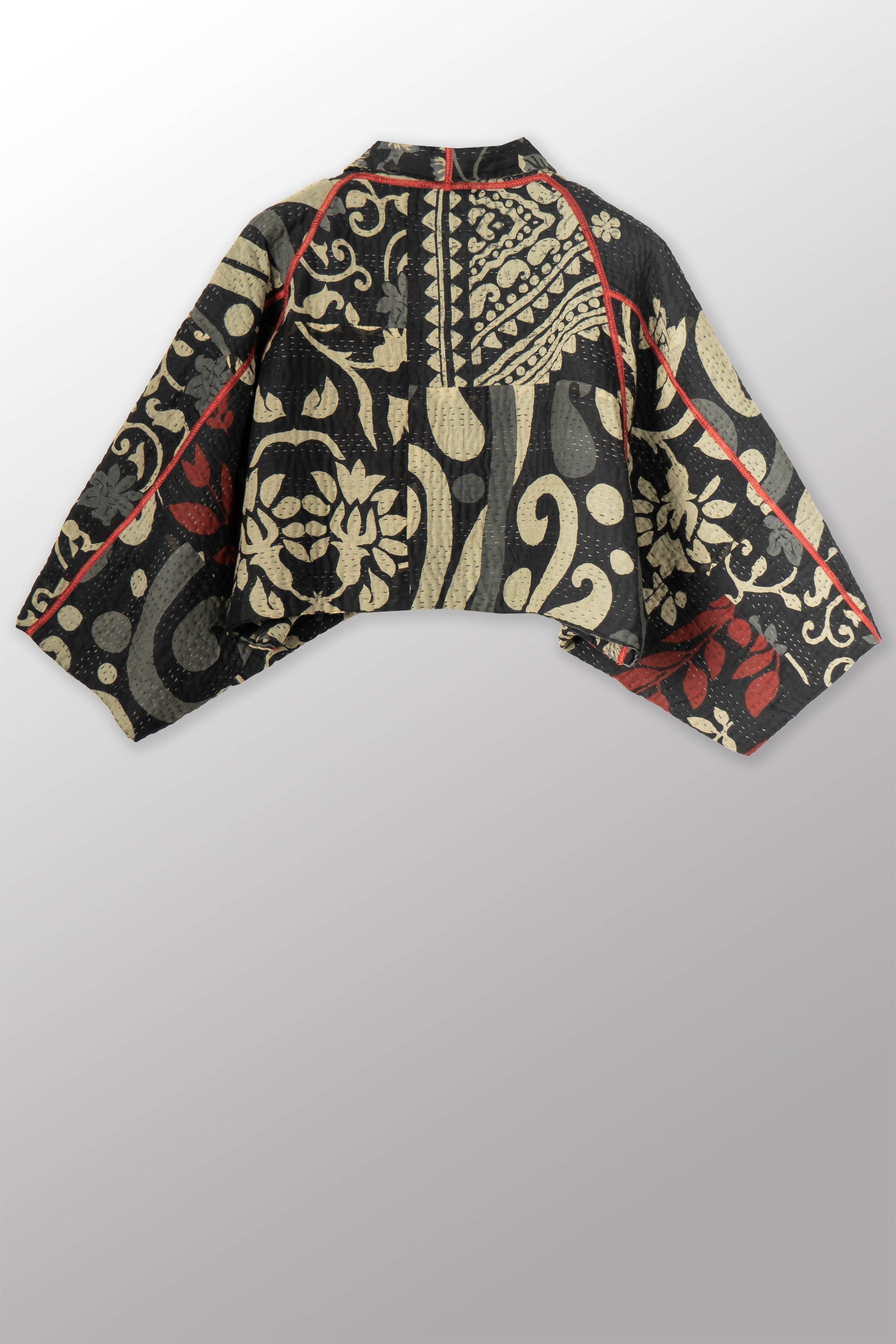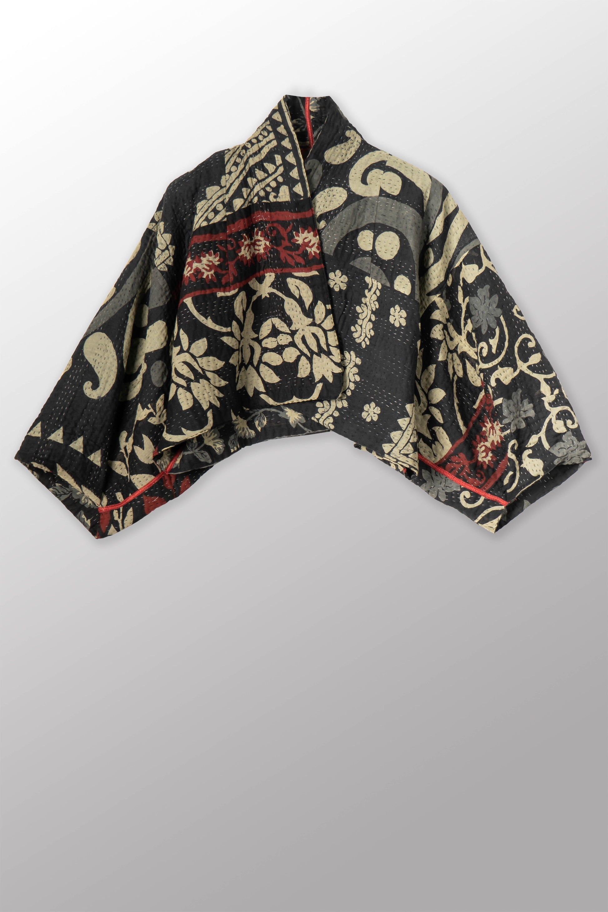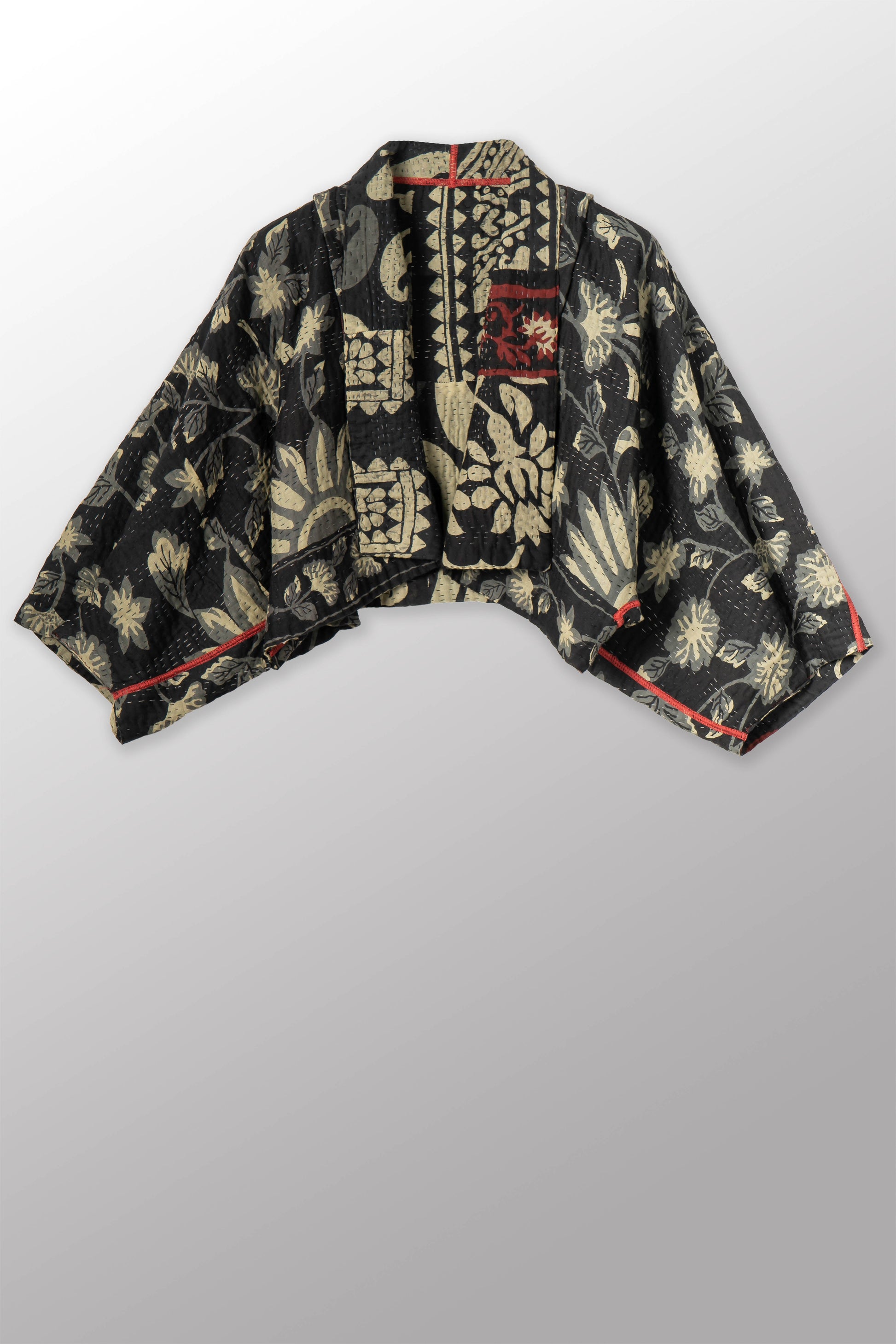BLACK AND WHITE PRINT PATCH KANTHA PUFF SLV. SHRUG - pn4062-red -