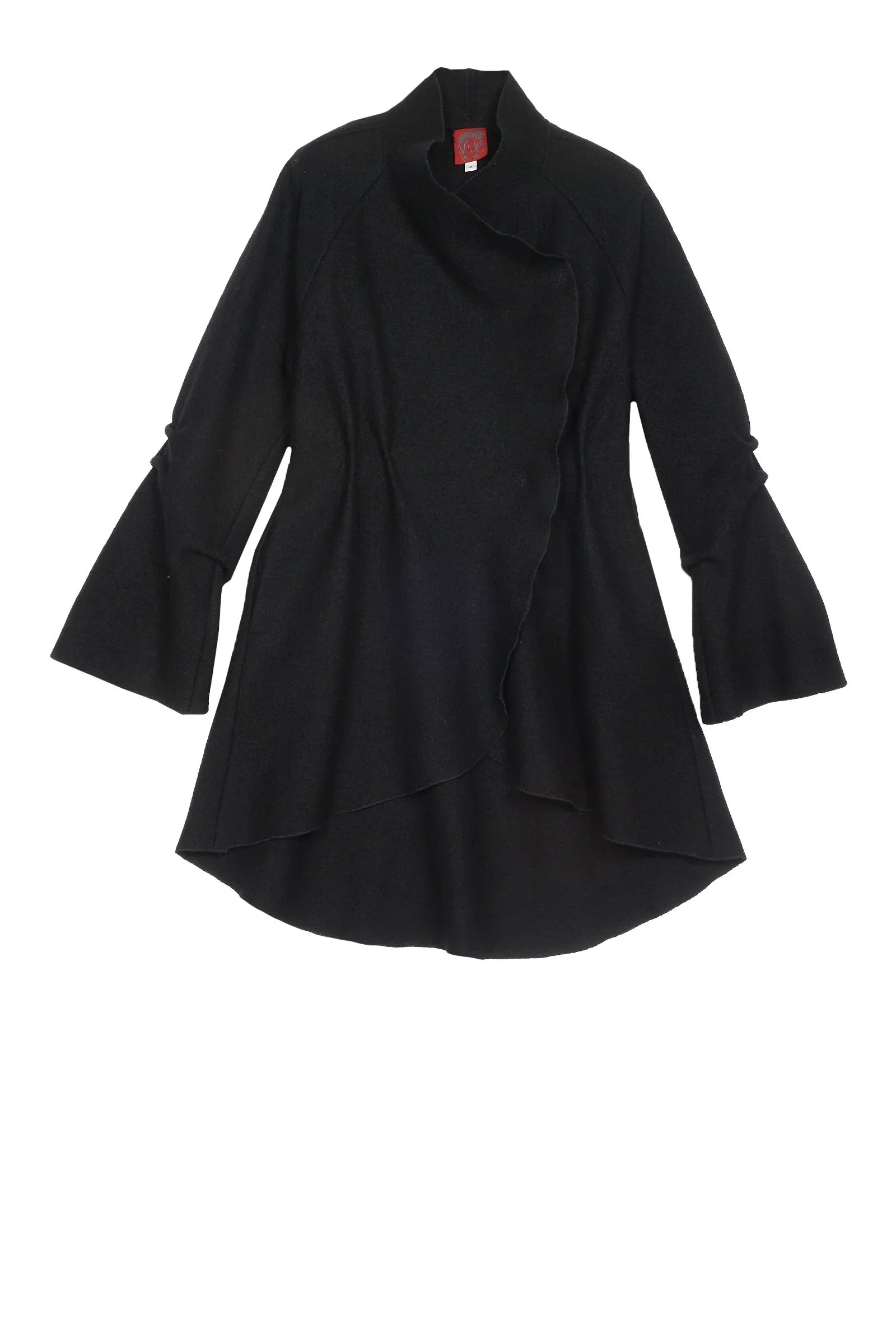 BOILED WOOL TUCKED MEDIUM COAT - wb1315-blk -