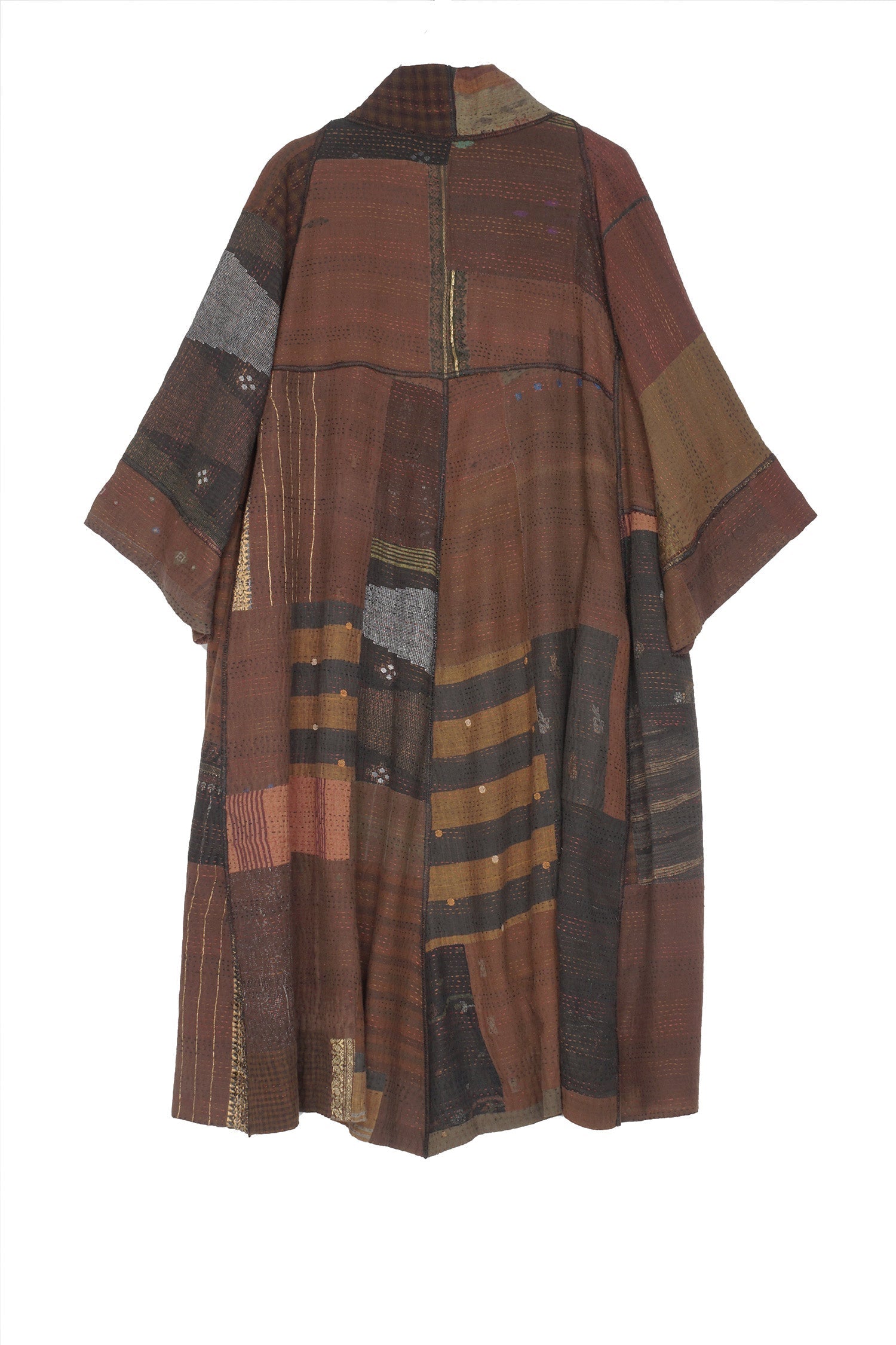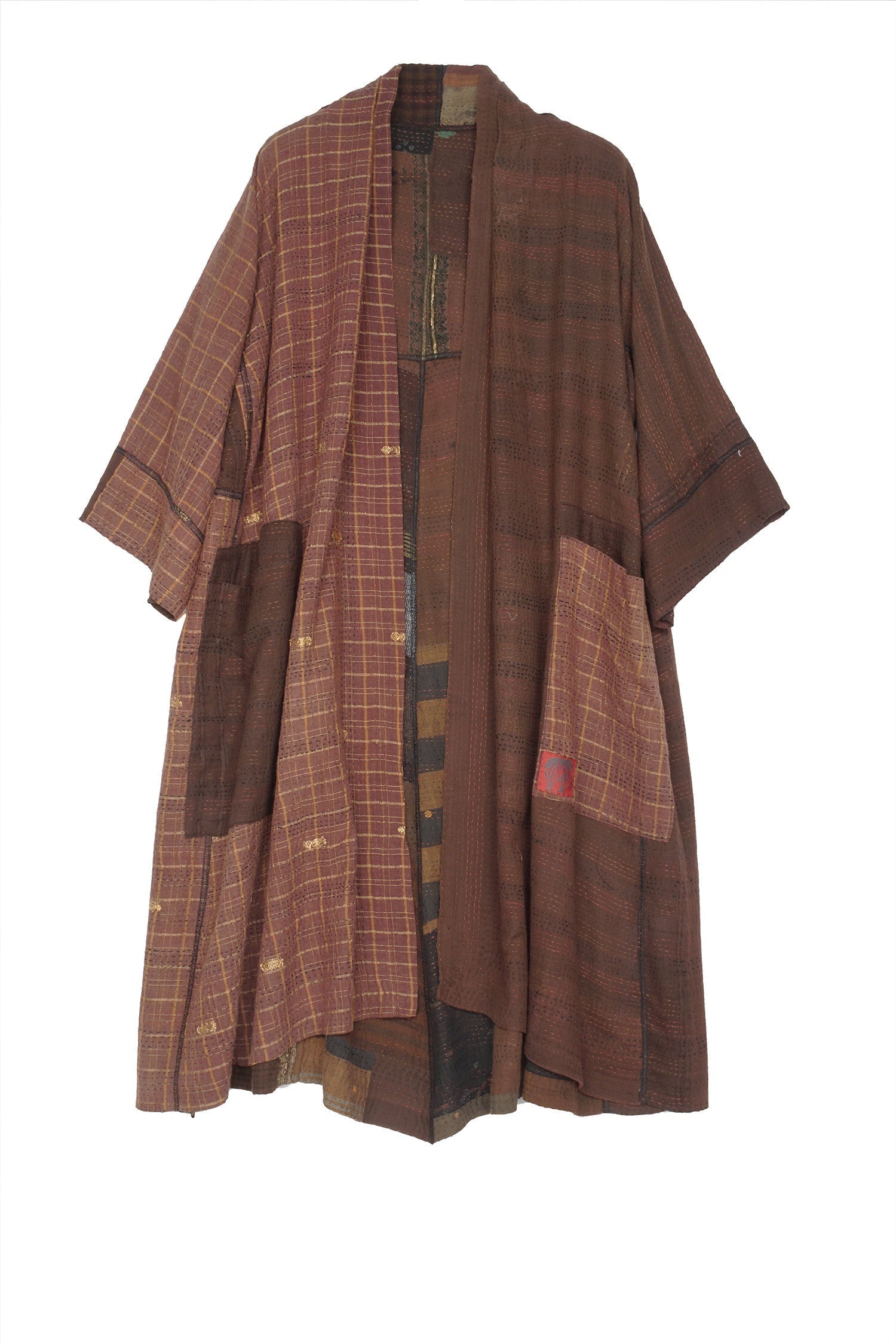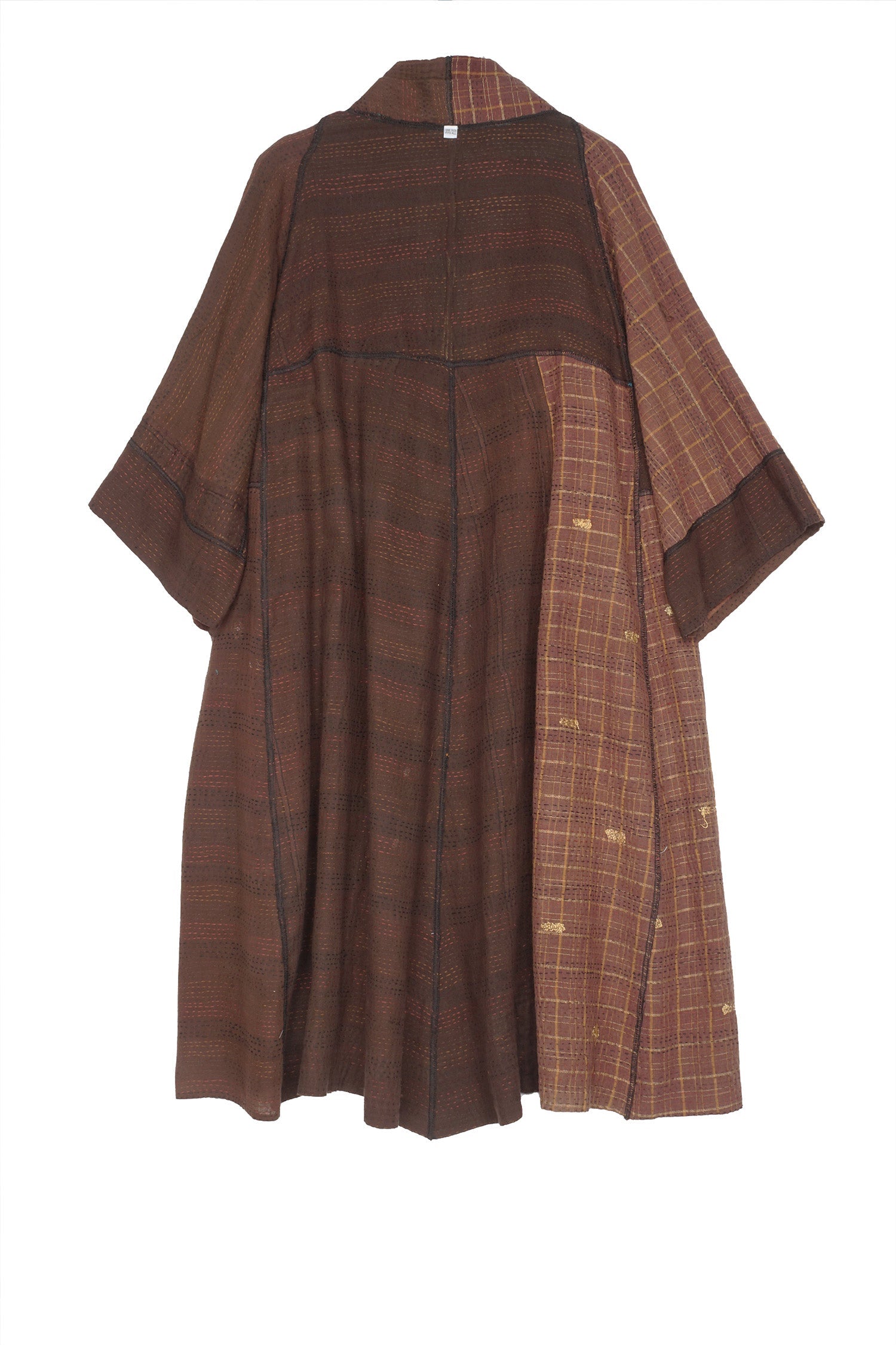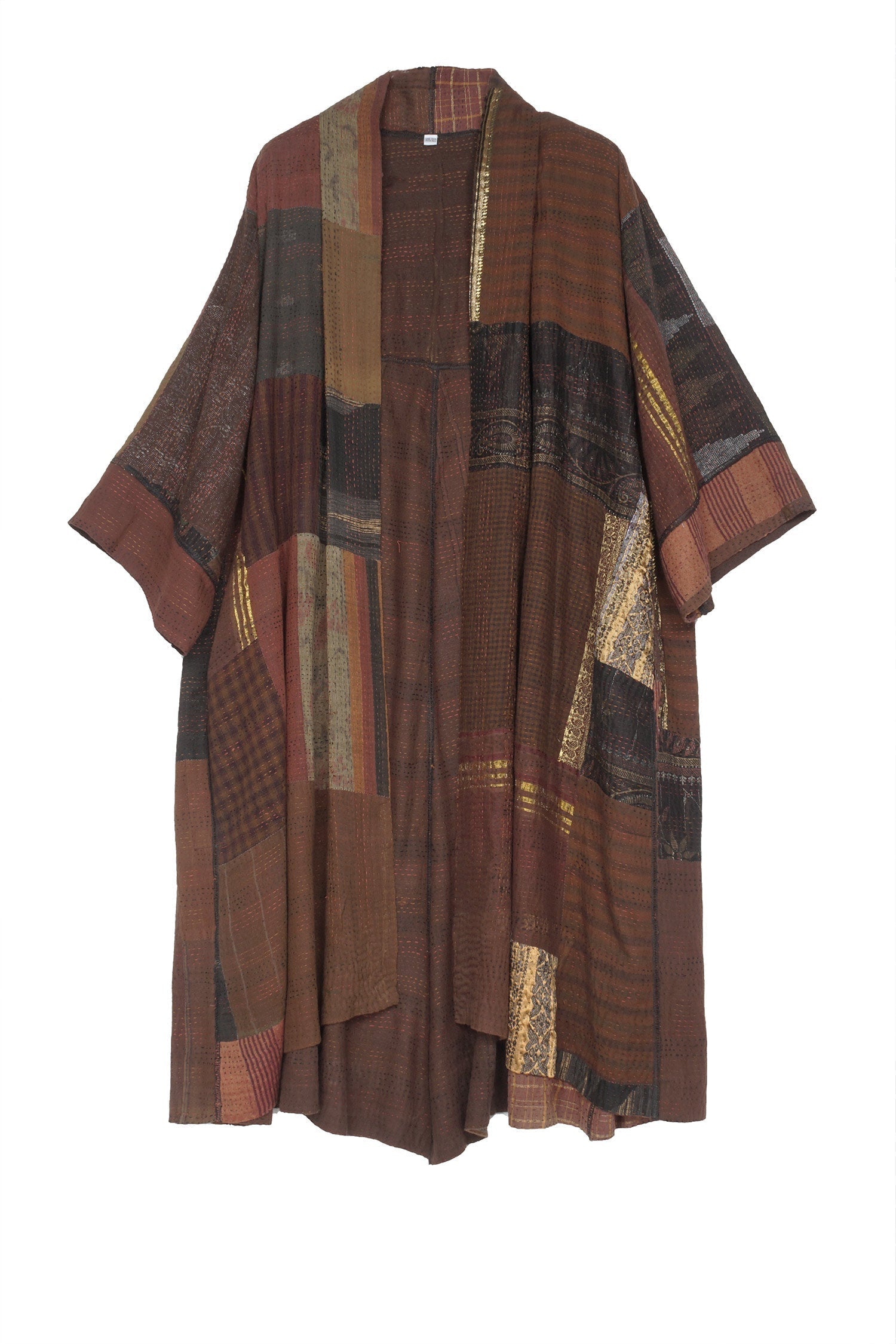 BROCADE PATCHED KANTHA 3/4 SLV. A-LINE DUSTER - bp2324-brn -