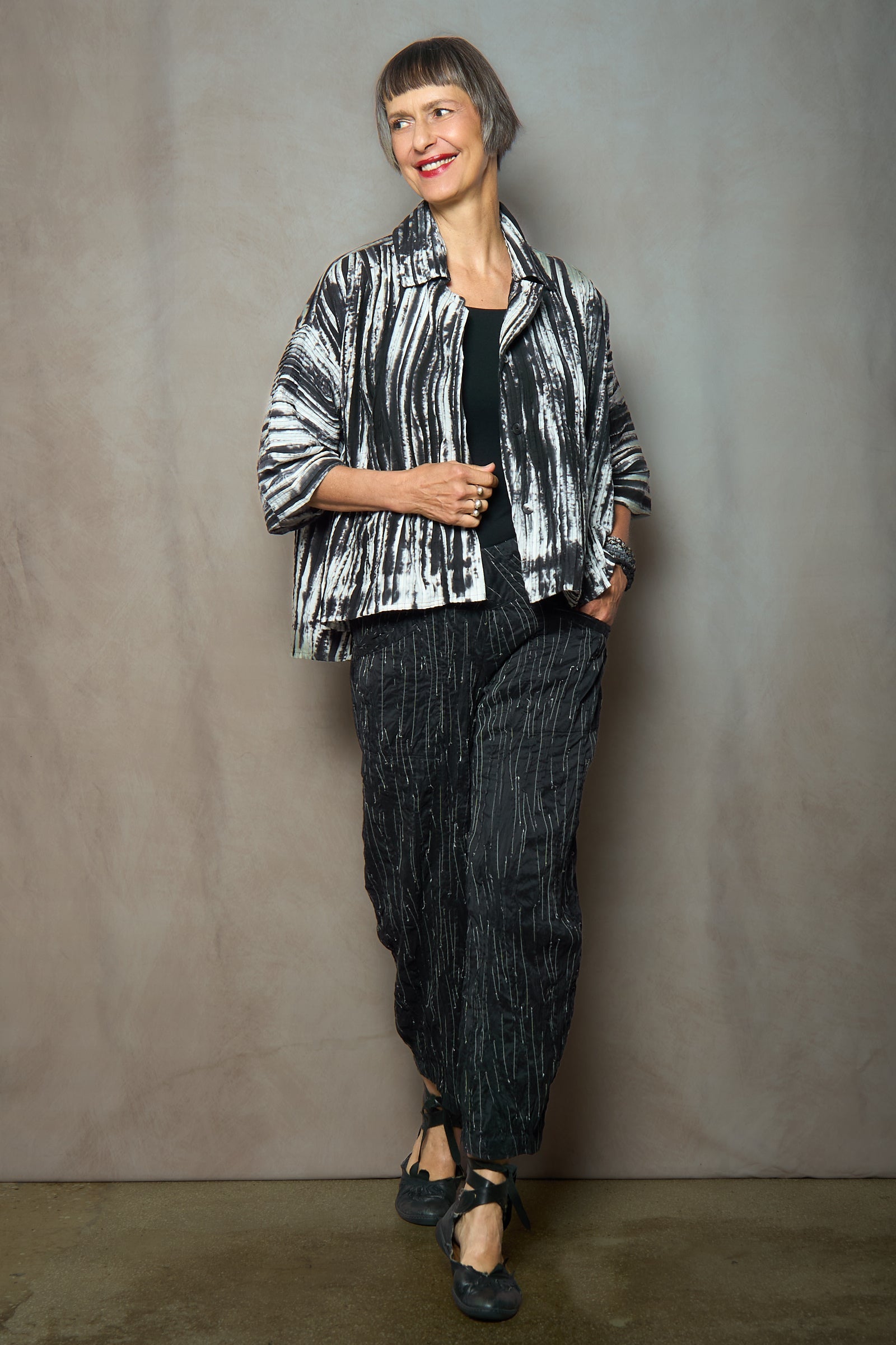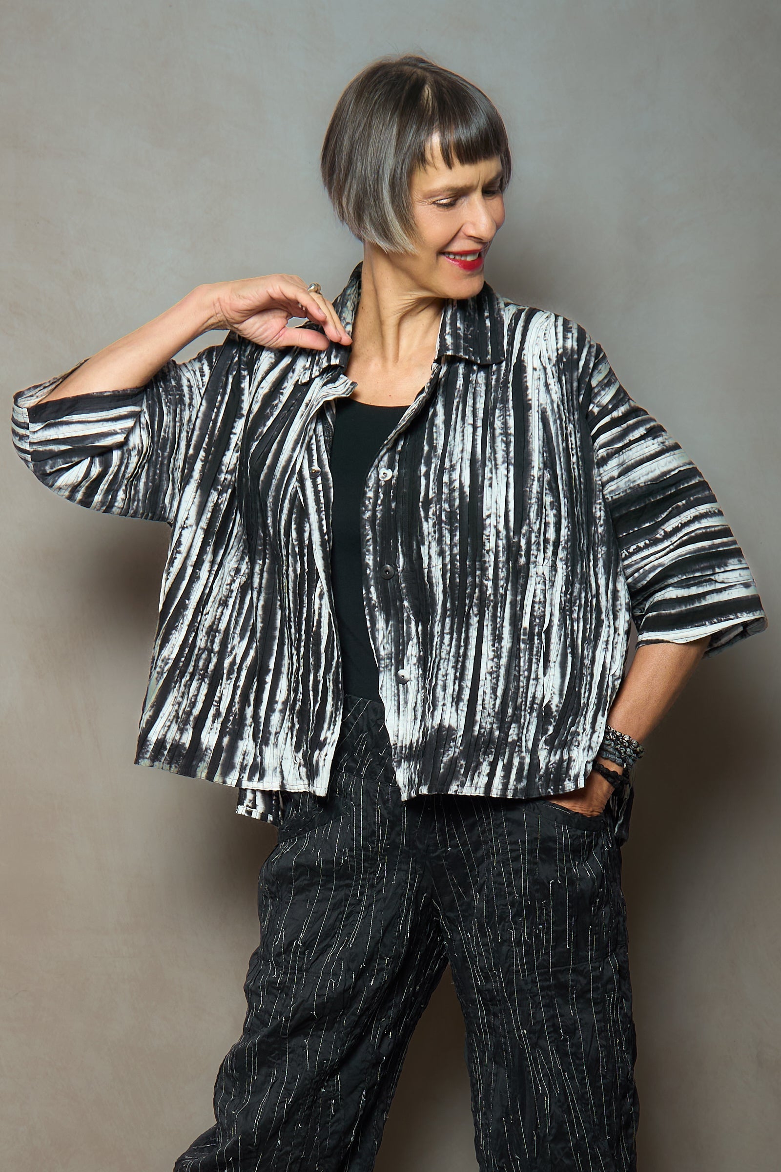 CAMBRIC TIE DYE RIPPLE TUCK HALF SLV. CROPPED JACKET - tr1j104-blk -