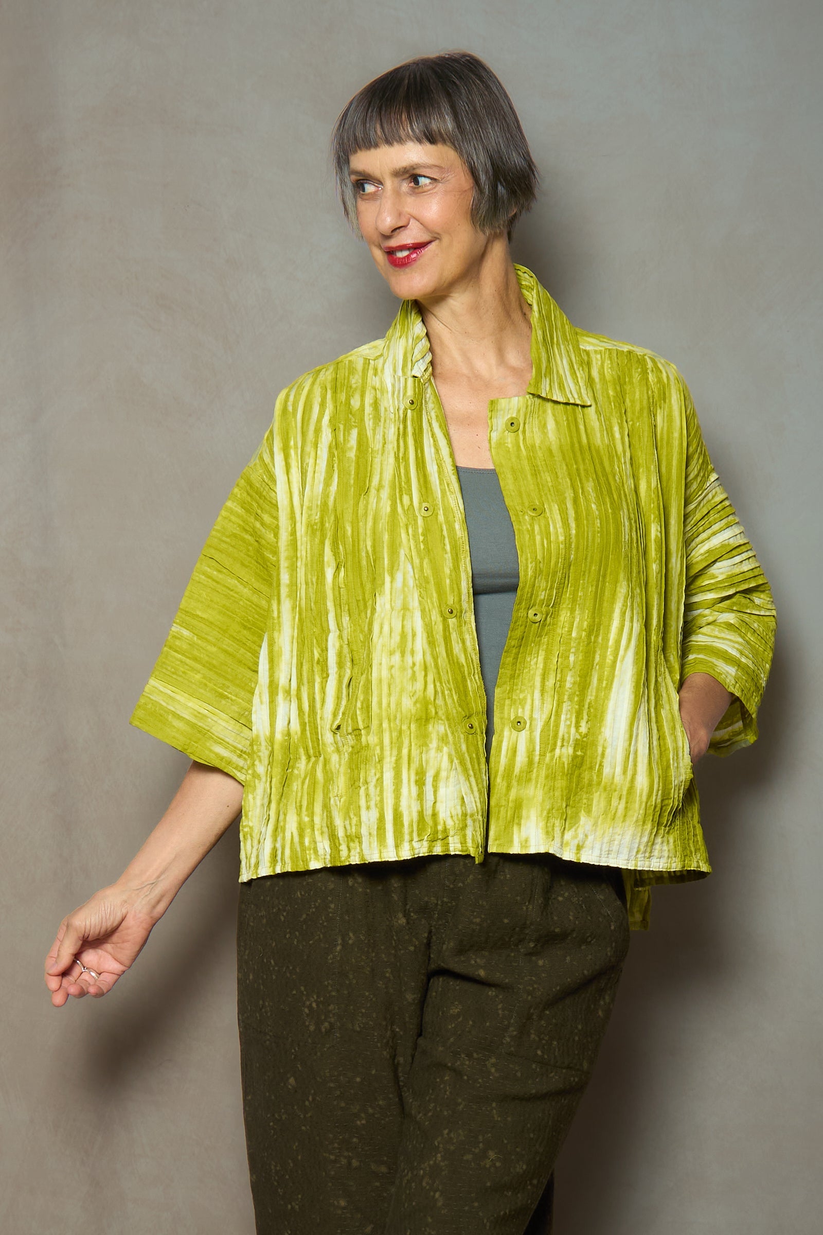 CAMBRIC TIE DYE RIPPLE TUCK HALF SLV. CROPPED JACKET - tr1j104-lim -