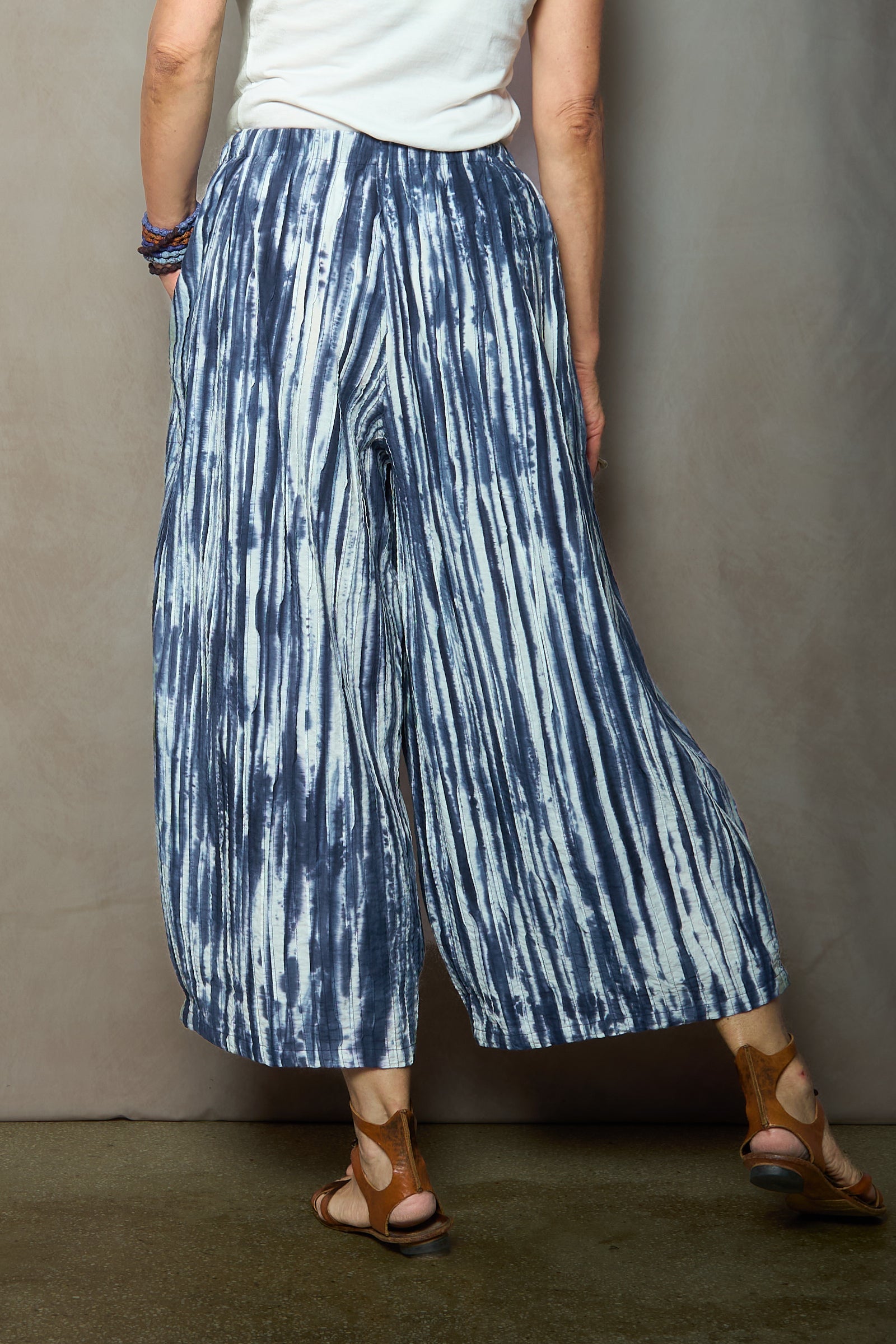 CAMBRIC TIE DYE RIPPLE TUCK WIDE LEG LANTERN PANTS - tr1646-nvy -