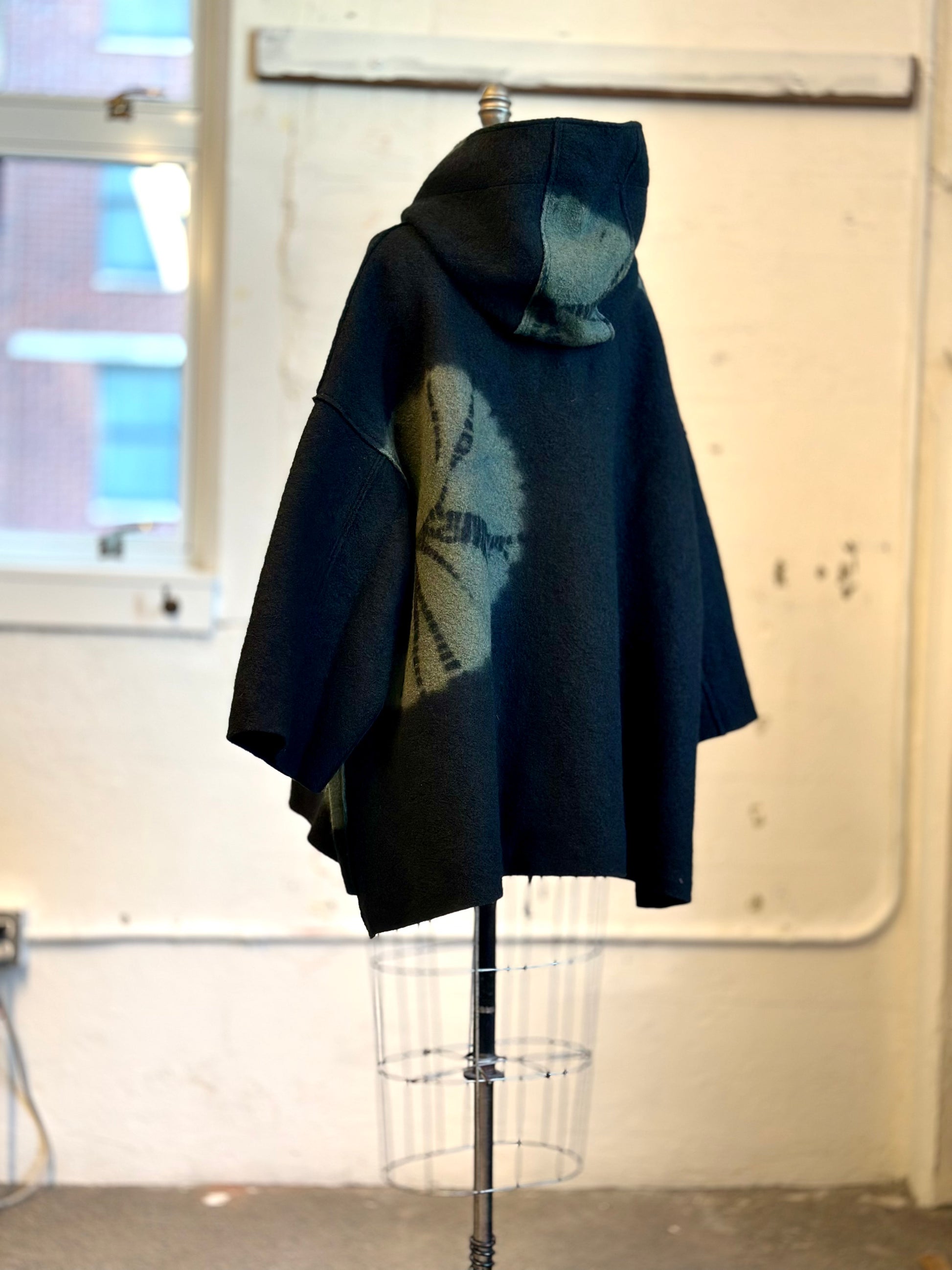 CIRCLE TIE DYE BOILED WOOL NEW HOODIE PONCHO - tw1359-blk -
