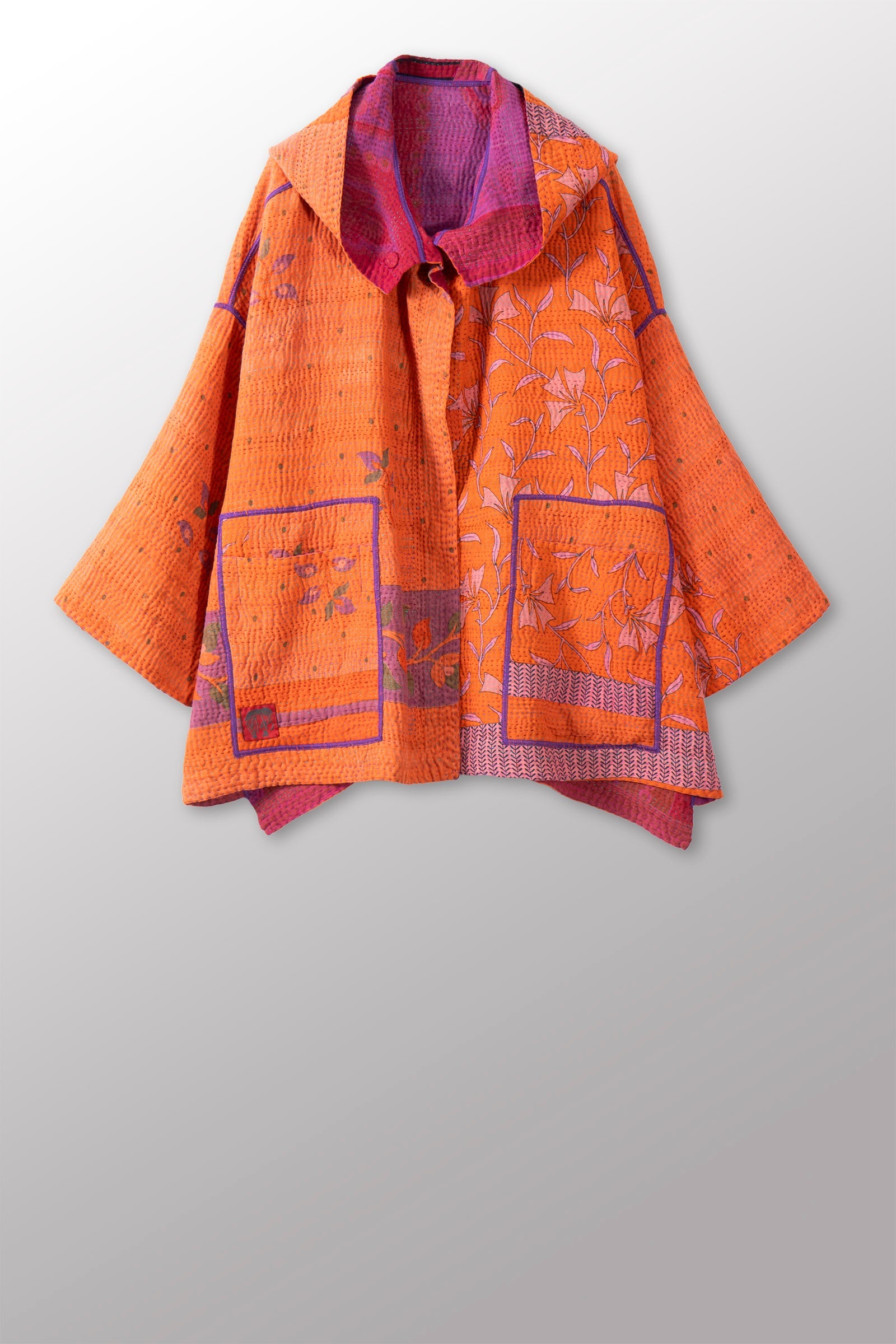 COTTON OVERDYE KANTHA HOODIE PONCHO - ov4064-cfus010a -