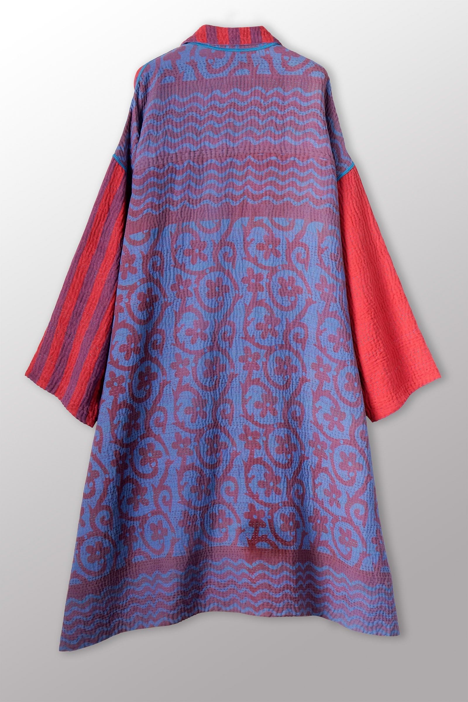COTTON OVERDYE KANTHA NEW OVERSIZED COAT - ov4342-cblu001a -