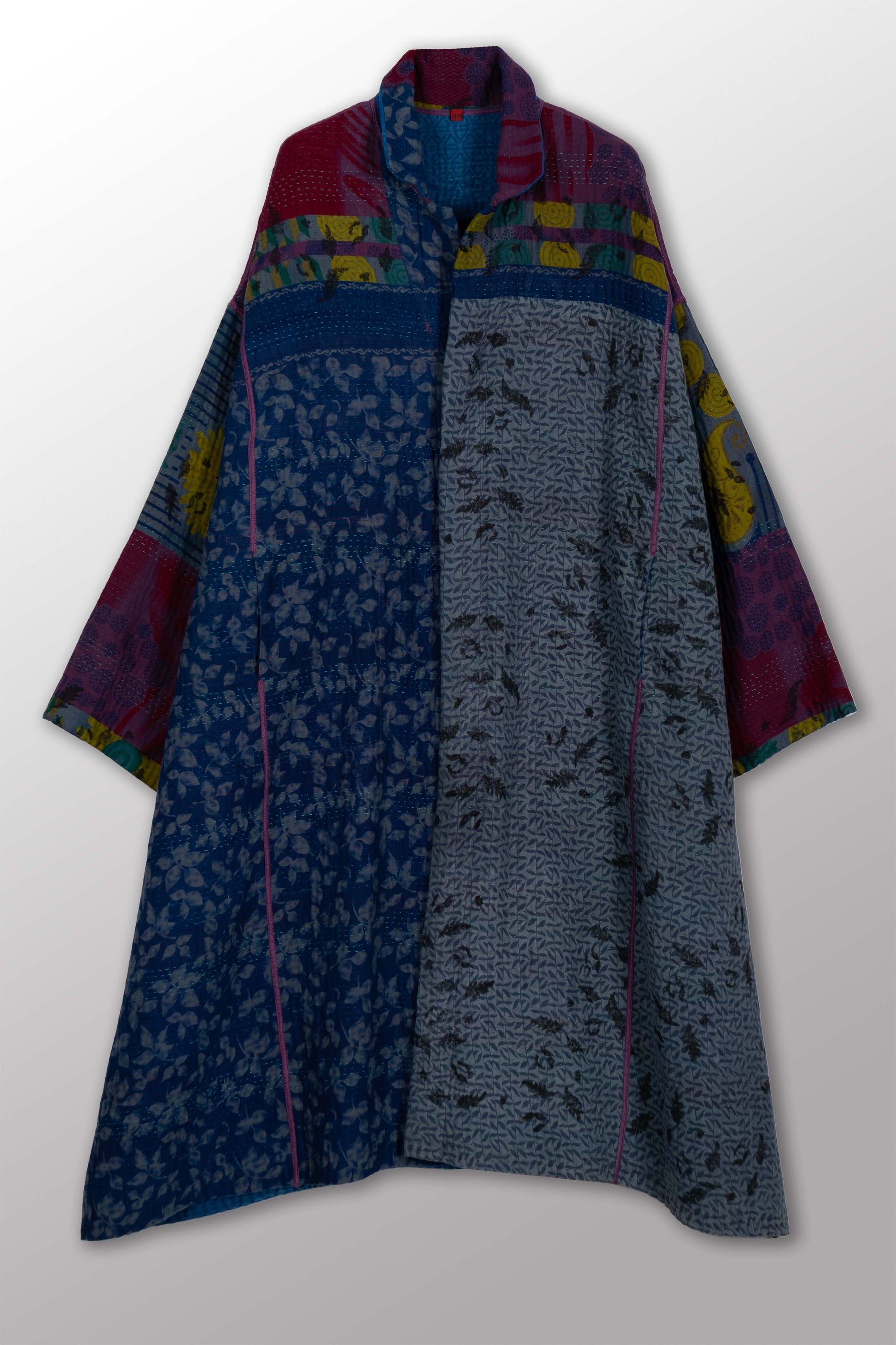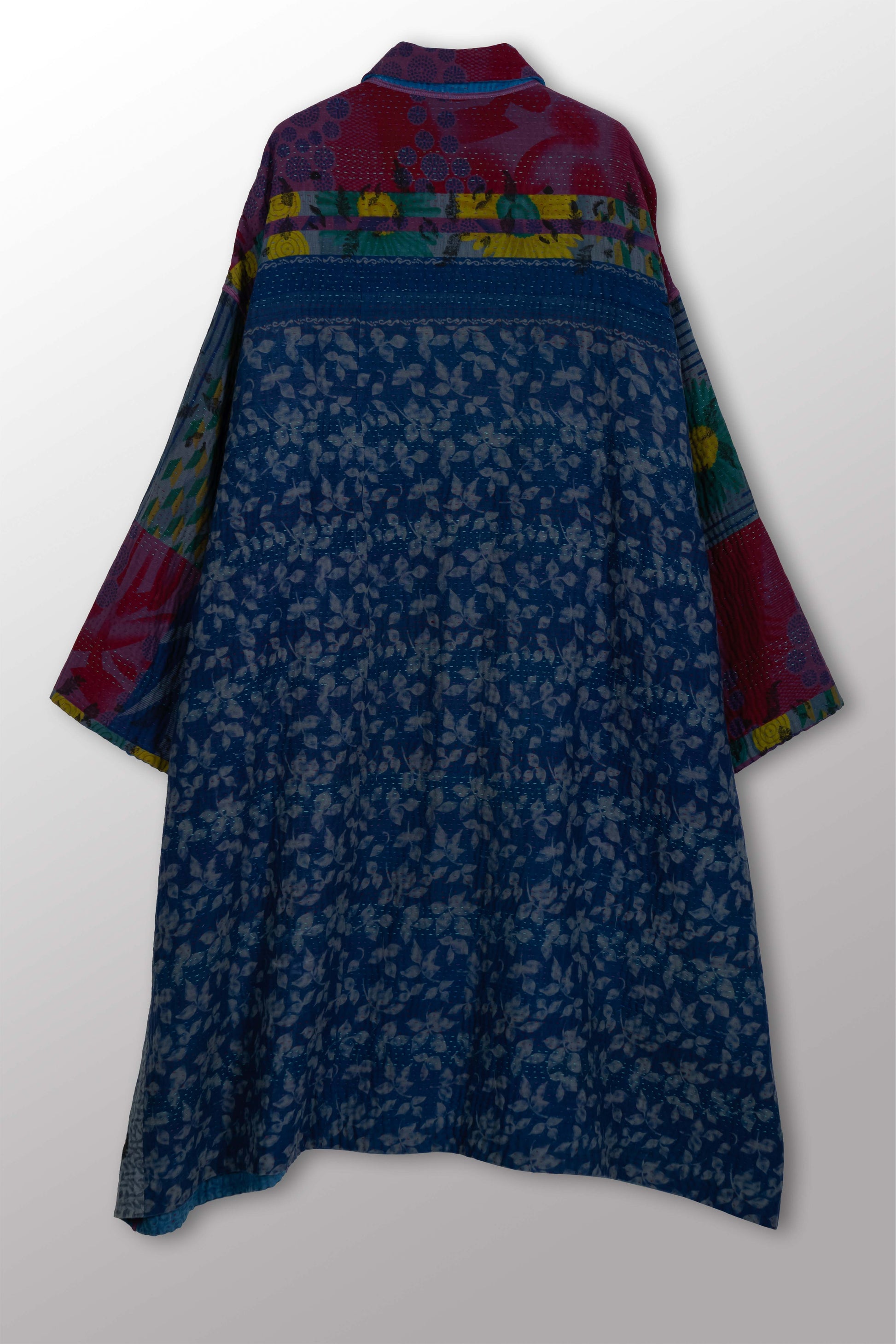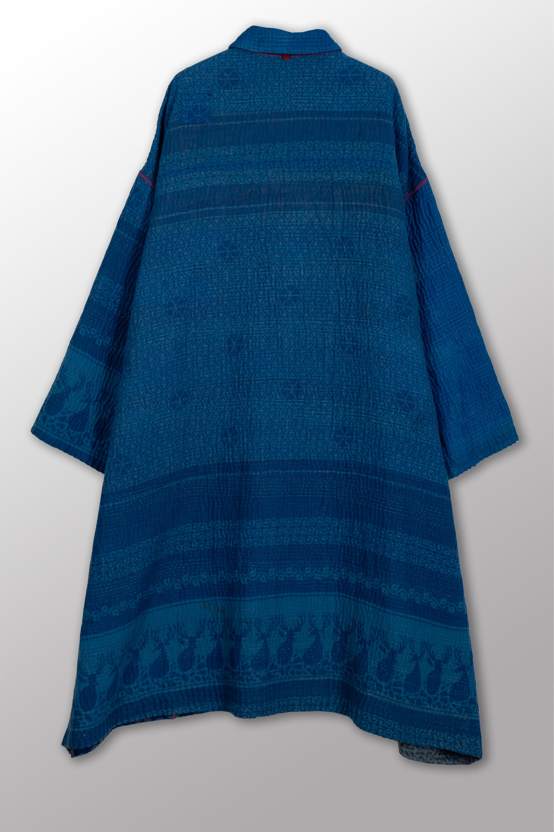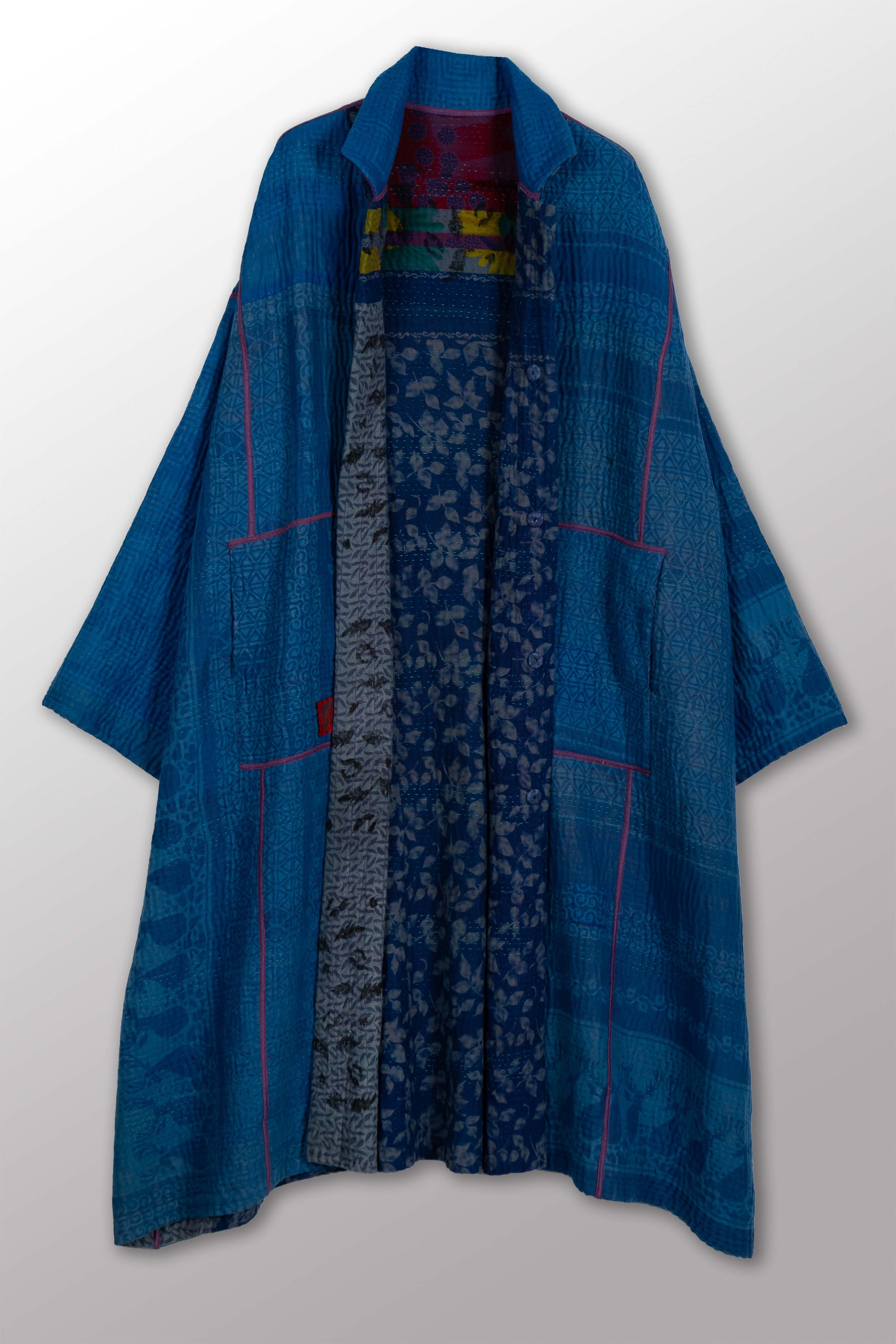 COTTON OVERDYE KANTHA NEW OVERSIZED COAT - ov4342-cblu002a -