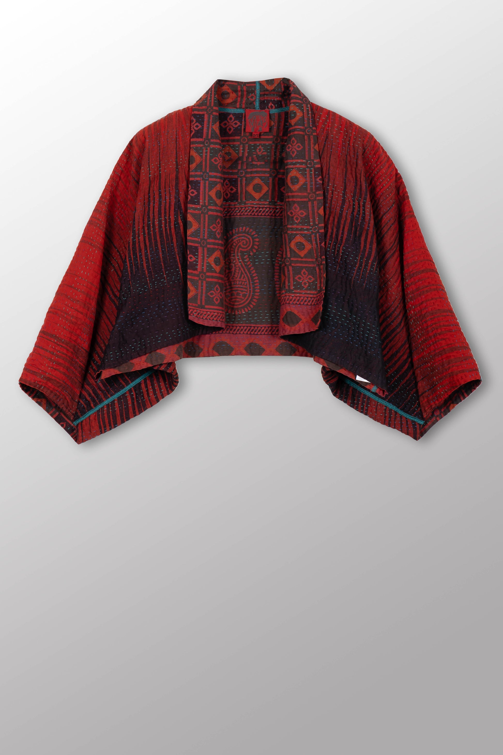 COTTON OVERDYE KANTHA PUFF SLV. SHRUG - ov4062-cred008a -