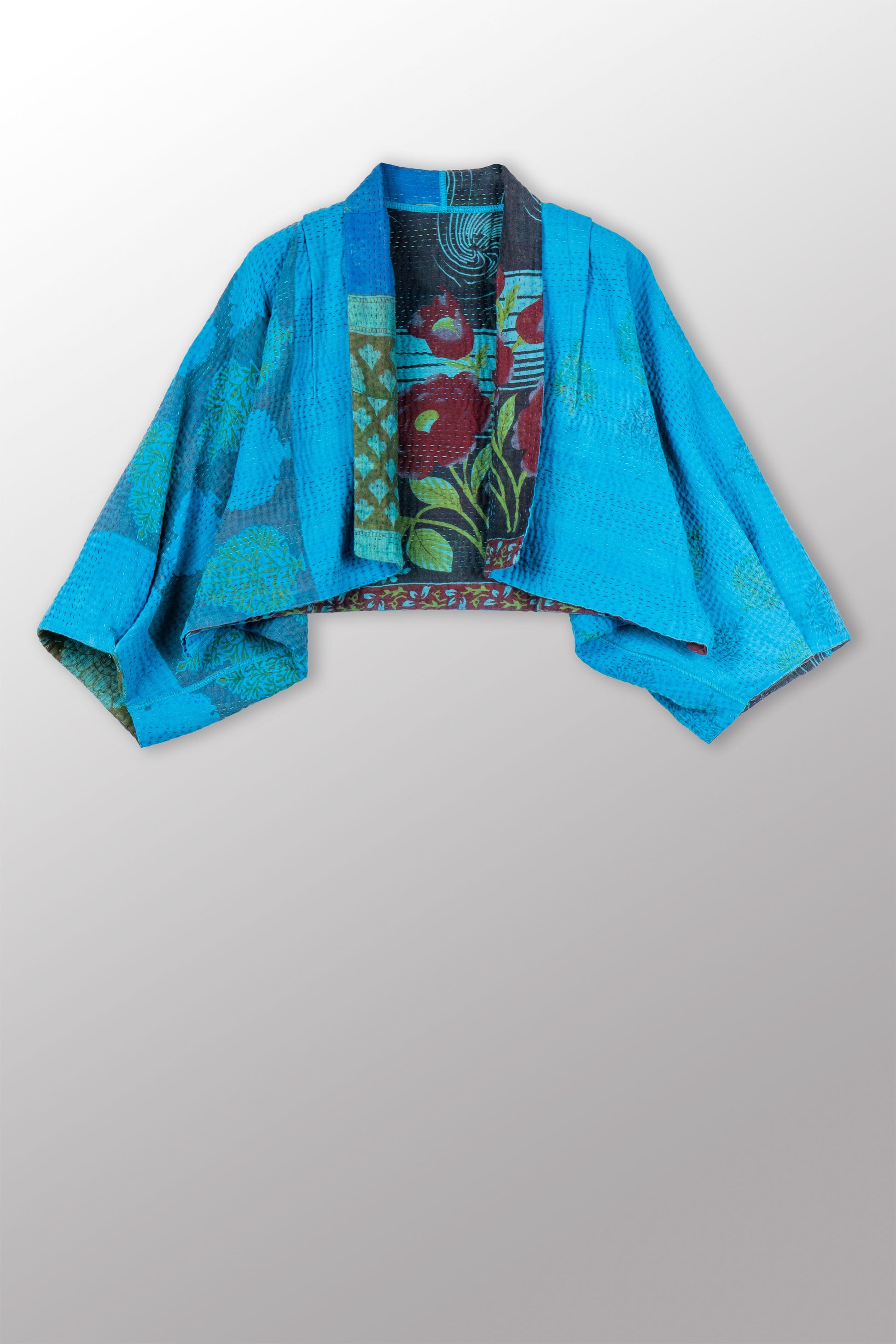 4 Layer Vintage Saris with Hand Stitches on Entire Garment - Reversible