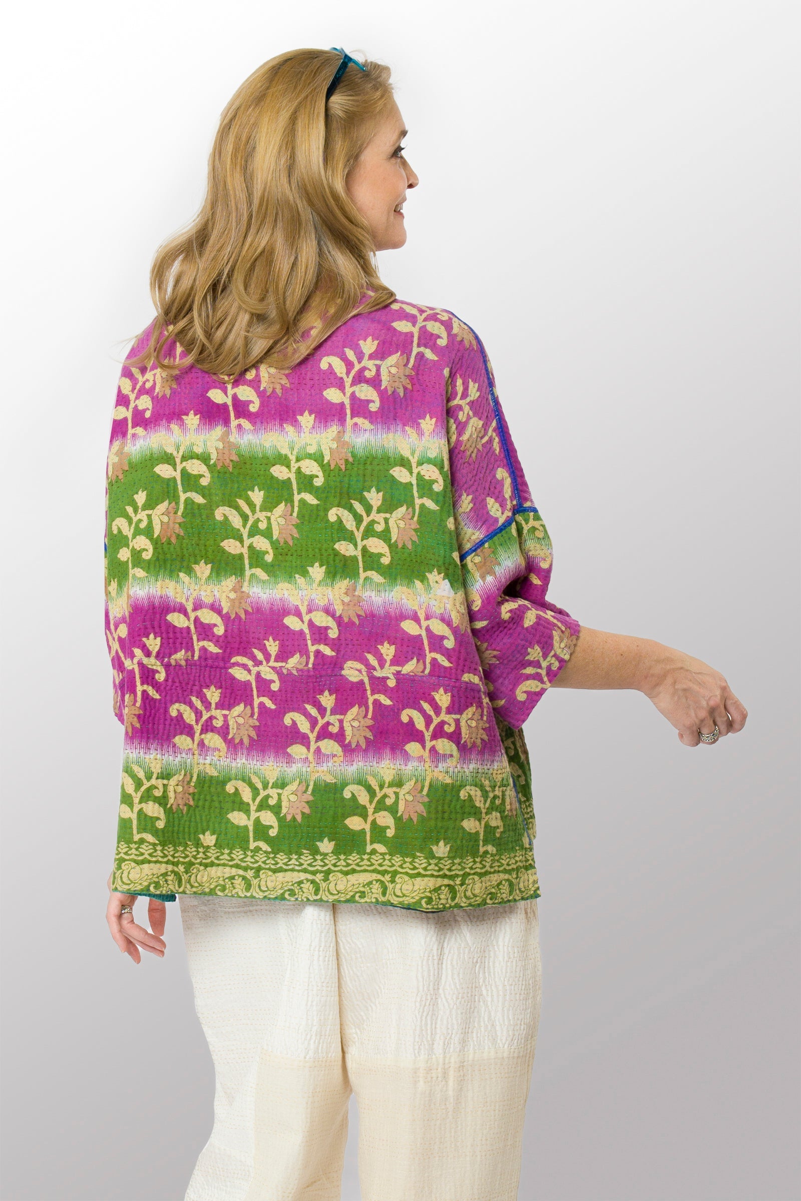 COTTON OVERDYE KANTHA STRAIGHT NECK JACKET - ov4058-ctuq001a -
