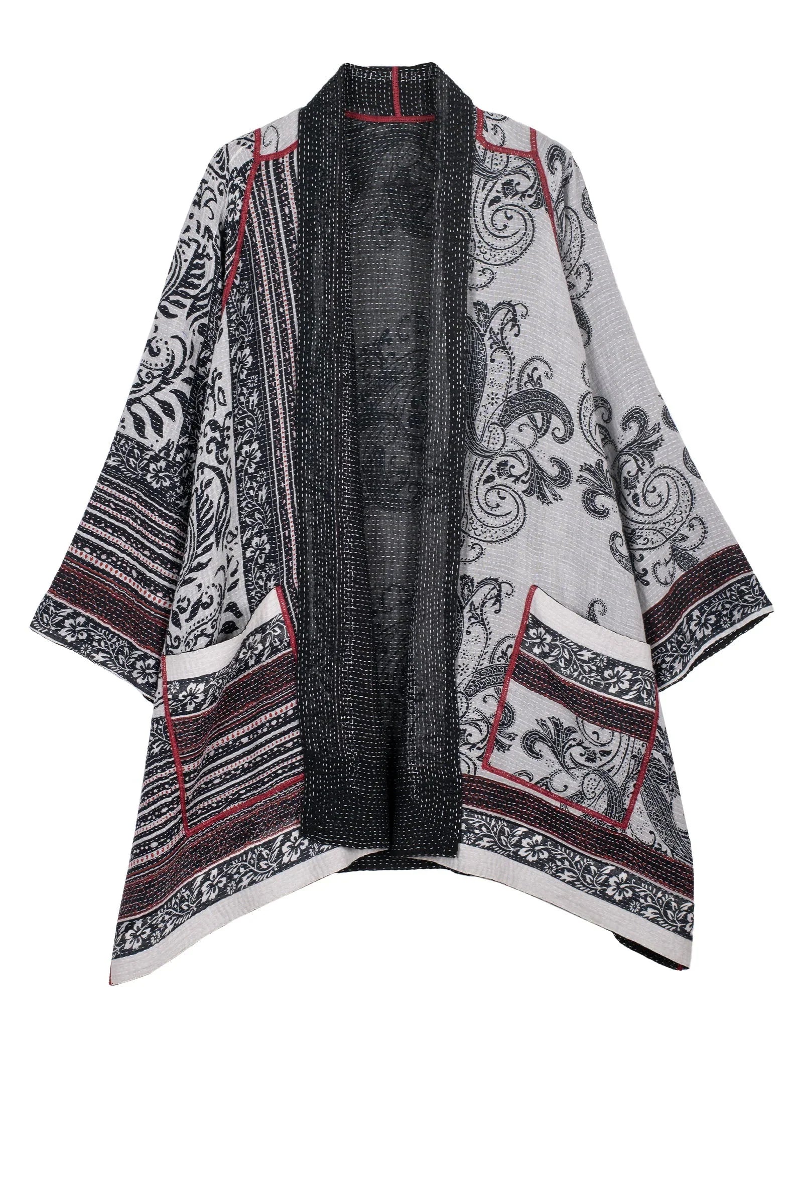 COTTON PAISLEY KANTHA A-LINE JKT - cp2003-wht -