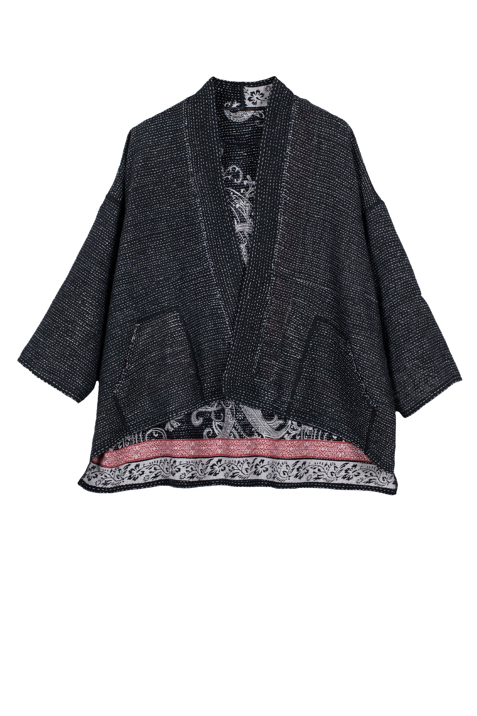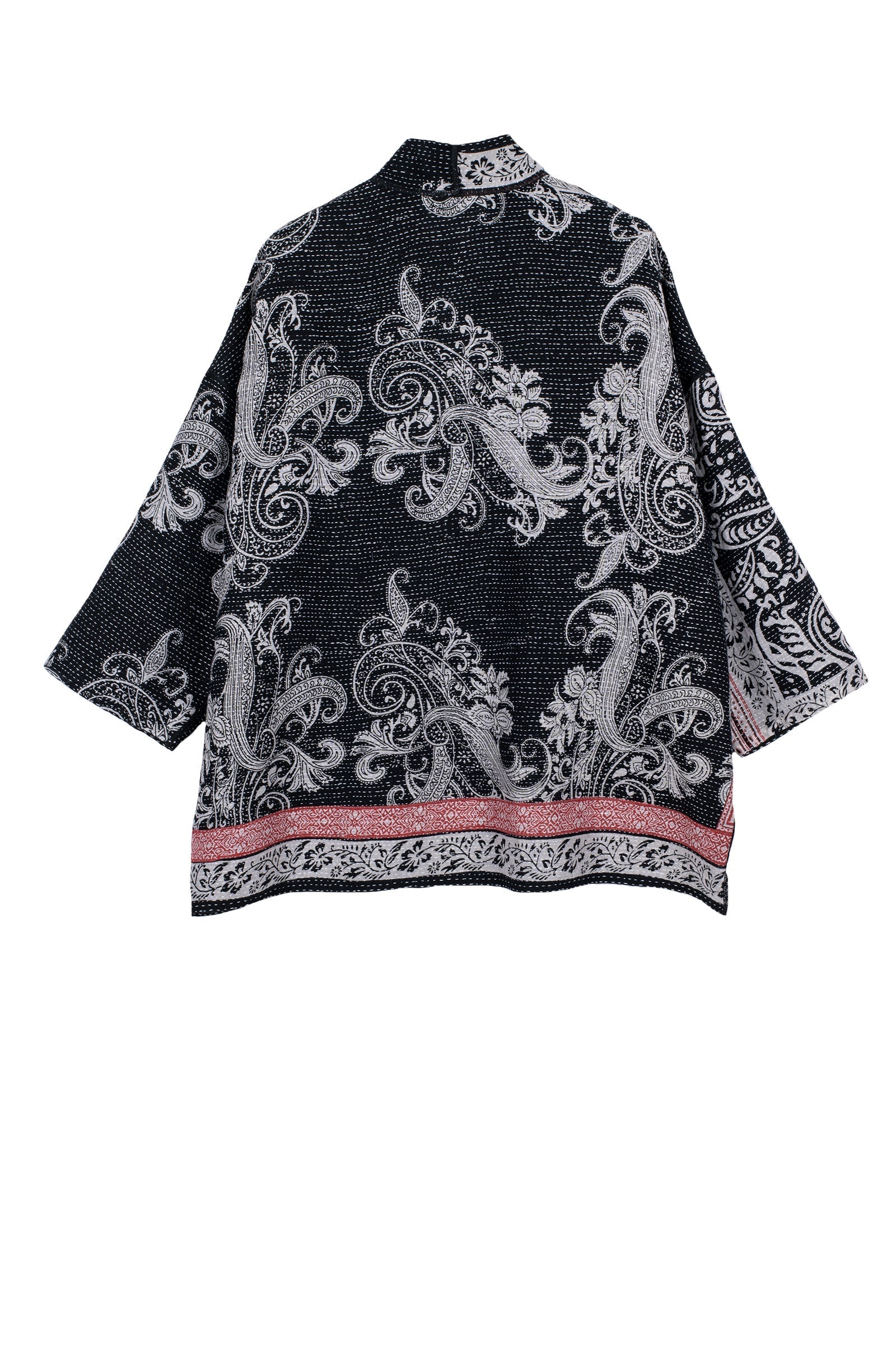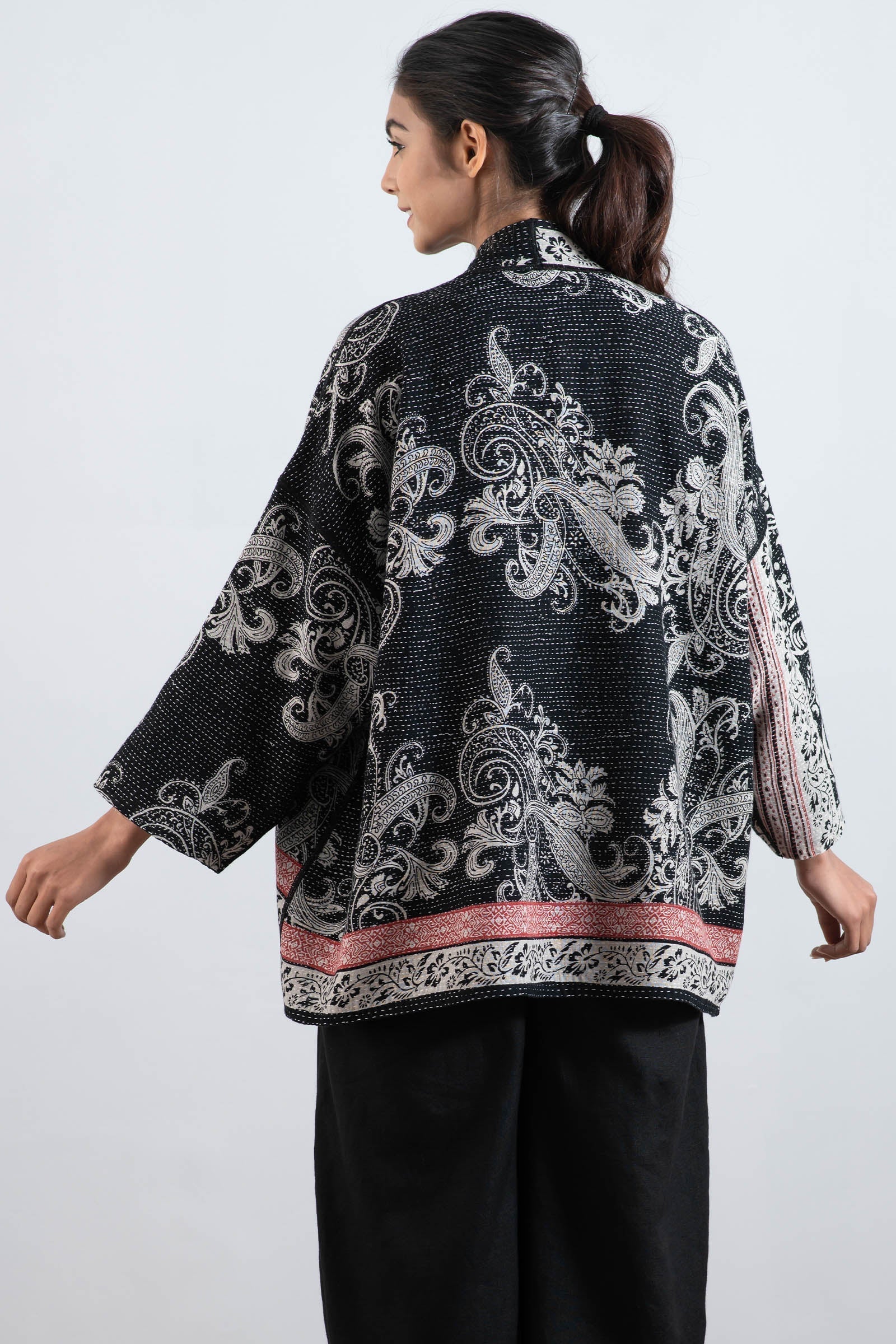 COTTON PAISLEY KANTHA MINI KIMONO JKT - cp2055-blk -