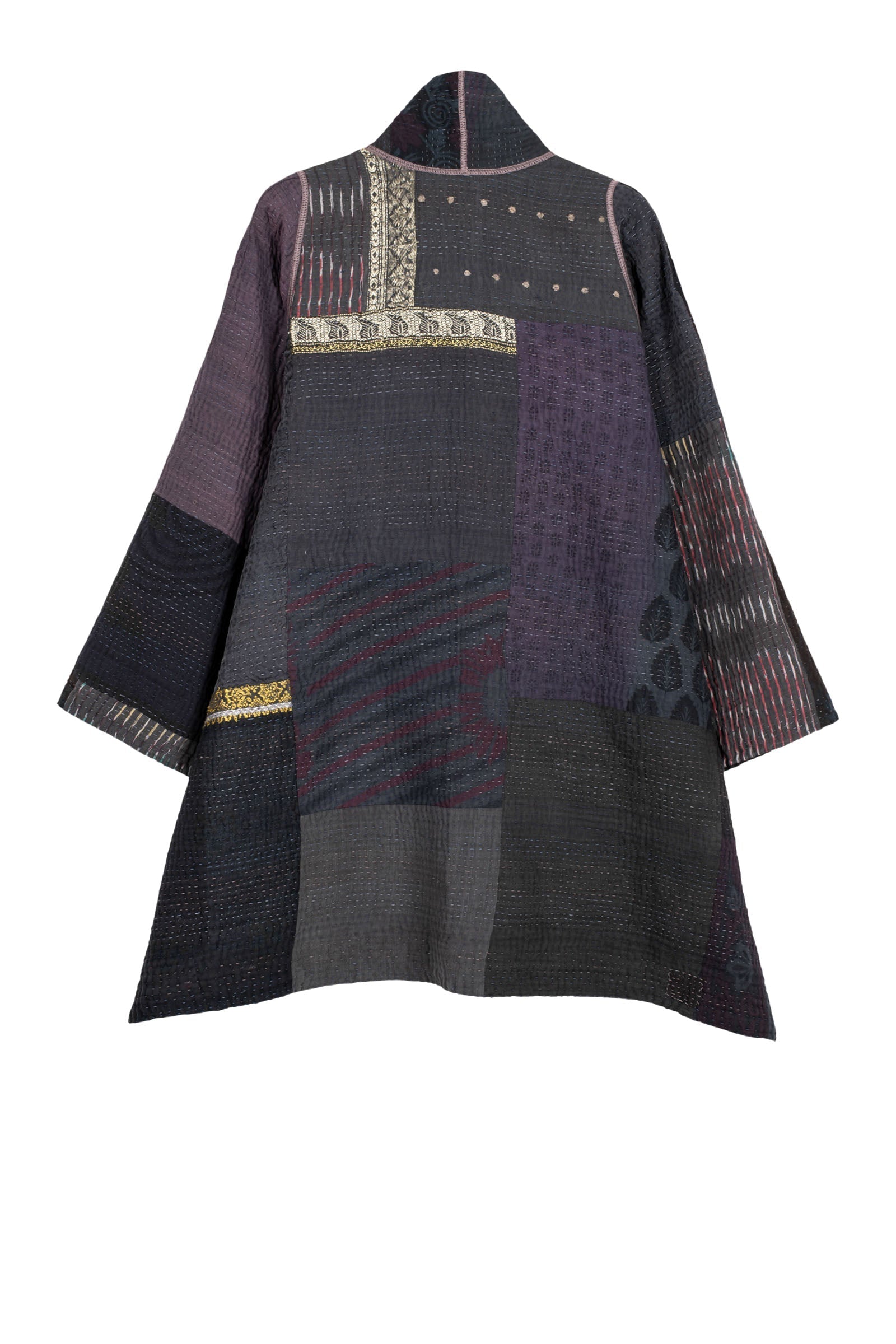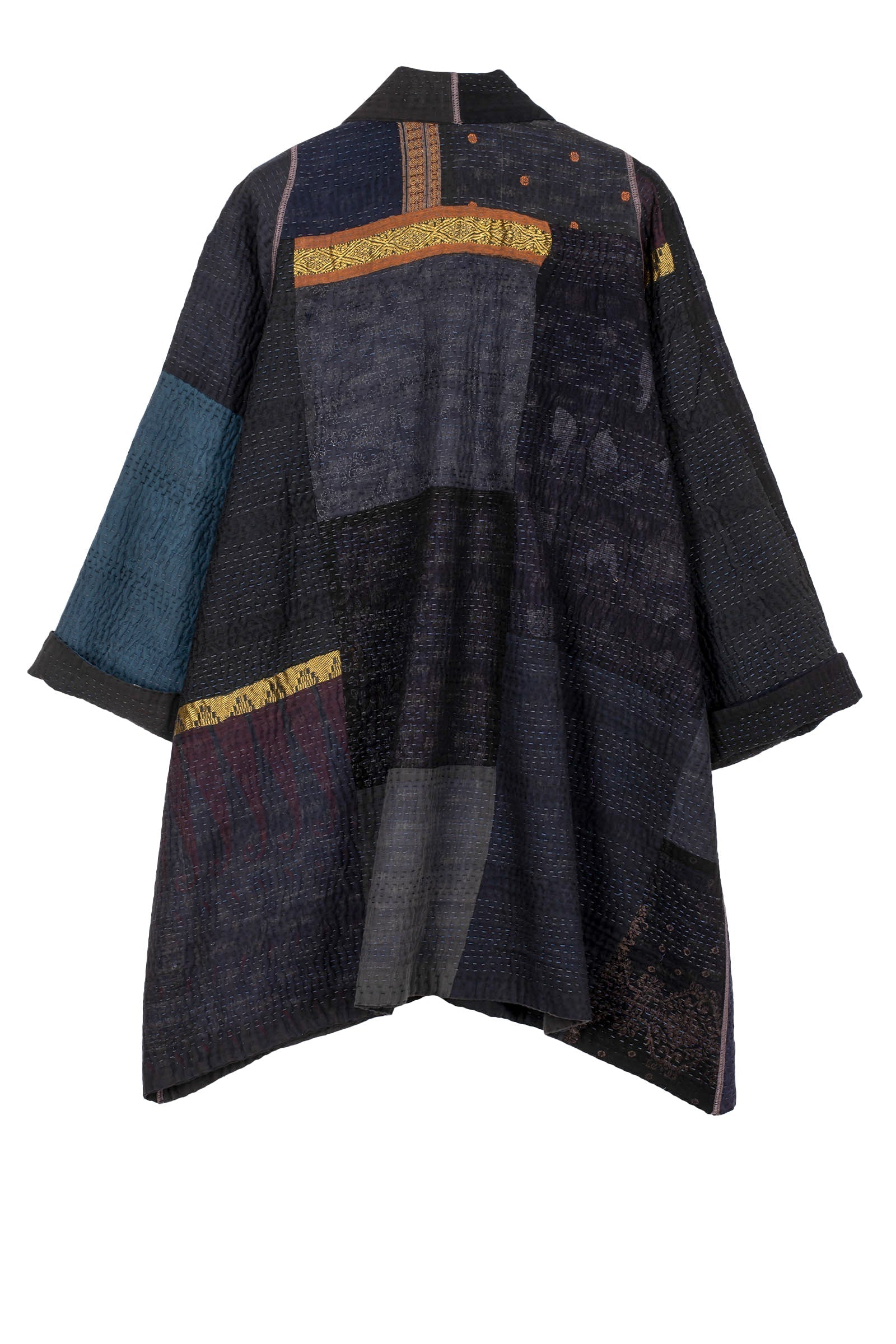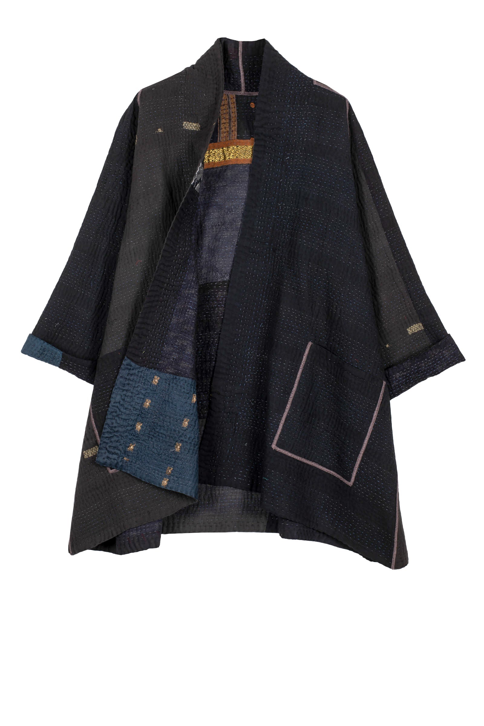 COTTON SILK SW PATCH KANTHA A-LINE JKT - ws4003-blk -