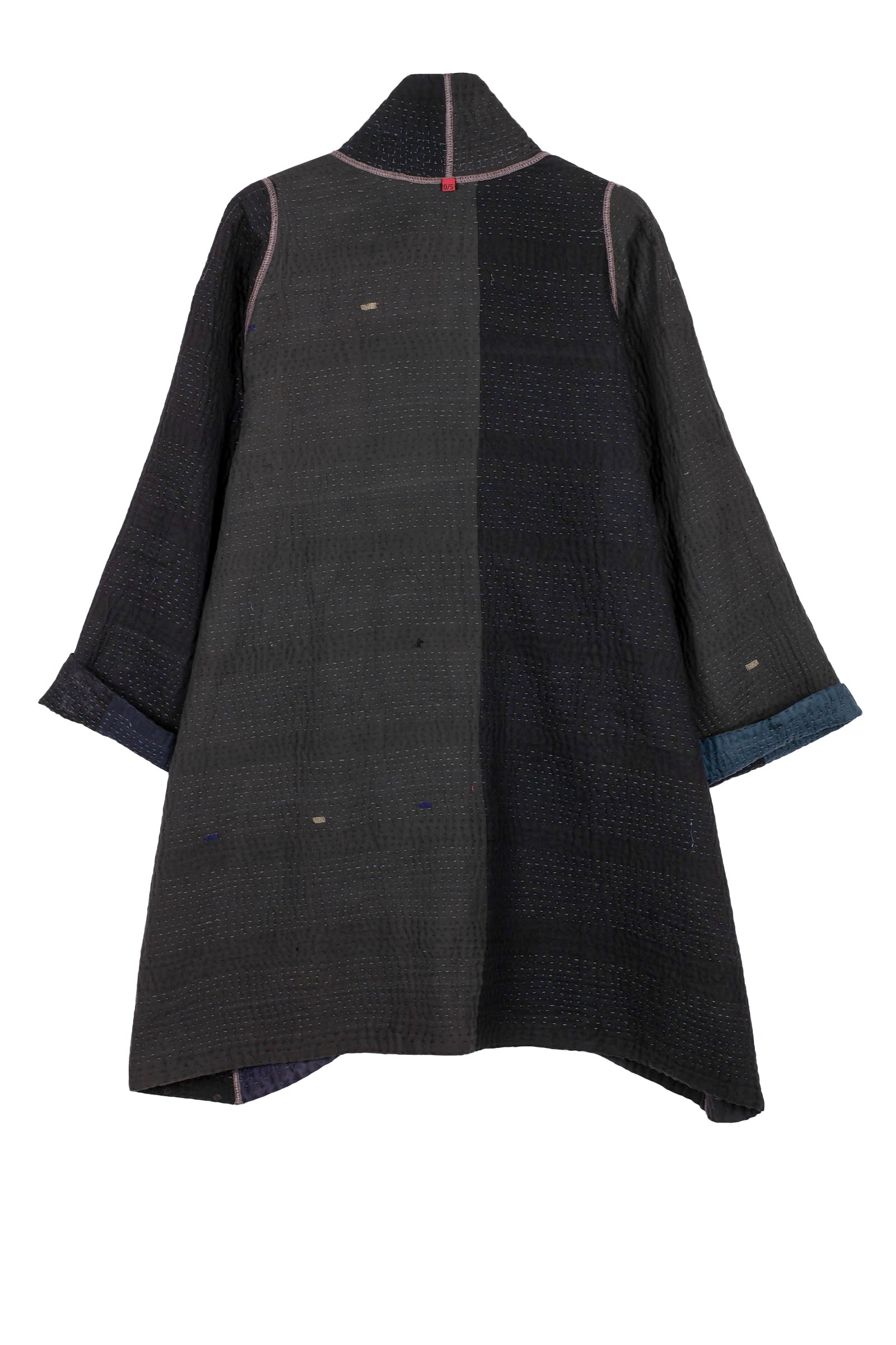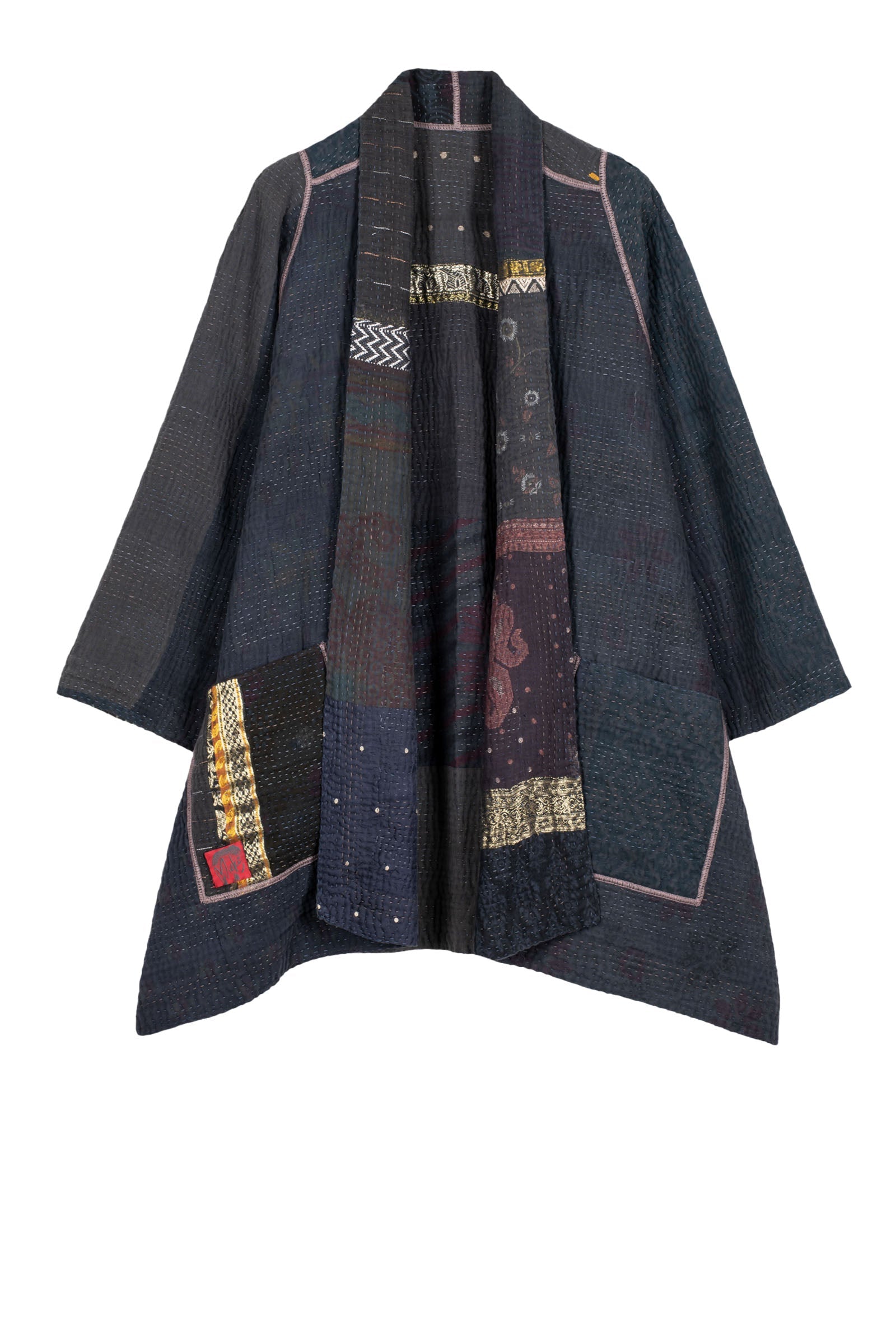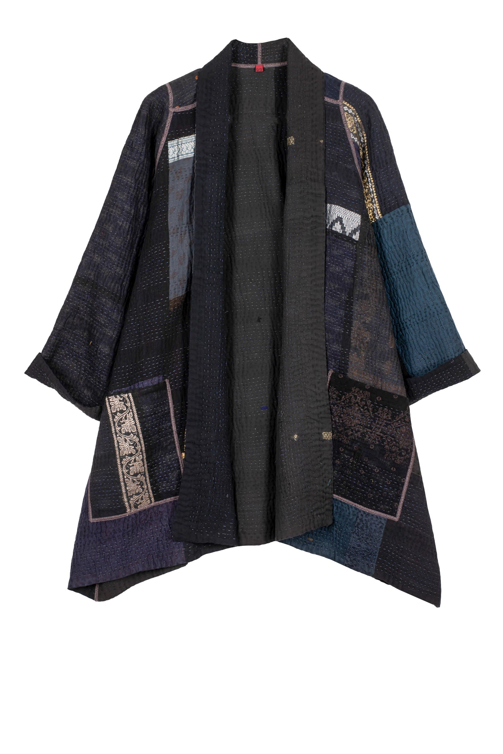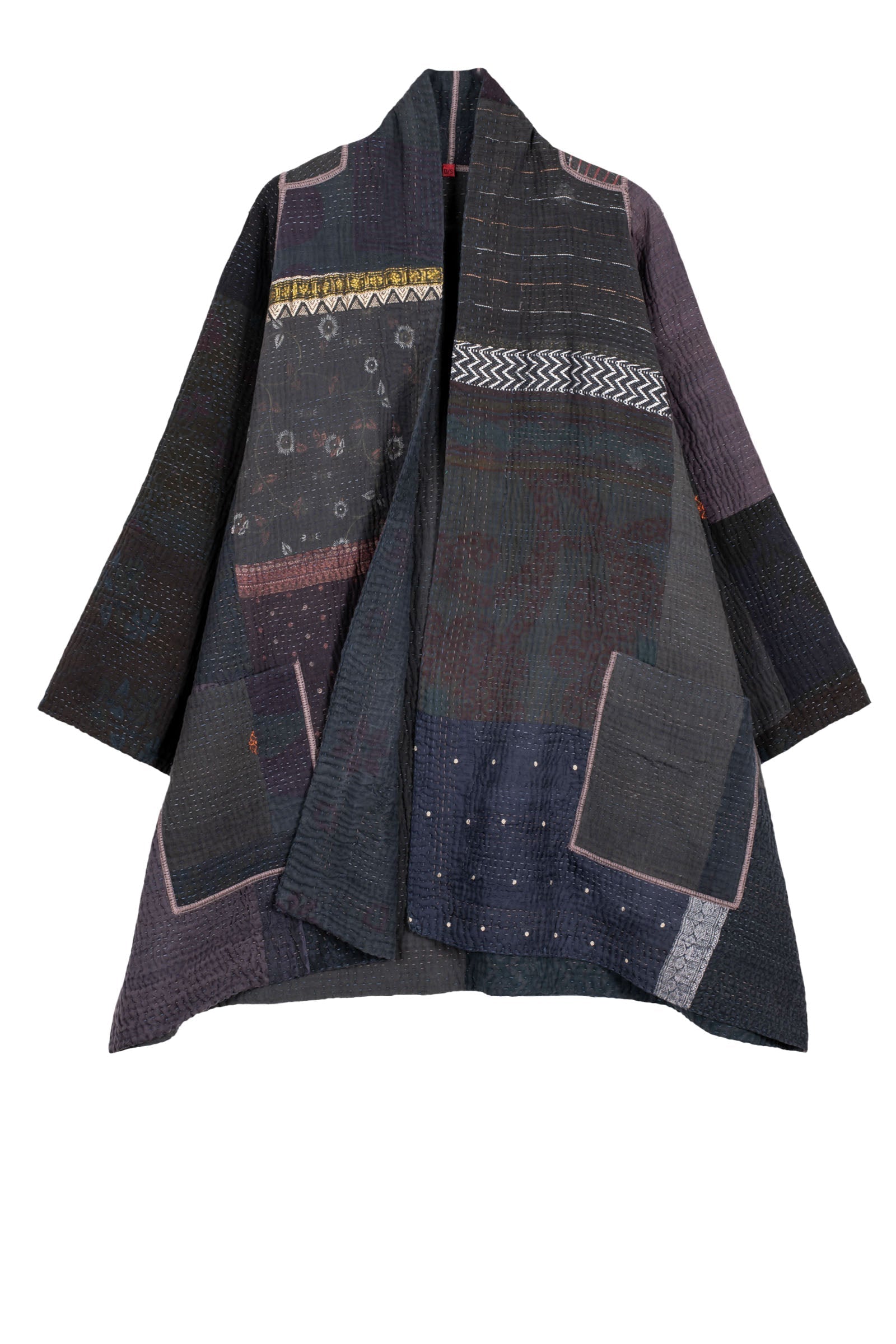 COTTON SILK SW PATCH KANTHA A-LINE JKT - ws4003-blk -