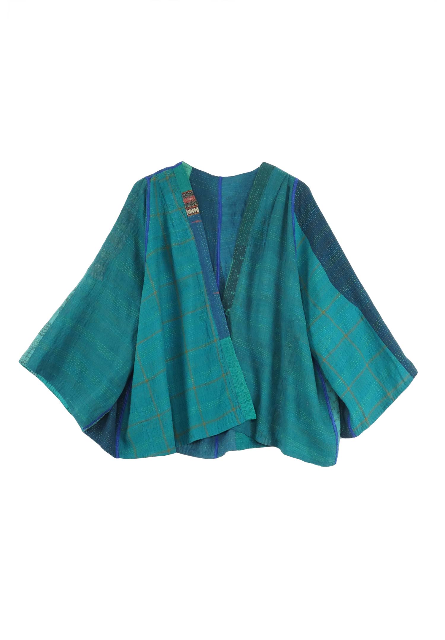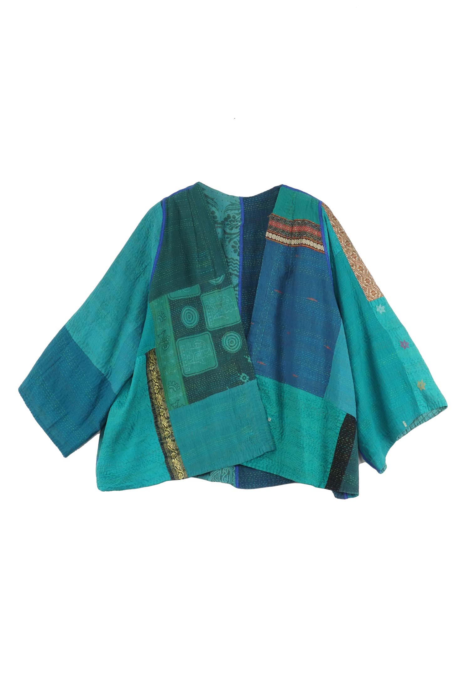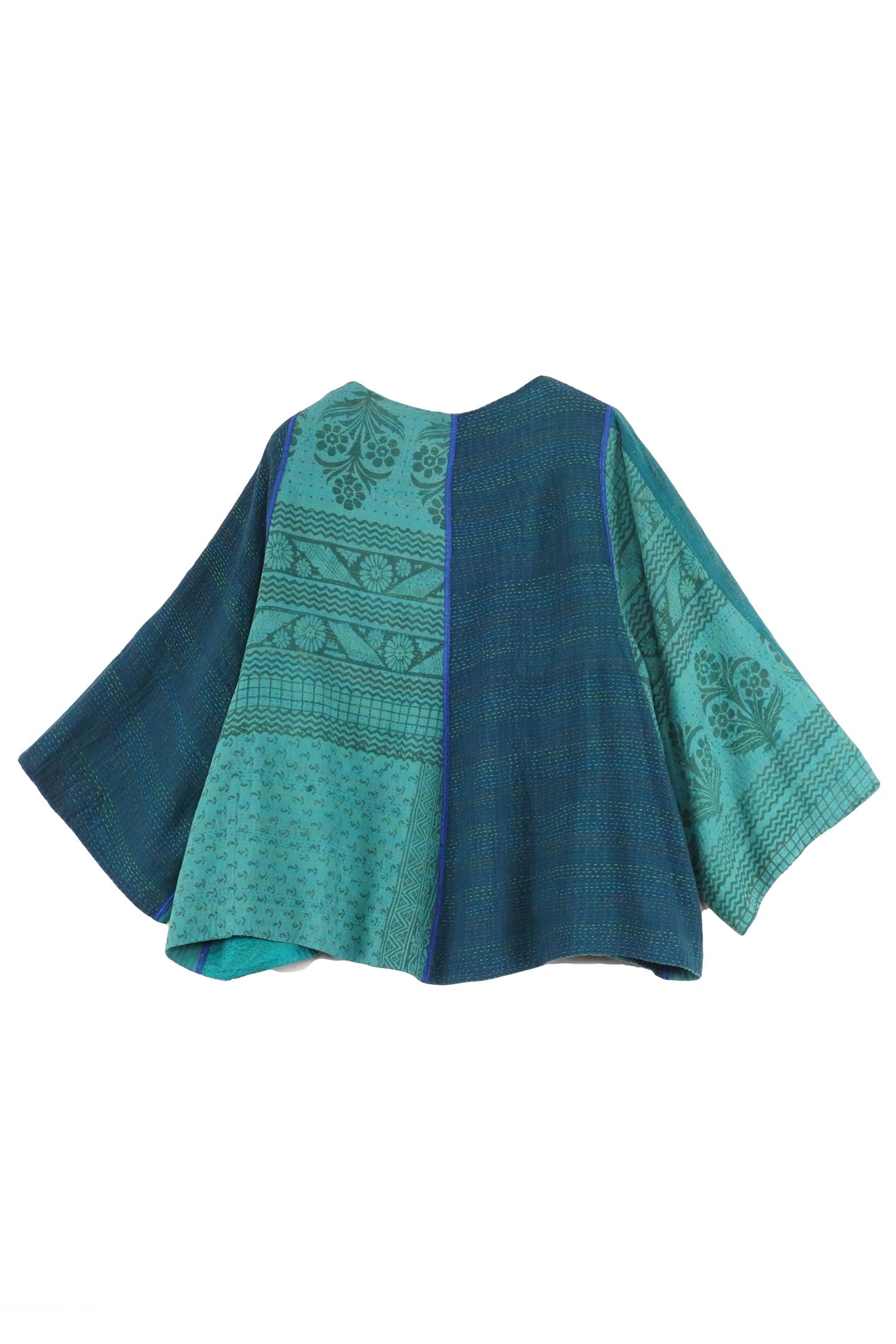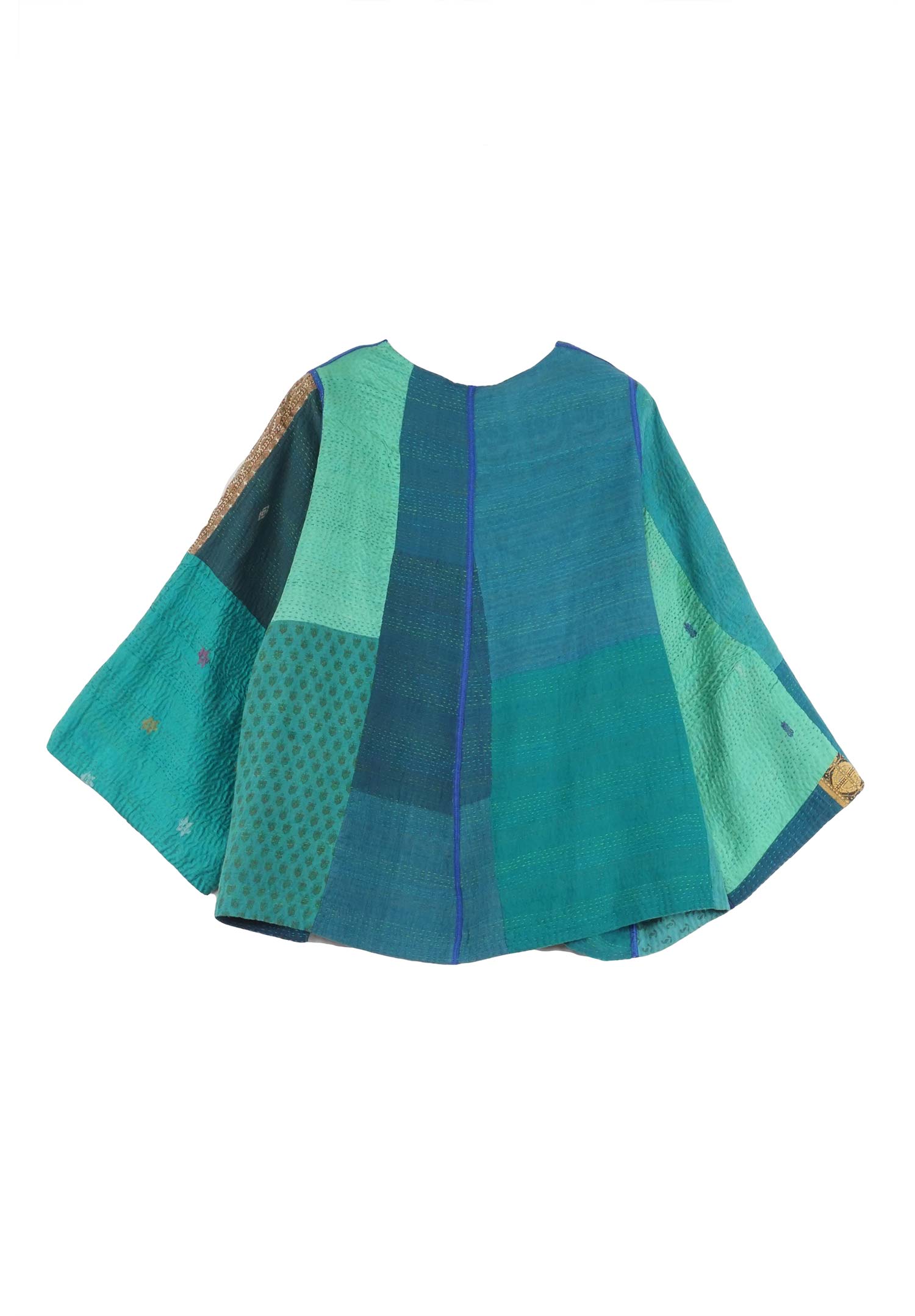 COTTON SILK SW PATCH KANTHA BELL SHAPE JKT - ws2048-tel -