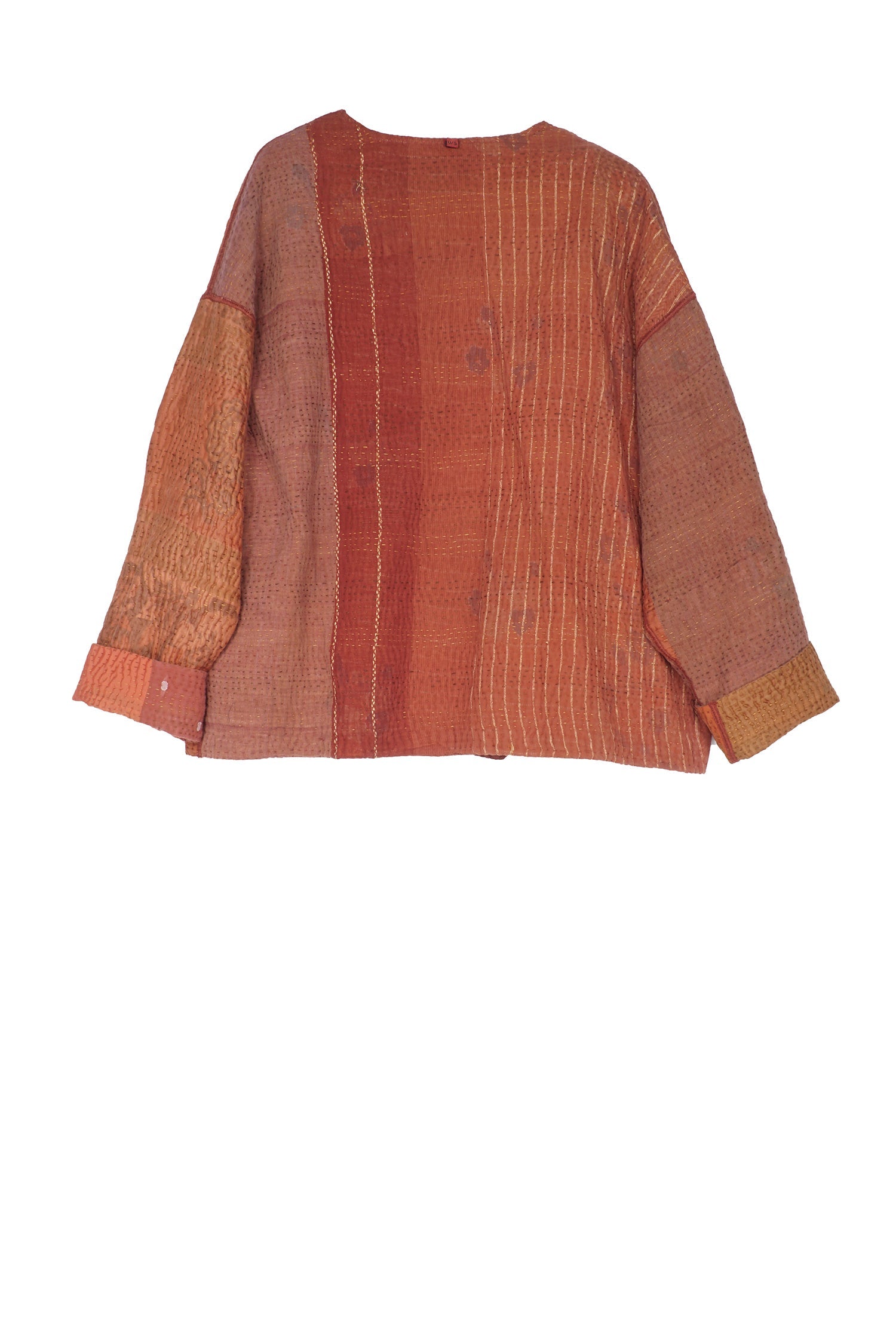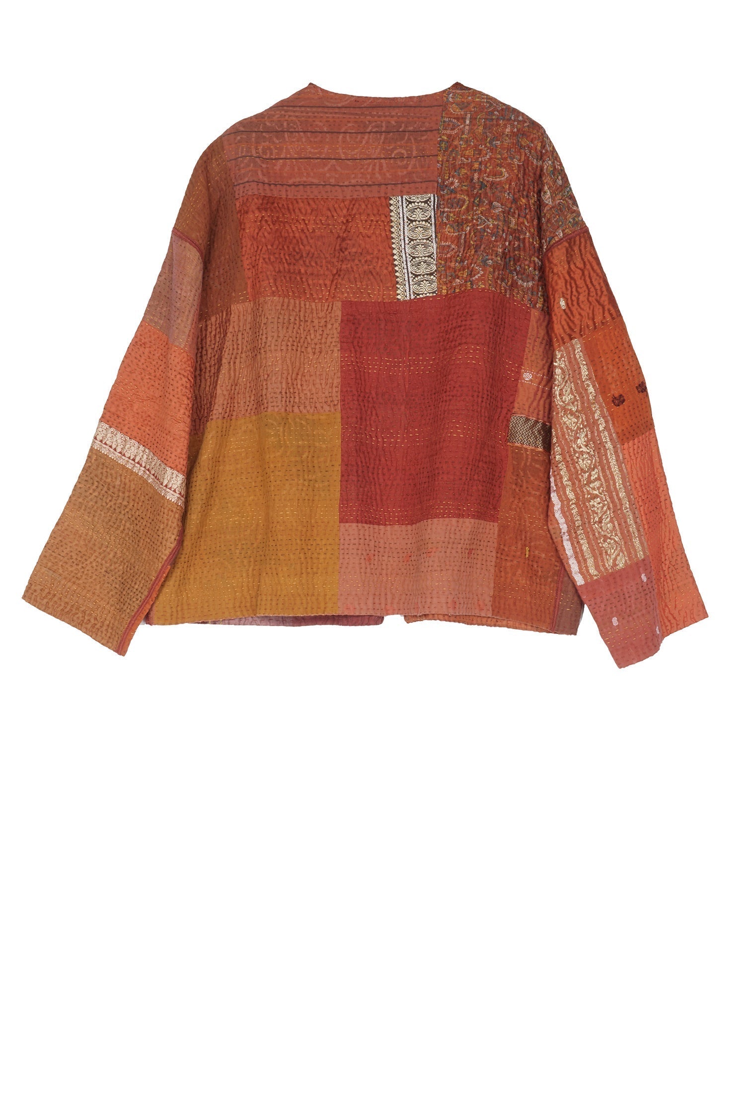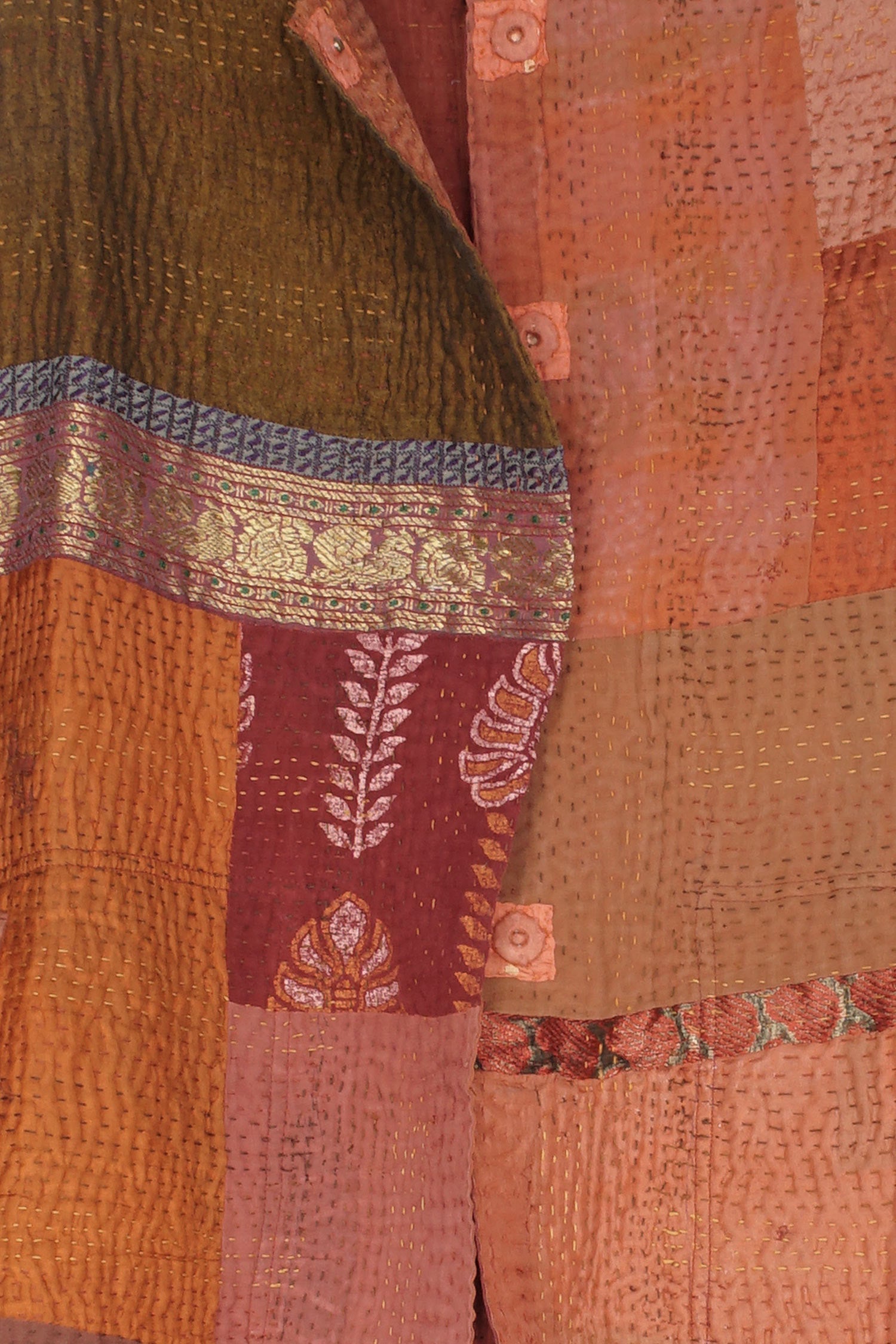 4 Layer Vintage Saris with Hand Stitches on Entire Garment - Reversible